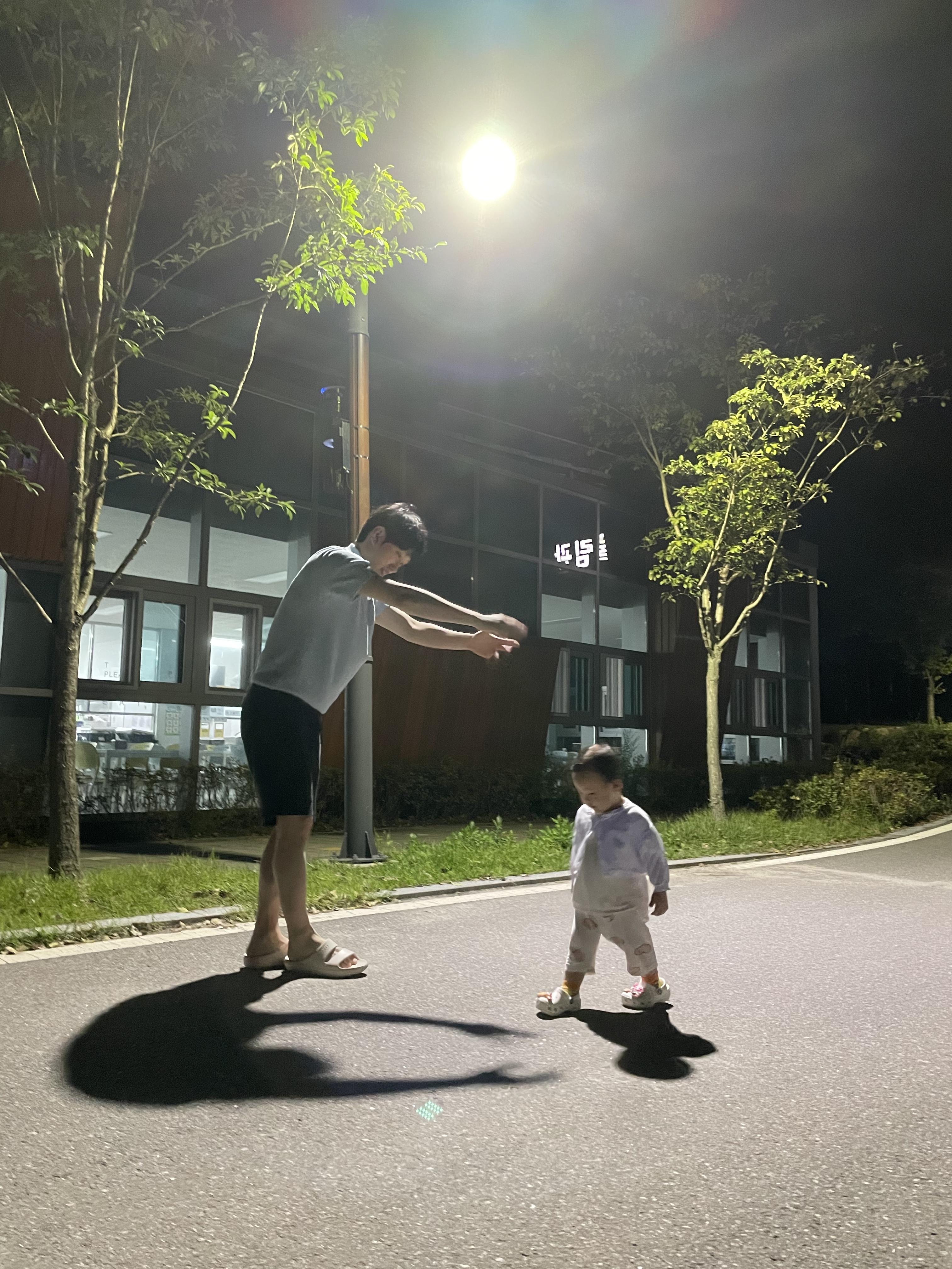 밤이되어 조명이 켜지니 그림자가 진하게 생겼다. 평소에 그림자를 무서워하던 아기인데 이날은 아빠랑 같이 그림자놀이를 하며 신났다. 그림자 잡아라! 우리 아기 그림자도 귀여워.