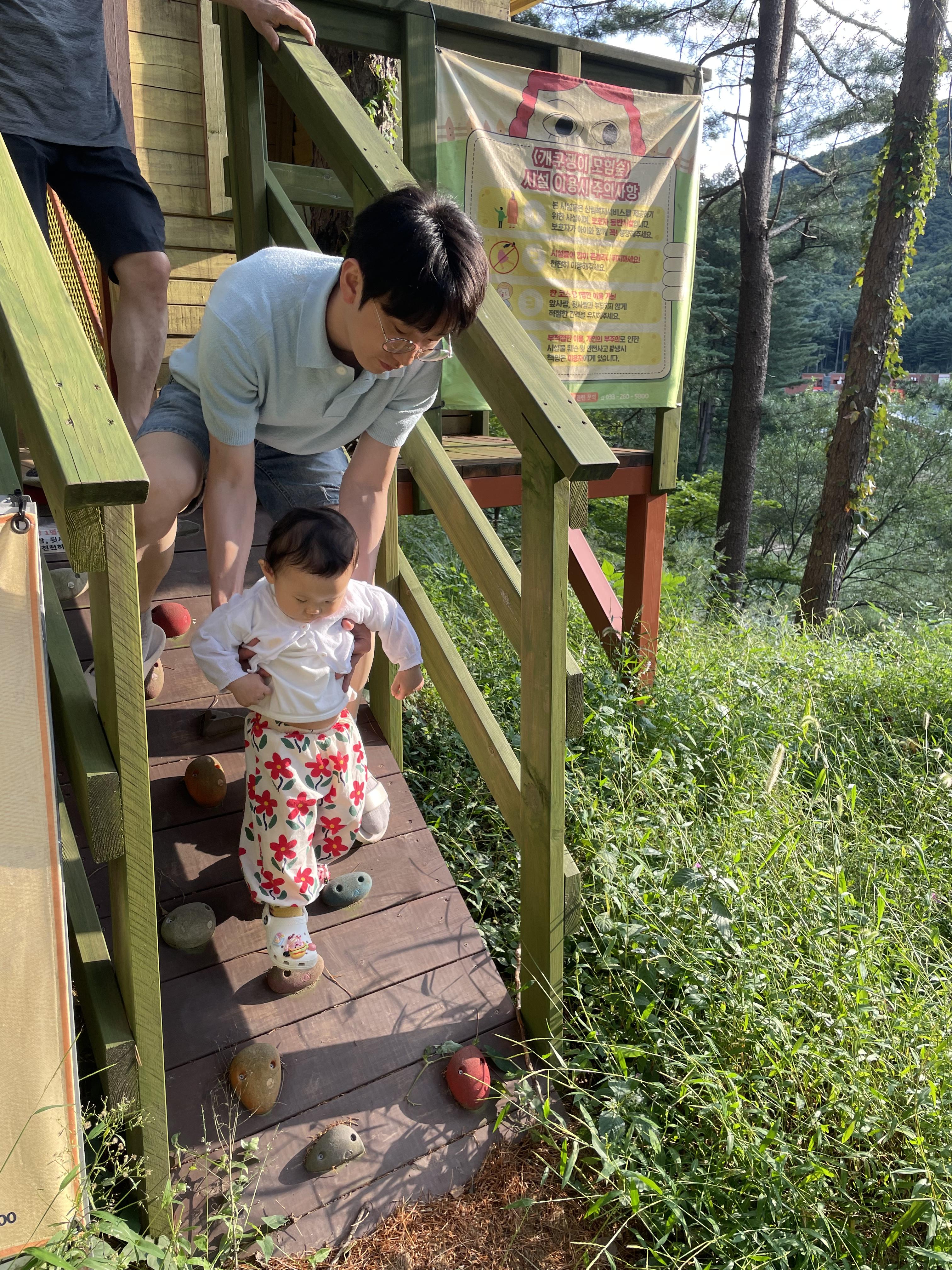 아이는 처음엔 무서워했는데 할머니가 먼저 가고 아빠 손을 잡고 가다 보니 안전하다는 걸 인식했는지 곧잘 걸어갔다.