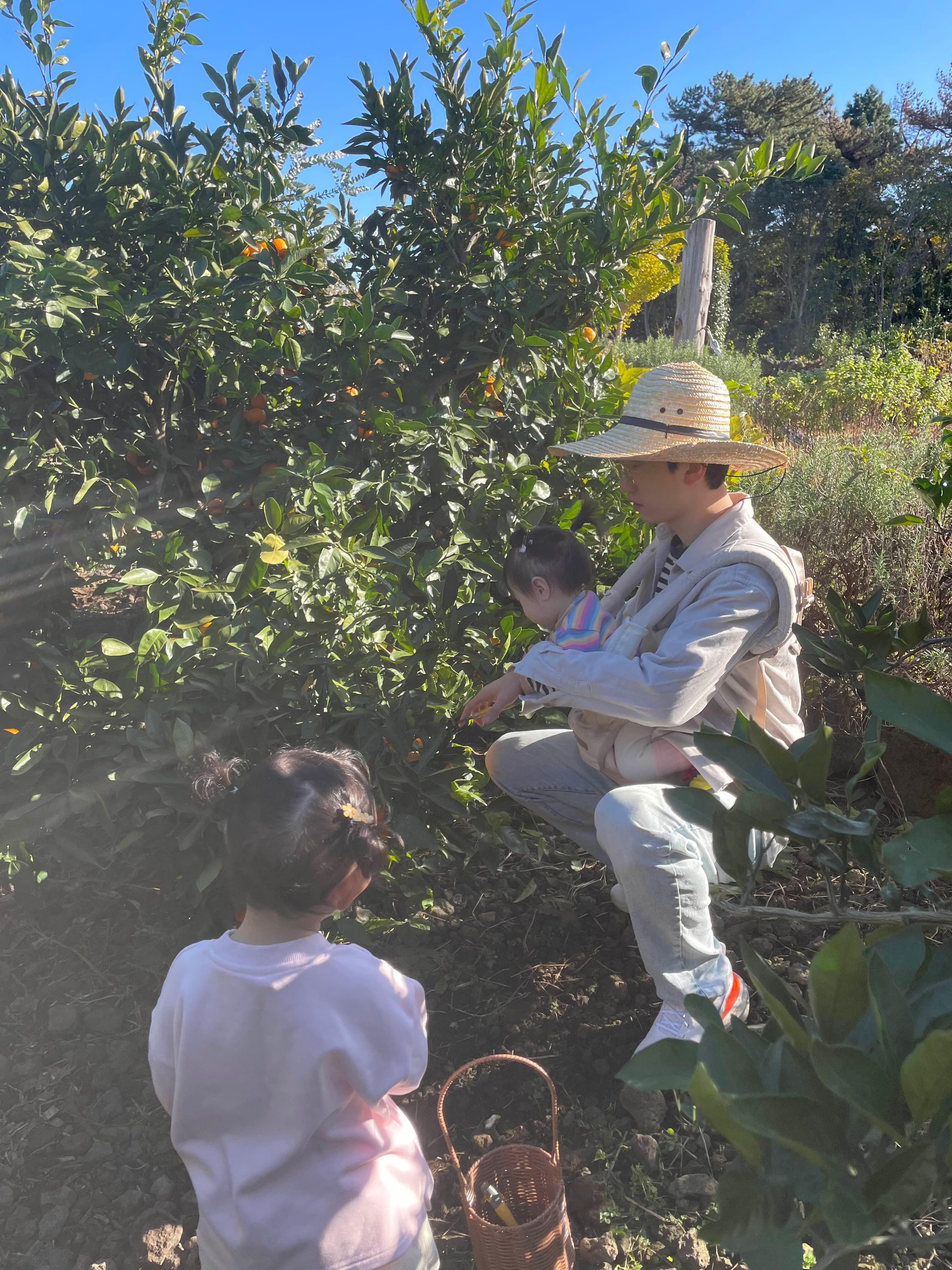 체험 시작에 앞서 안내를 받는데 작은 바구니와 커팅 가위를 주셨고 따는 법을 알려주시면서 같은 나무일지라도 맛이 다 다르니 입맛에 맞는 것을 먹어보며 따가라고 했다. 1kg바구니를 채우는 것 와에도 자유롭게 먹을 수 있다니 자비가 대단하다고 생각했다. 하지만 귤을 한두개 먹다보니 고만 먹고싶어요~~ 먹어보라고 해도 많이는 못먹겠구나 생각했다.