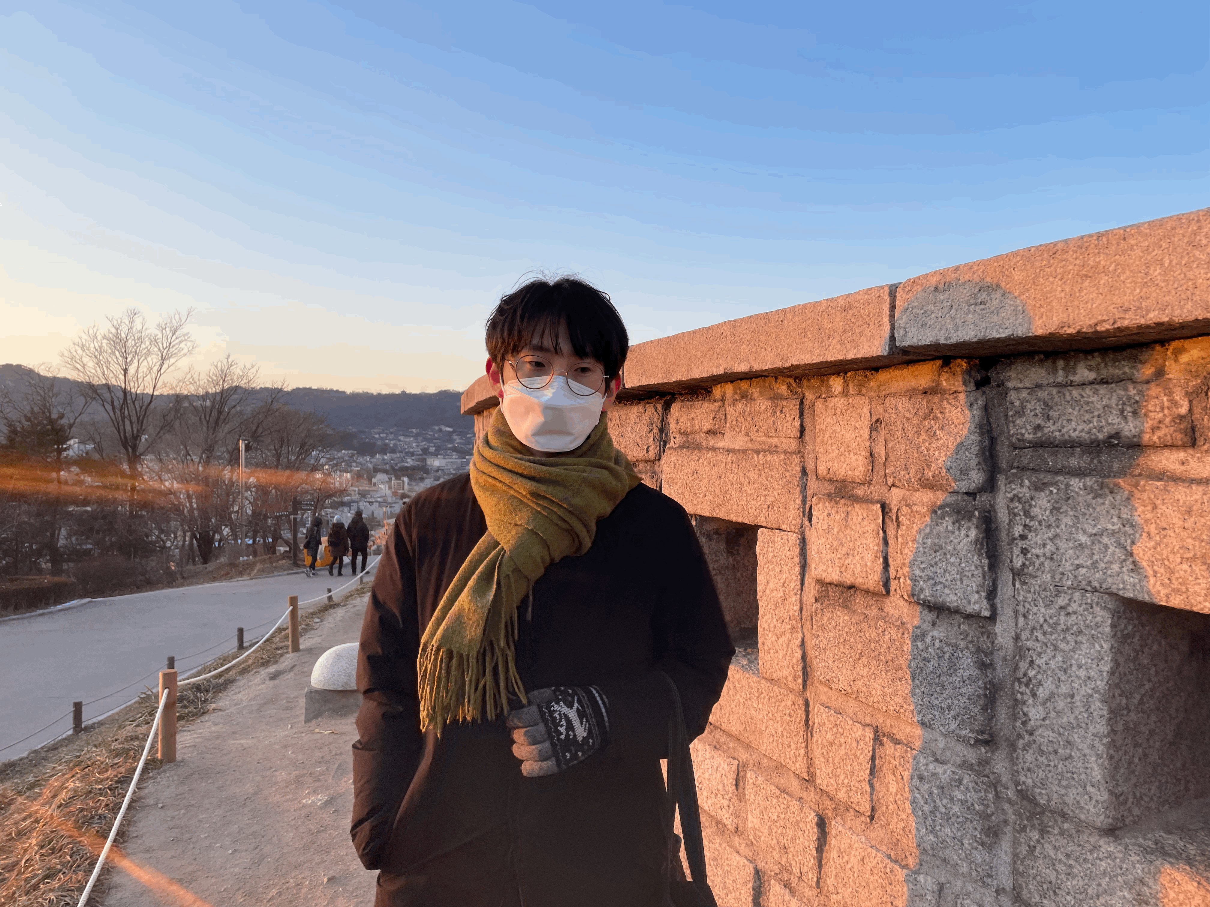 주변 일대가 보입니다. 탁 트인 하늘과 성곽, 성곽 너머로 보이는 성북구(?)인듯한 주변 일대. 보고 있으면 기분이 상쾌해져요. 그런데, 바람이 불어서 춥다. 이때부터는 얼른 사진 찍고 내려가고 싶은 생각뿐이었다. 꼭대기엔 사람은 별로 없는데 커플들이 다닥다닥 붙어있는 모습들. 우리도 커플이니까 다닥다닥 붙어있었다. 추워서 떨어질 수가 없어요. 난 추운데, 아내는 신이 났는지 계속 사진을 찍는다. 그래서 덜덜 떨면서 기다렸다. 그 와중에 찍힌 내 사진. 무덤덤해 보이지만 속으로는 엄청 덜덜.