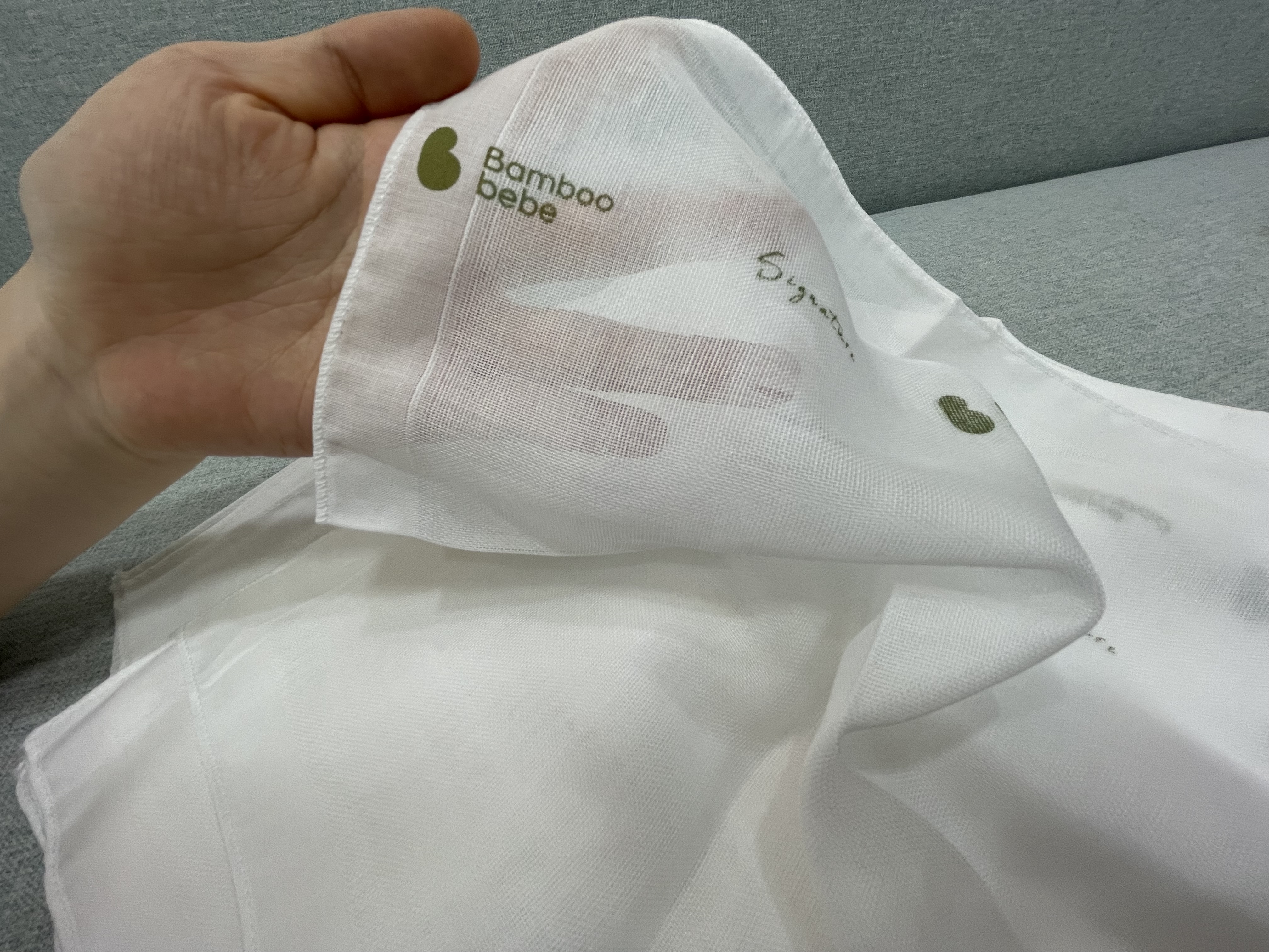 우선 거즈 손수건과 엠보 손수건 각각 손을 대보았을 때, 비치는 정도가 다르니 두께감에서 차이가 있고