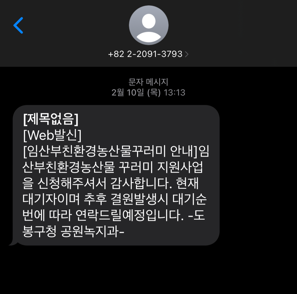 그런데 2월 말에 갑자기 슝- 날아온 문자 하나