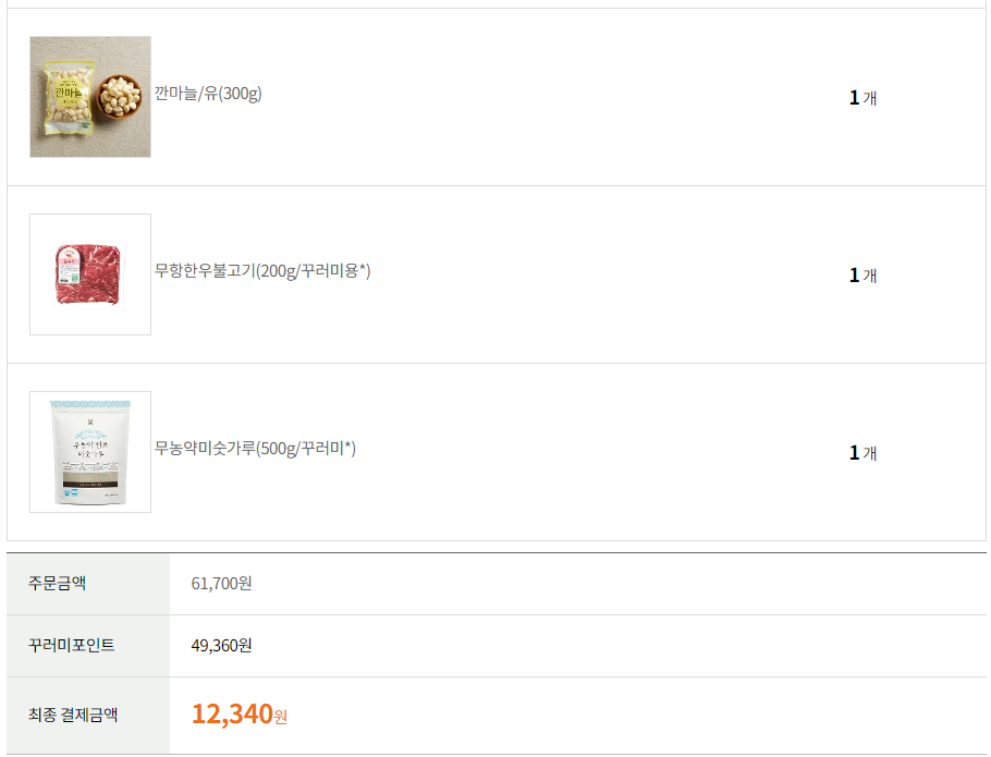 그렇게 1차 주문은 상품 누락이라는 특이점을 남긴 채 마무리했다.