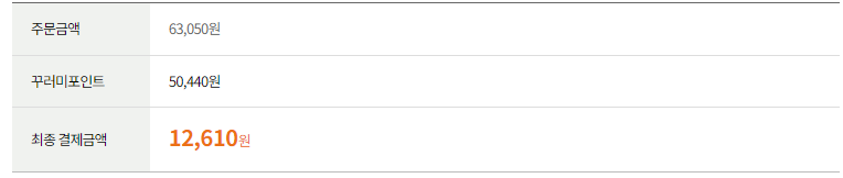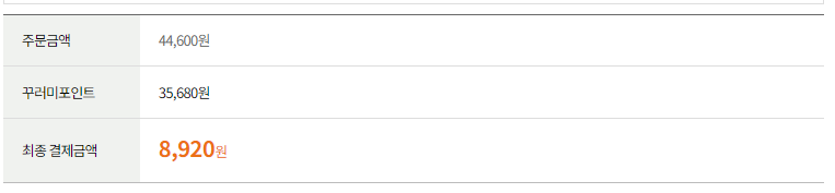 총 51,200원인데 포인트로 40,960원(80%)이 결제되고 실제 내가 결제할 금액은 10,240원이었다.