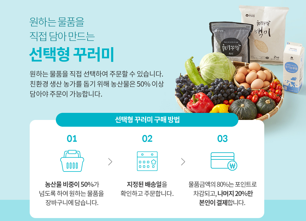 아 또 주문 시에 주의할 사항은 농산품이 50% 이상이어야 된다.