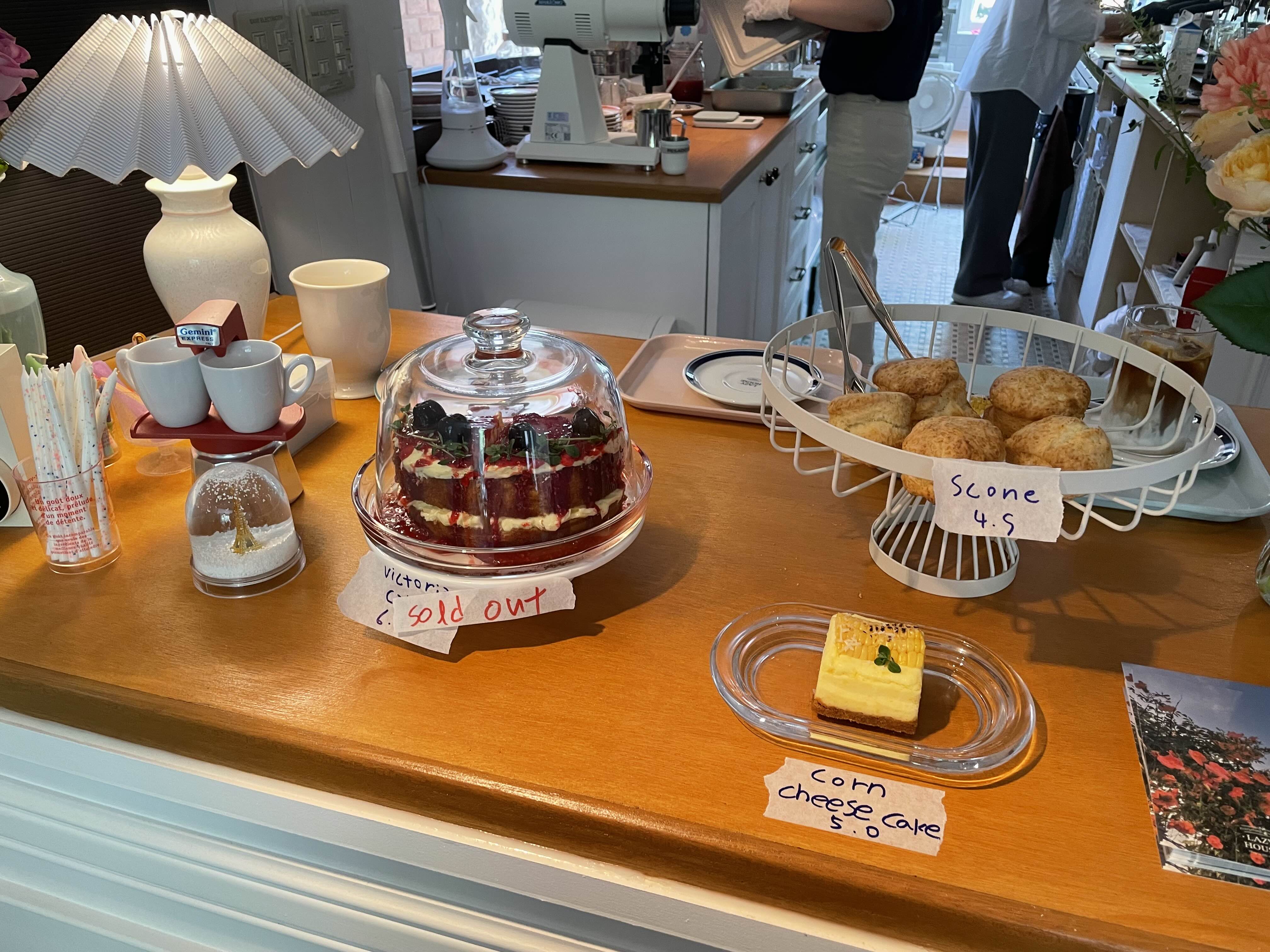 디저트는 빅토리아 케이크(베리 케이크 인듯하다)와 콘 치크 케이크, 스콘이 있었다. 뭔가 옥수수가 통으로 올려진 콘 치크 케이크가 예뻐 보여서 주문했다. 아직 직원분들이 익숙지 않으신지 나오는데 시간이 좀 걸리긴 했지만, 그래도 '오래 걸릴 수 있으니 양해 부탁드려요' 한 것에 비해서는 빨리 나왔다. 그 와중에 콘 치즈 케이크 너무 맛있었다. 안 시켰으면 후회했을 뻔! 나중에 기회 되면 빅토리아 케이크도 먹어보고 싶다. (다만 수원에 올 일이 딱히 없다는 게 문제...)