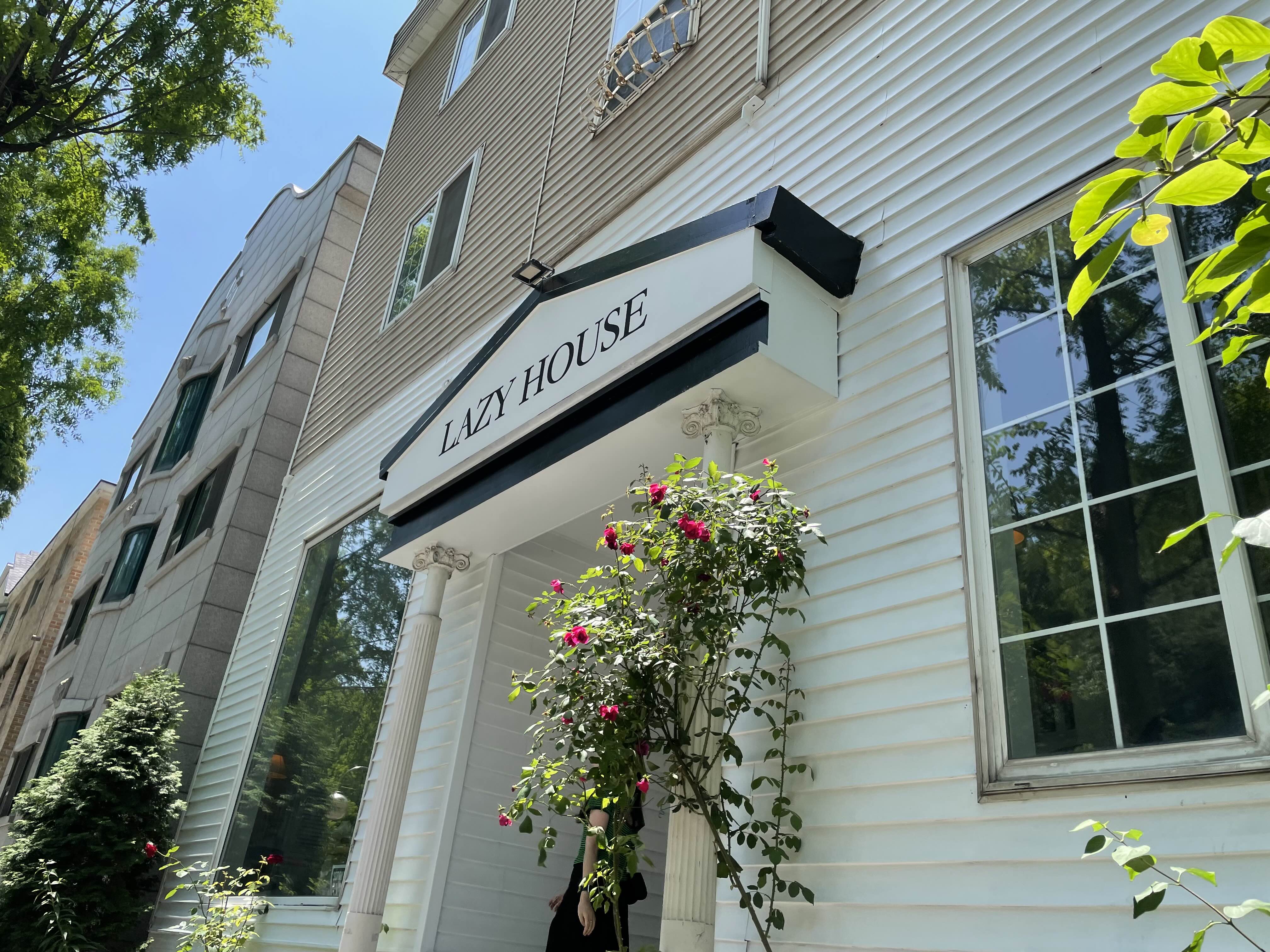 동네를 한 바퀴 돌아서 다시 건물 반대편의 도로변 쪽으로 와보니 차가 주르륵 서 있고, 인스타에서 봤던 Lazyhouse 입구가 보였다.
