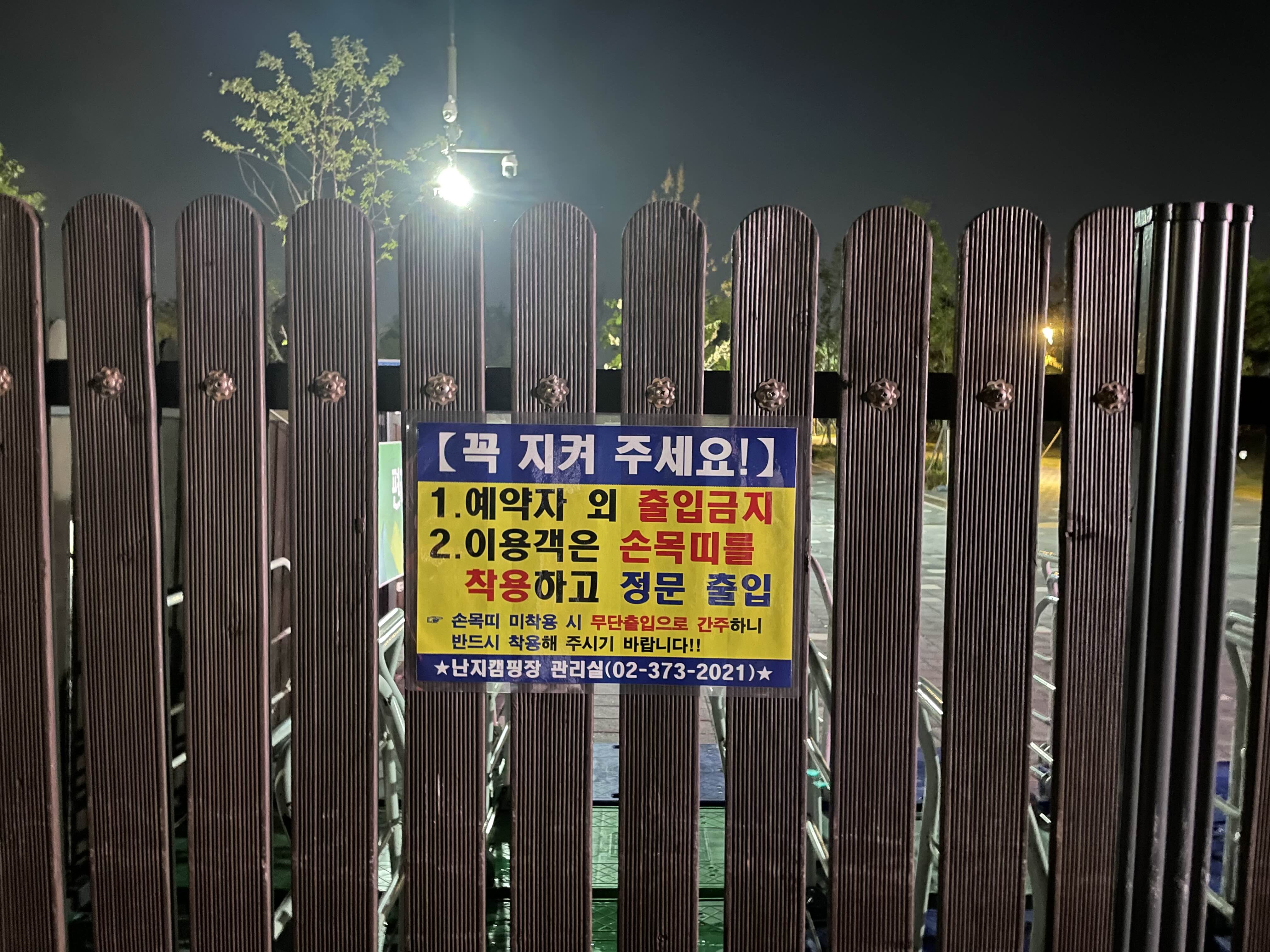 밤10시 이후는 정문 폐쇄, 옆 쪽문으로 나갈 수 있다.
