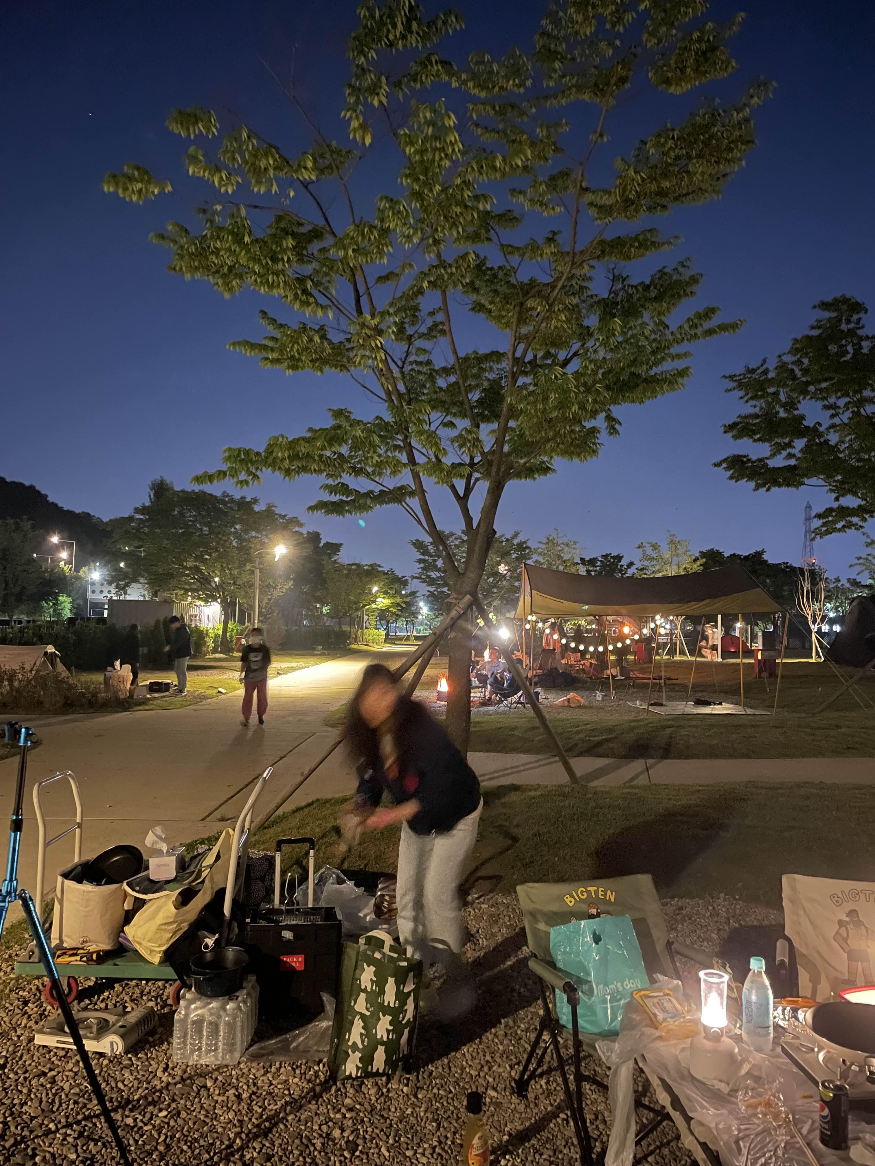 그렇게 당일이 되어 우리는 퇴근하고 가니 저녁 7:30이 되어서야 난지캠핑장에 도착했다. (역삼 회사 출발 저녁 6시> 난지캠핑장 저녁 7:30 약 1시간 30 소요)