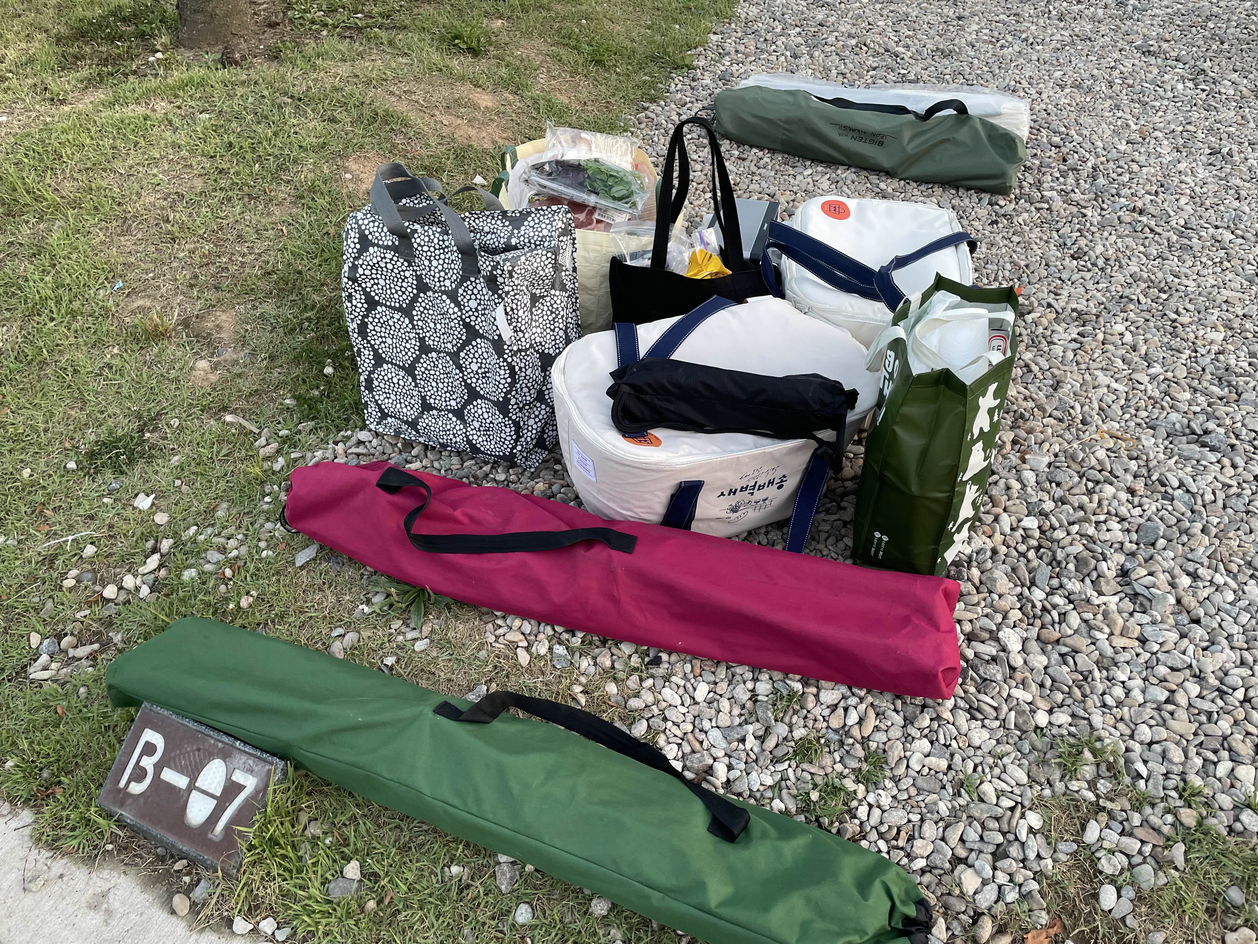 짧은 캠핑에 무슨 짐이 이렇게 많은지....ㅋㅋㅋ 쓱 새벽 배송 가방 안에 양쪽 집 다 가득가득했다.