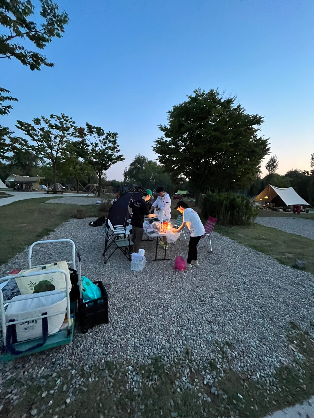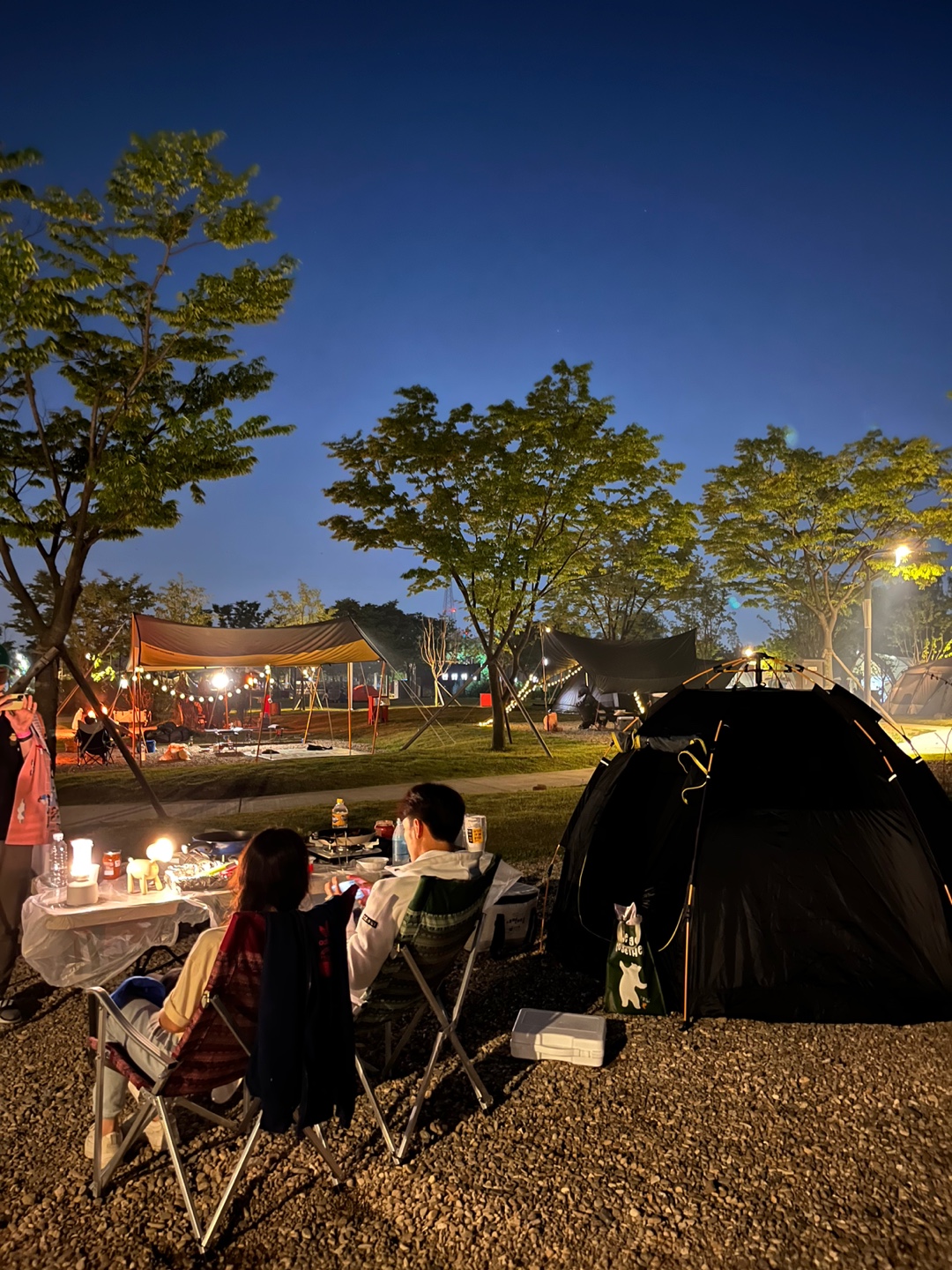 그렇게 당일이 되어 우리는 퇴근하고 가니 저녁 7:30이 되어서야 난지캠핑장에 도착했다. (역삼 회사 출발 저녁 6시> 난지캠핑장 저녁 7:30 약 1시간 30 소요)