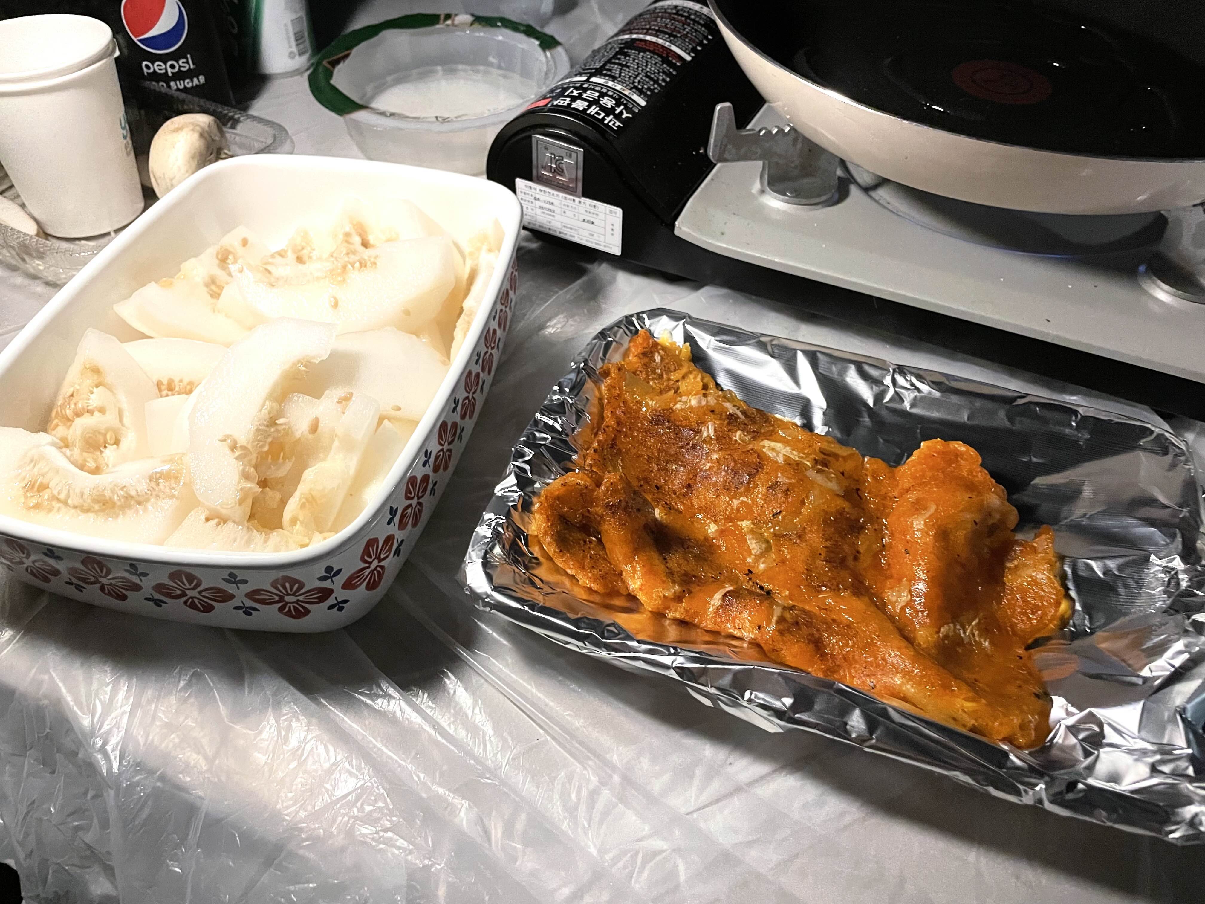 우리는 그릇을 챙겨가지는 않고 채소나 햇반을 사면 나오게 되는 플라스틱에 포일을 덮어서 그릇으로 쓰기로 했다.