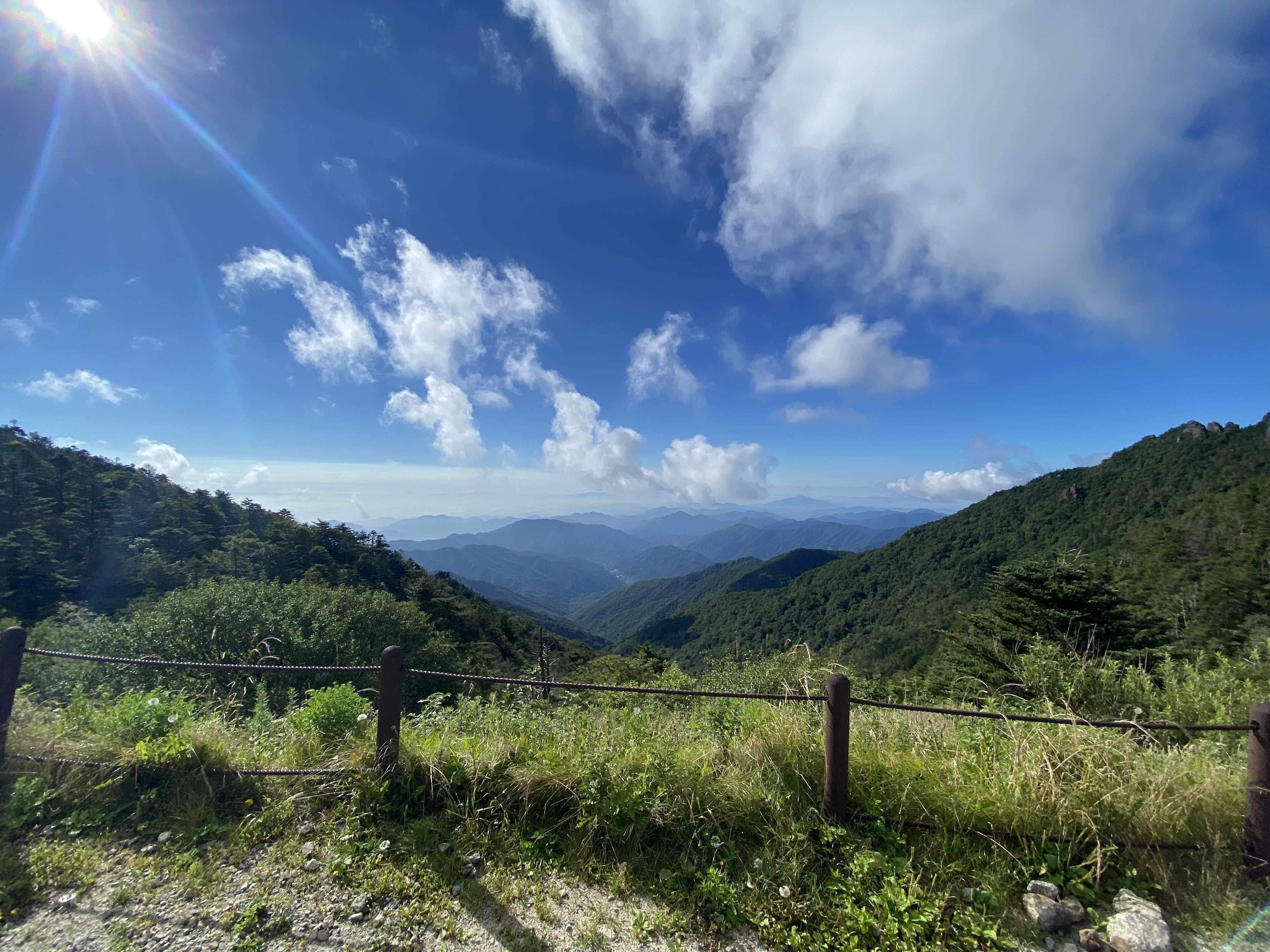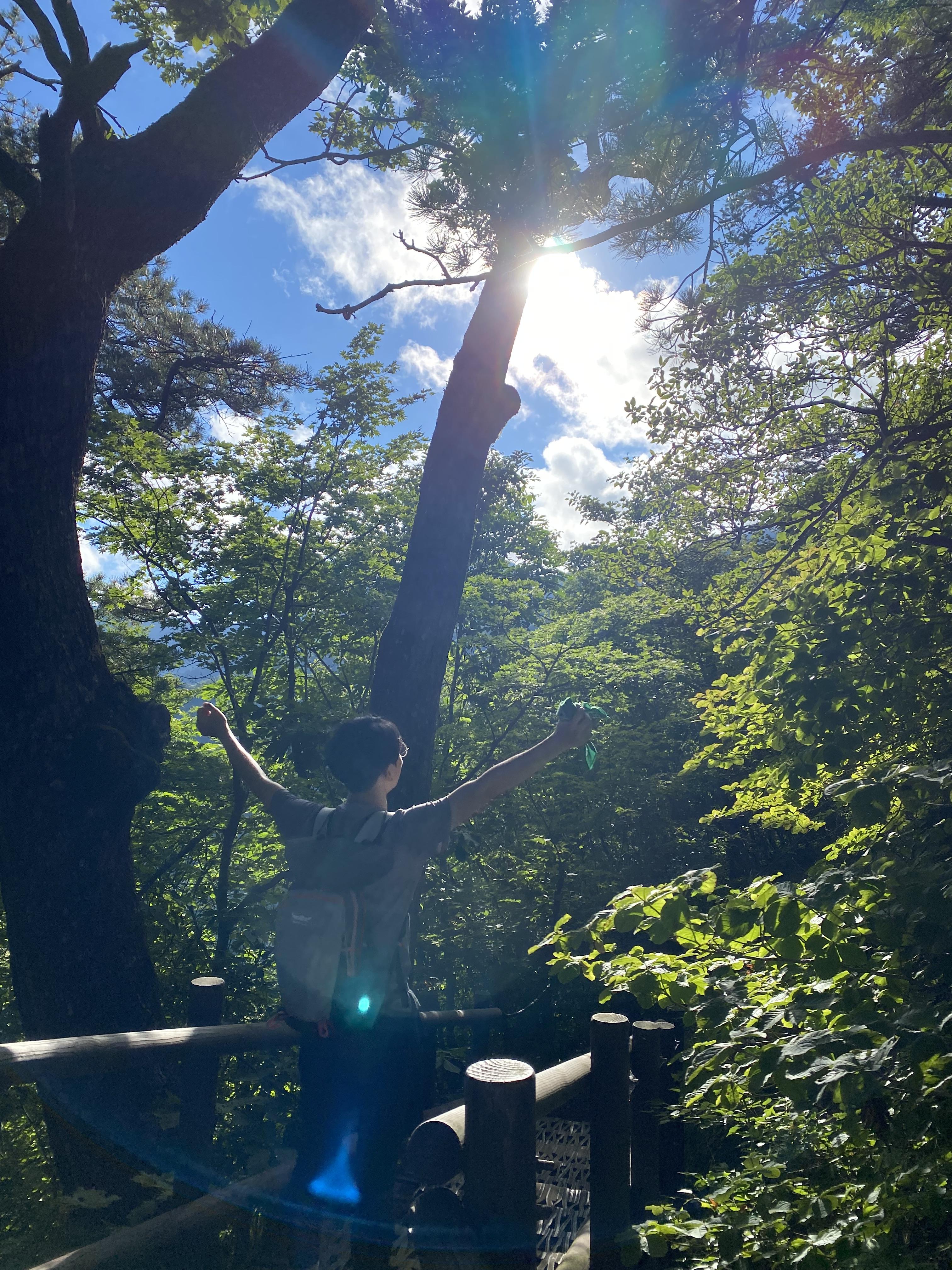 갈대밭 같은 예쁜 길인데 아침햇살이 나뭇잎 사이로 적당히 비추고 있고, 고도가 높아진 만큼 덥기는커녕 시원하기까지 했다. 그냥 에어컨을 은은하게 틀어 놓은 것 같달까?