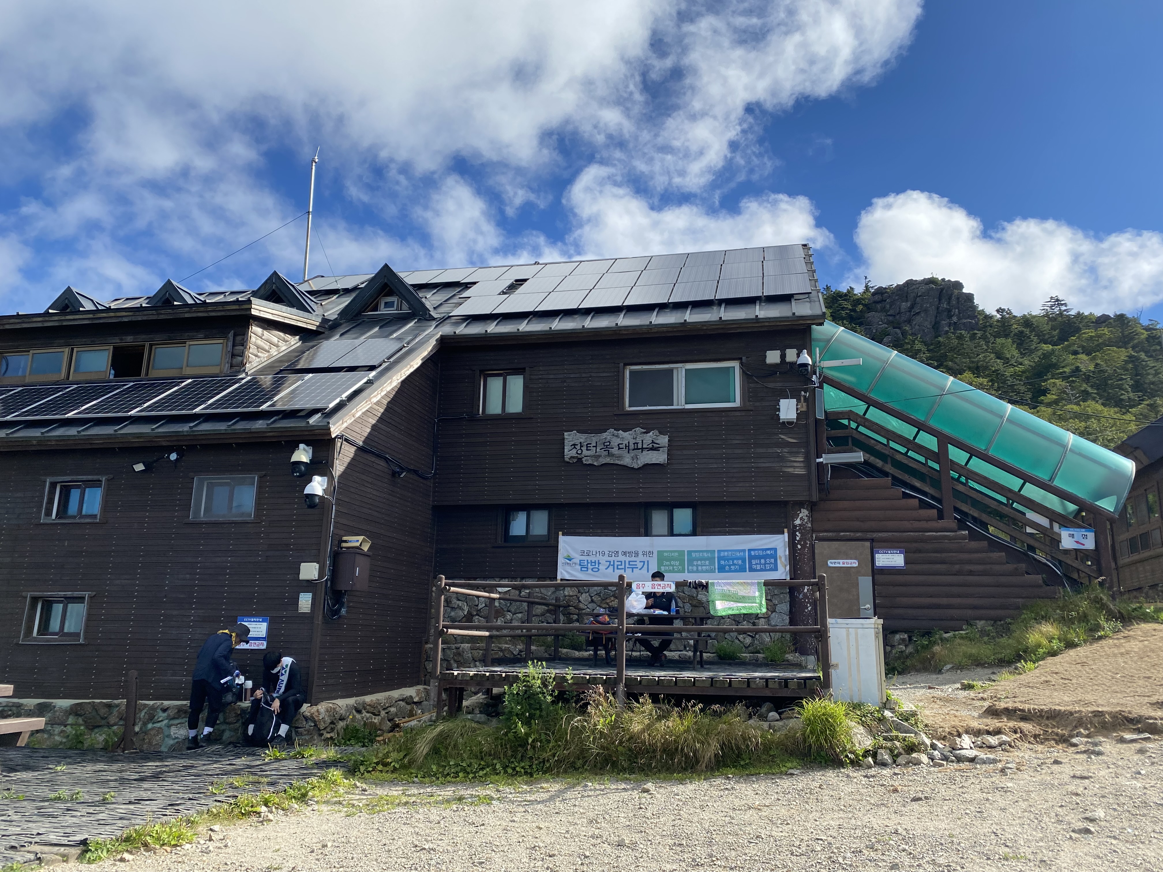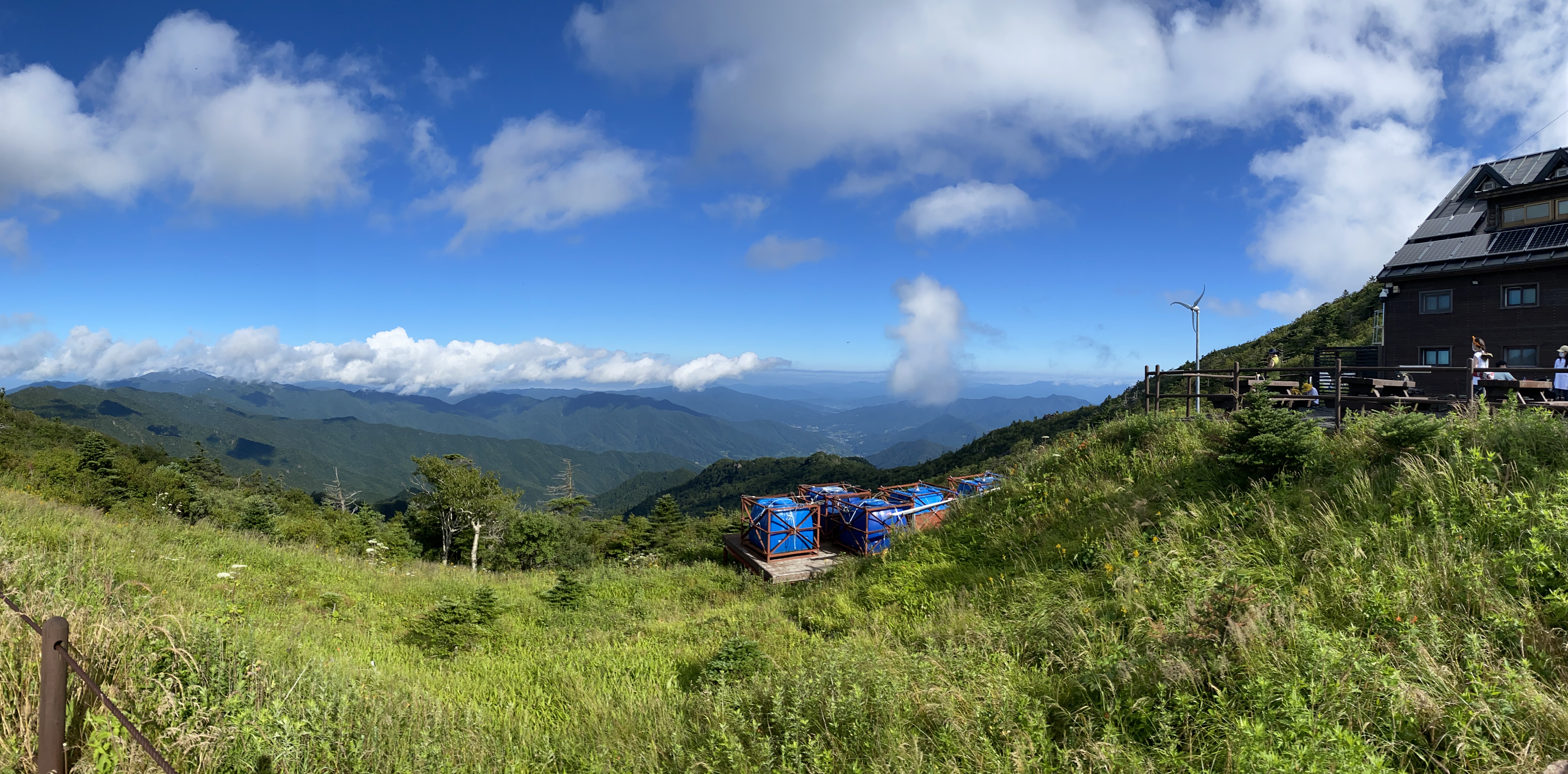 중간에 저 파란색 큰 탱크통은 뭘까 궁금했는데 아마 여기 상주하는 직원들 + 등산객들이 사용할 물 (식용이든 아니든) 뭐 그런 게 아닐까 생각해보았다.