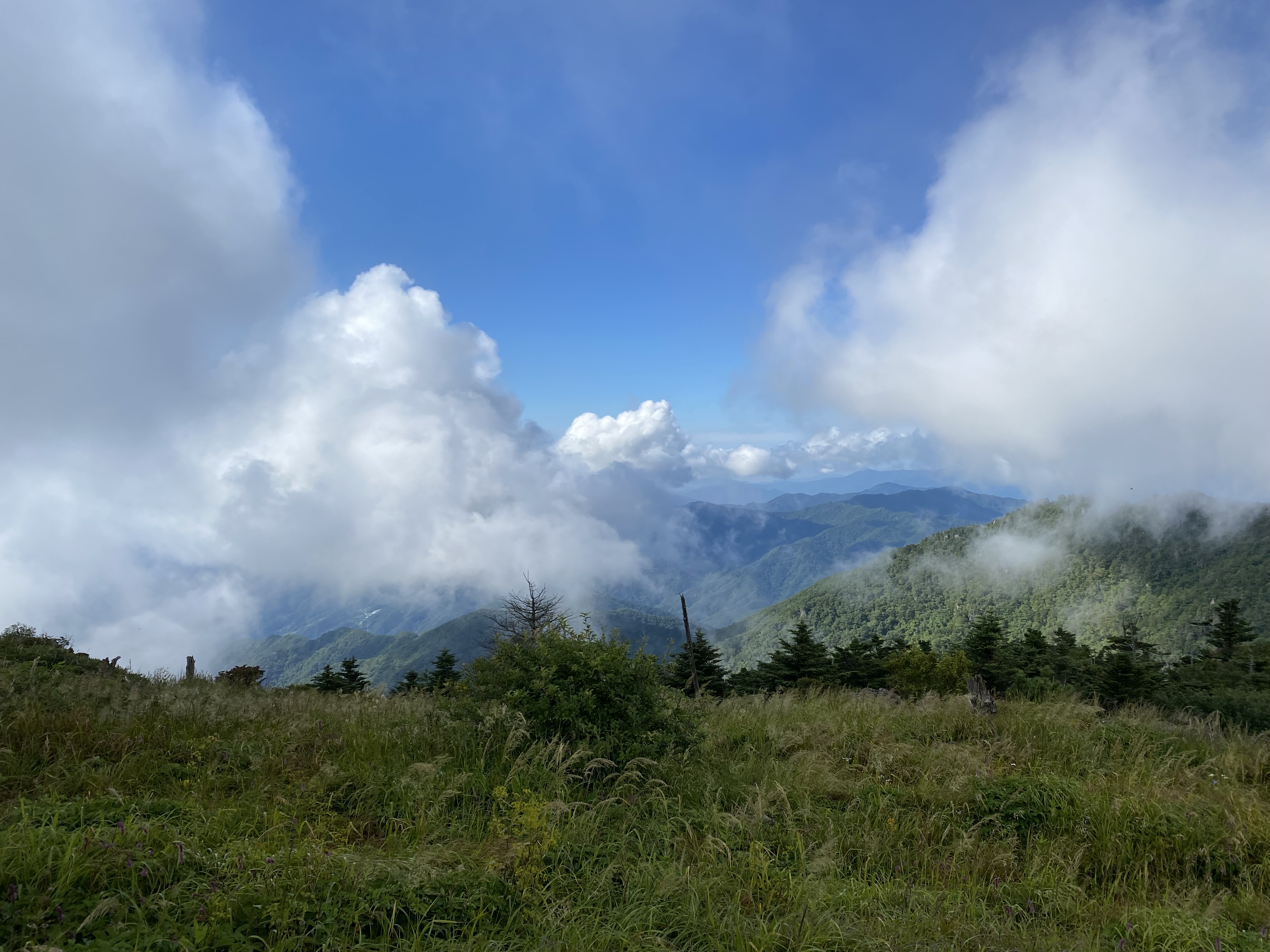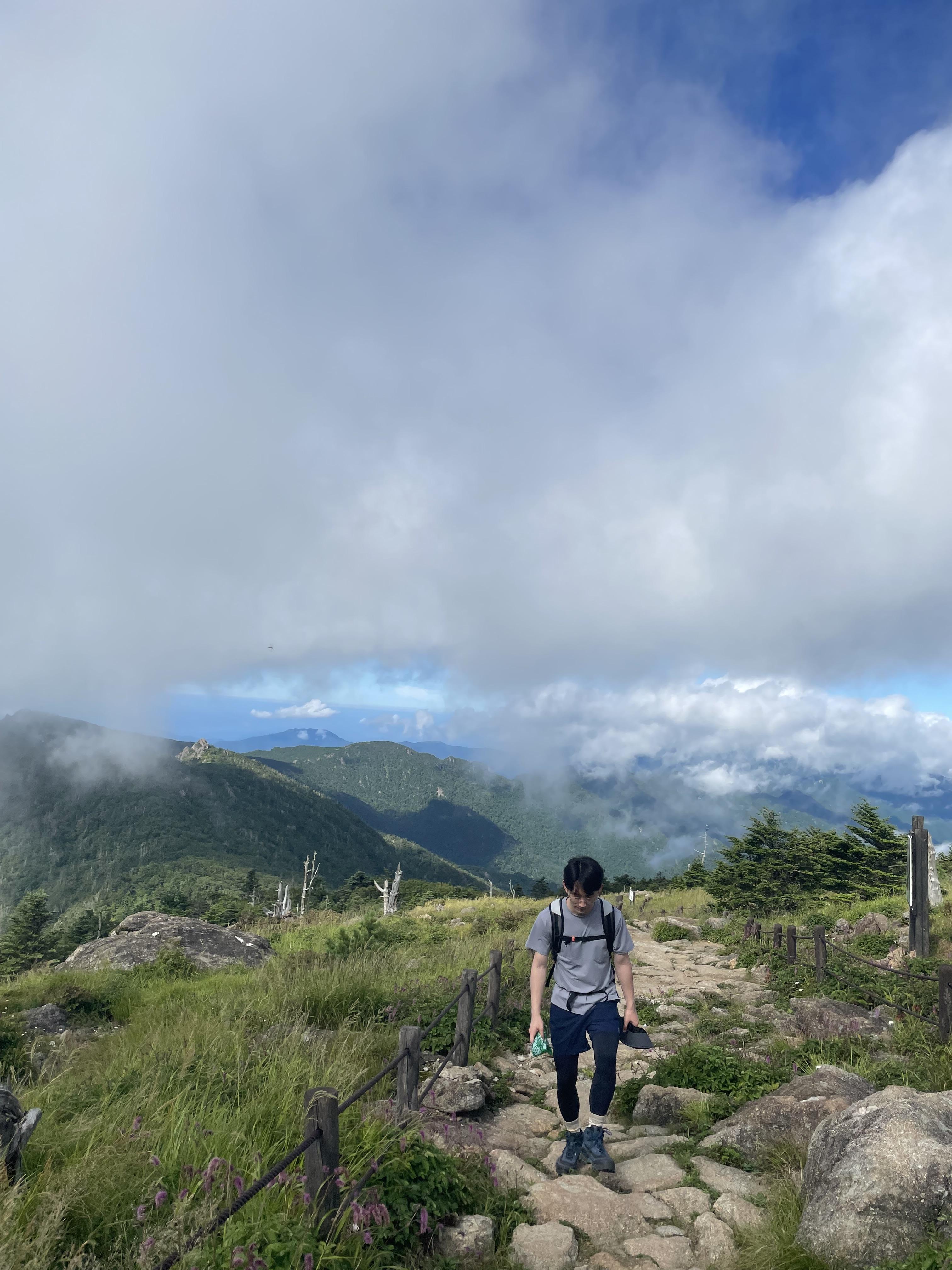 또 정상에서 살짝 내려오면 구름이 걷히는데 정상에서는 구름이 점령한다.