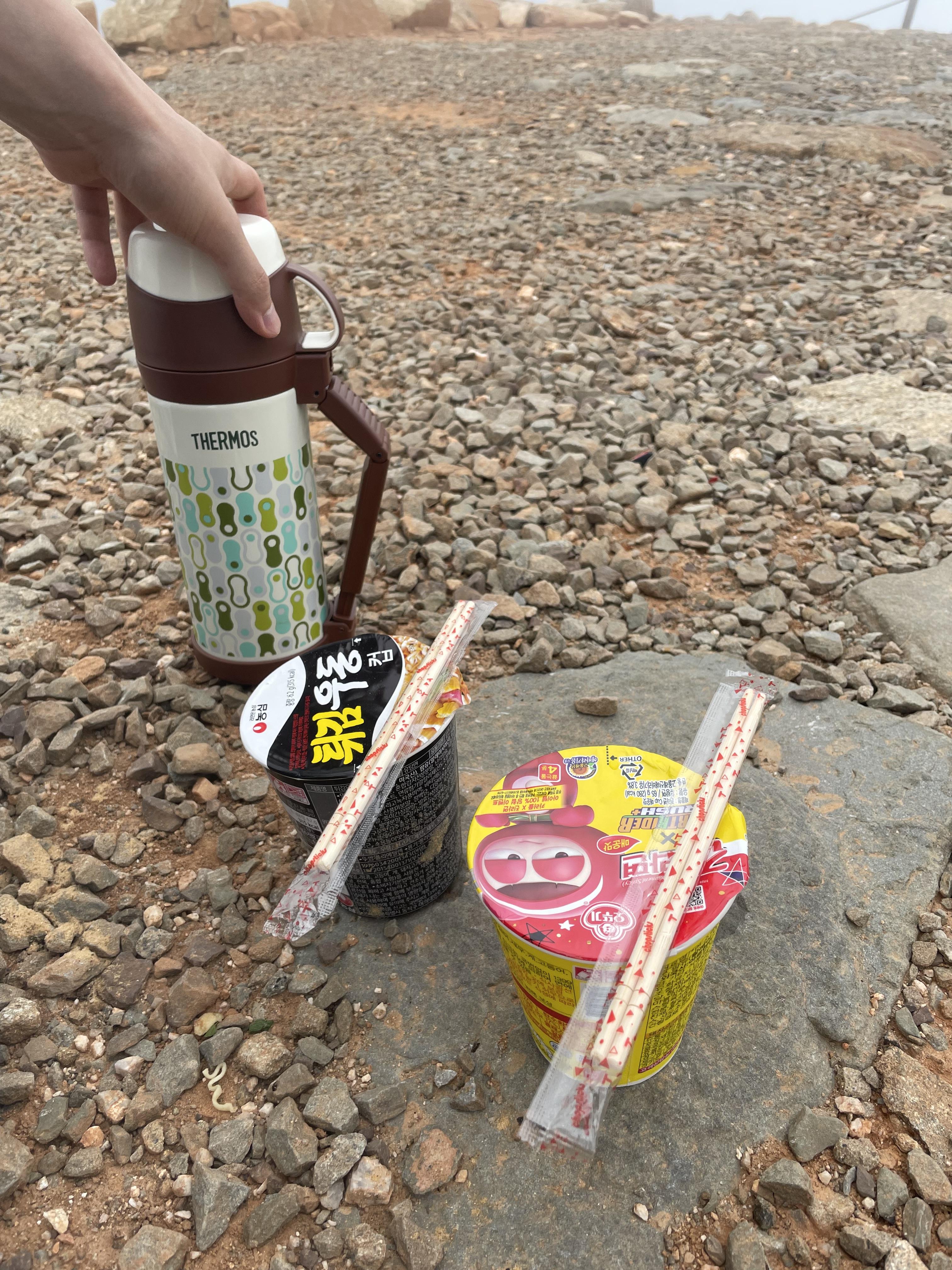 - 컵라면 / 젓가락 : 많은 음식을 가져가진 않았다. 연습 등산 때 너무 덥고 지쳐서 음식이 잘 안 들어갔기 때문이다.