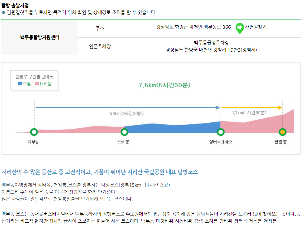 - 지리산 국립공원 홈페이지에서 제공하는 구간별 난이도 표를 꼭 참고해서 체력 안배할 것