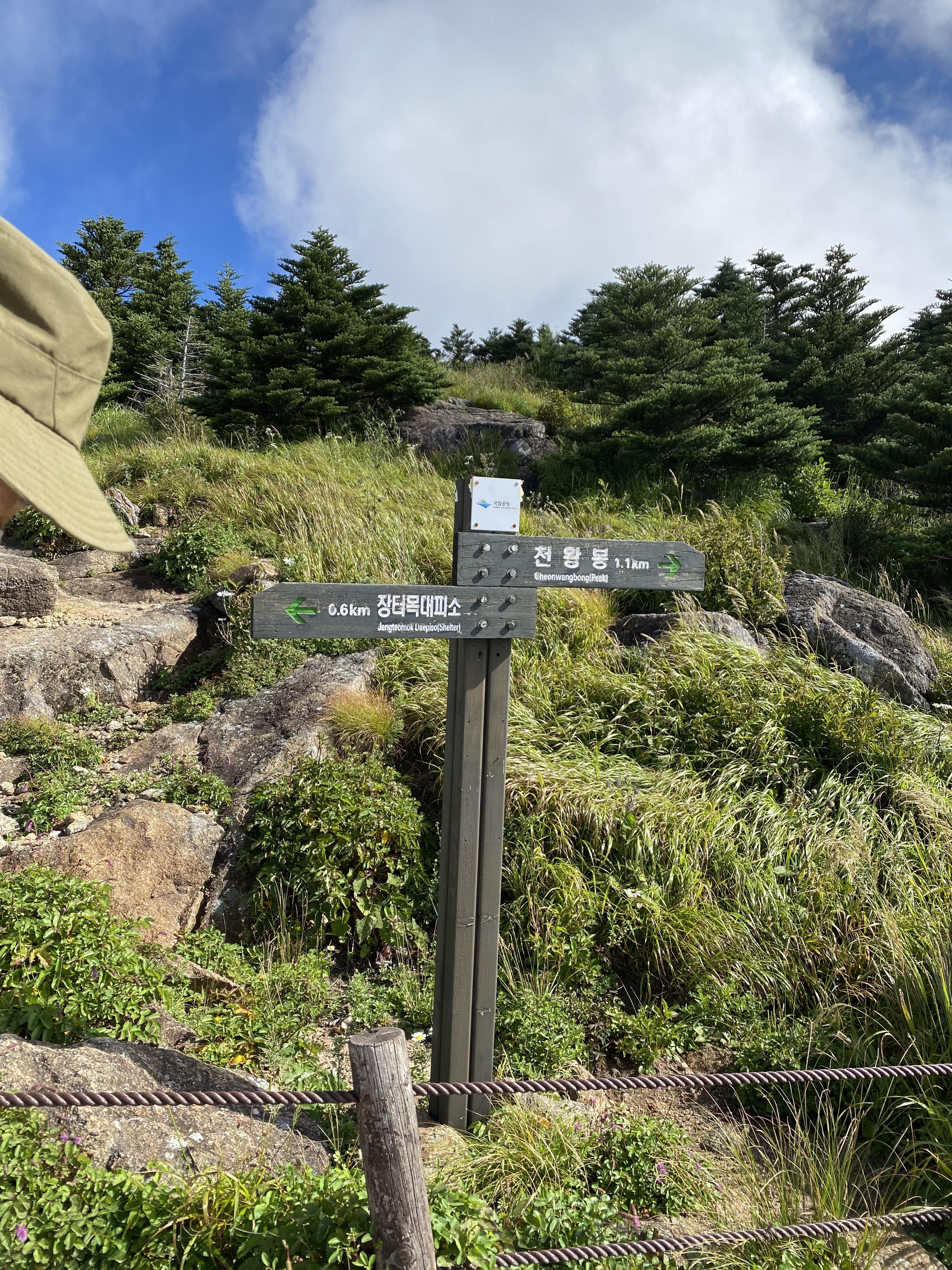 이제 표지판은 장터목대피소가 아닌, 천왕봉을 안내하고 있다.