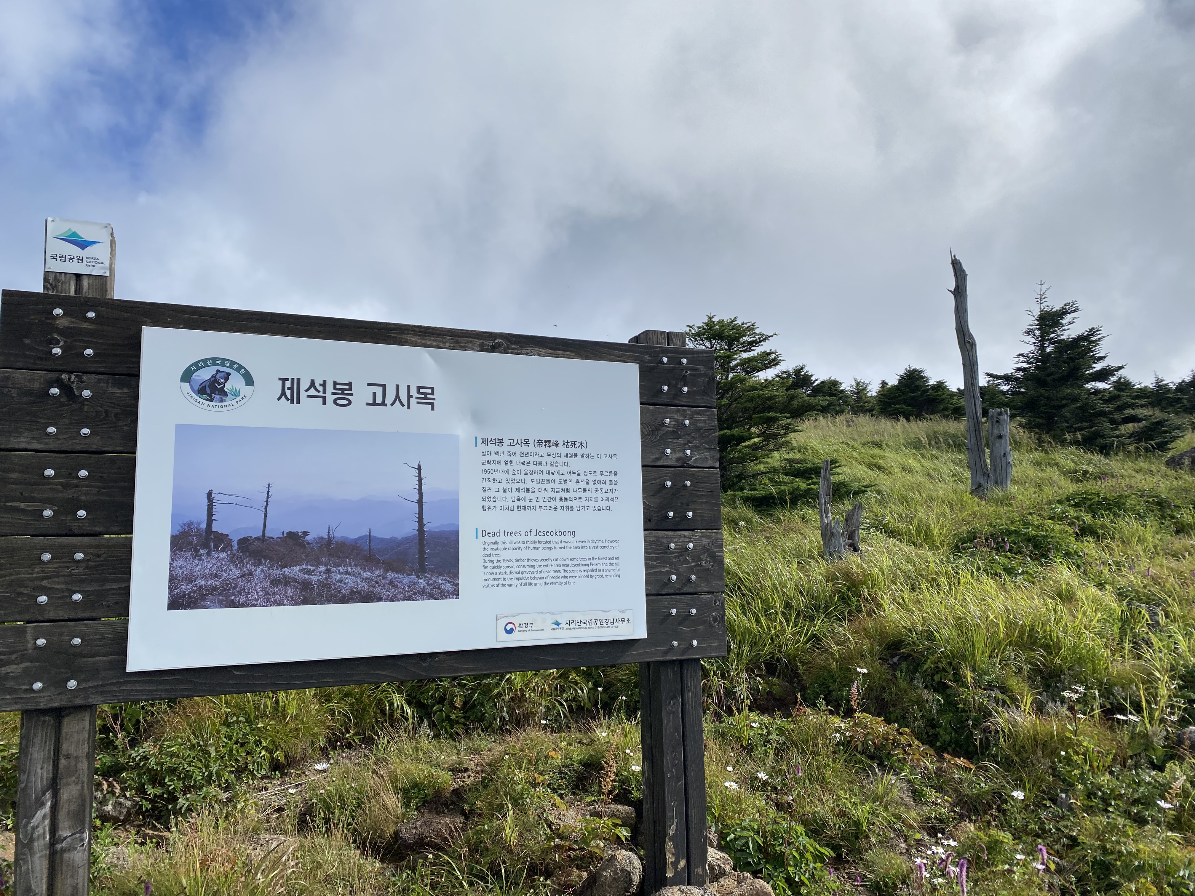고사목은 그냥 고도가 높은 곳에 있는 나무들인 줄 알았는데 그게 아니라 옛날에 나무를 불법으로 채취해가려다가 걸리자 불법 채집꾼들이 다 태워버린 거라고 한다.