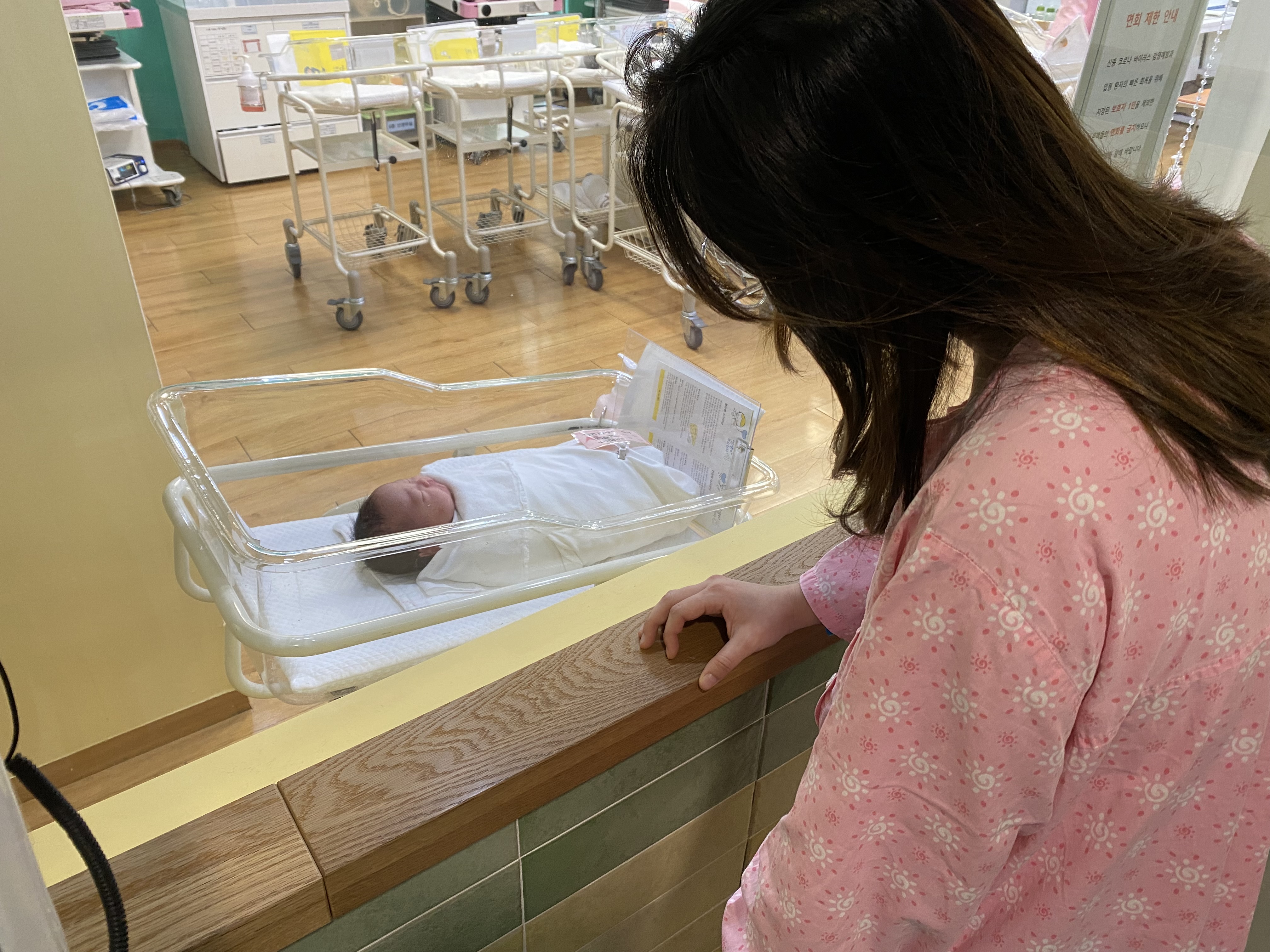 남편 통해서 사진으로만 봤던 터라 갓 태어났을 때보다 사진으로 보니 몇 시간 만에 왜 이렇게 못생겨졌어! 했는데 실물로 보니 너무 귀욥잖아...?! 주어진 10분 동안 한참을 봤다. 꼬물꼬물 귀염댕이 채민아 주니어