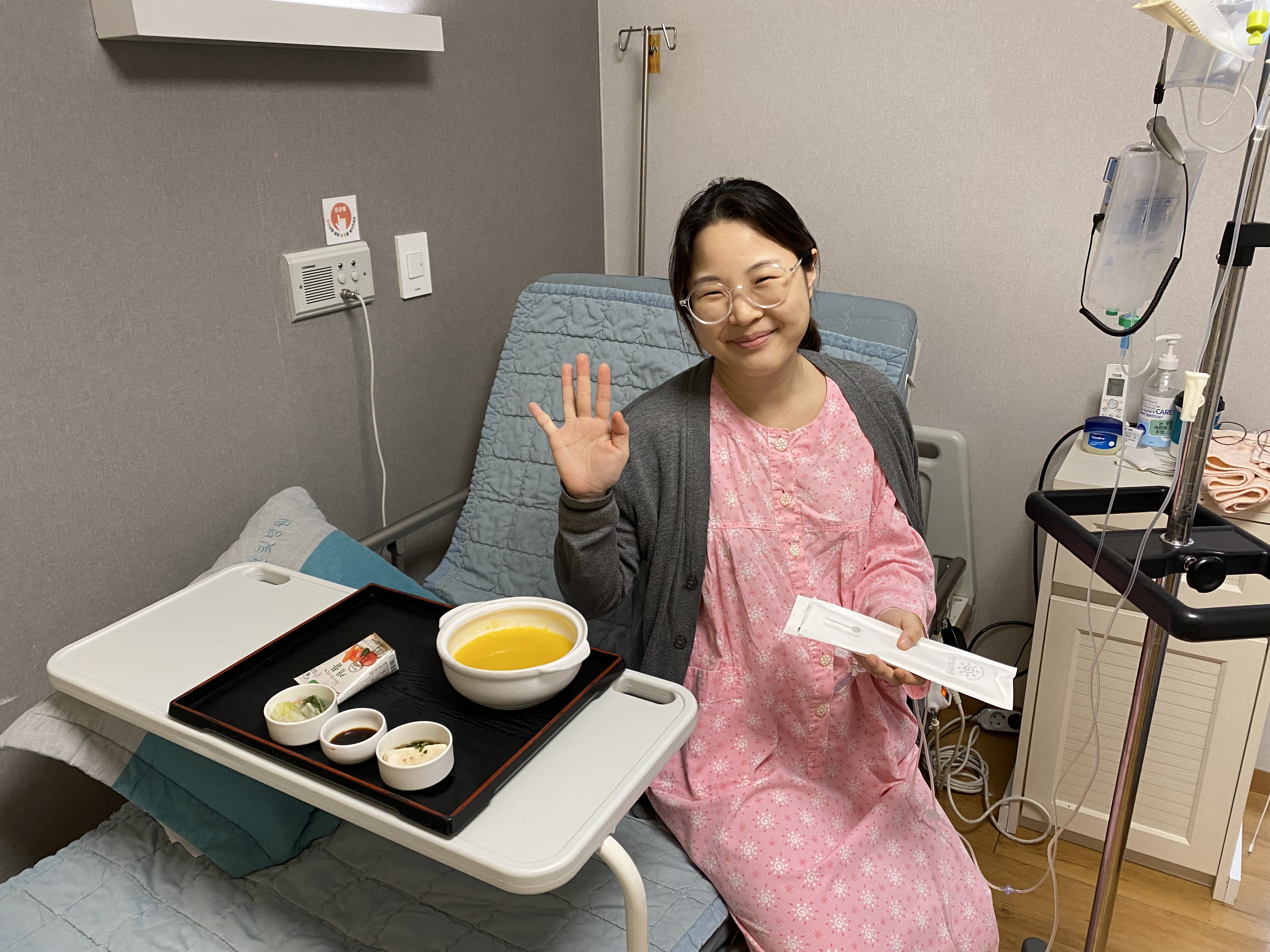 가스 나오긴 했어~ 식으로 알게 모르게 나오기도 한다고 해서 엇? 그럼 아까 그게 그거였나? 싶어서 간호사 선생님한테 저 나온 거 같은데 엄청 미세하게 뽕-했다고 하니까 뭐가됐든 나오기만 했으면 장운동이 시작되는 거기 때문에 식사하셔도 된다고 했다.