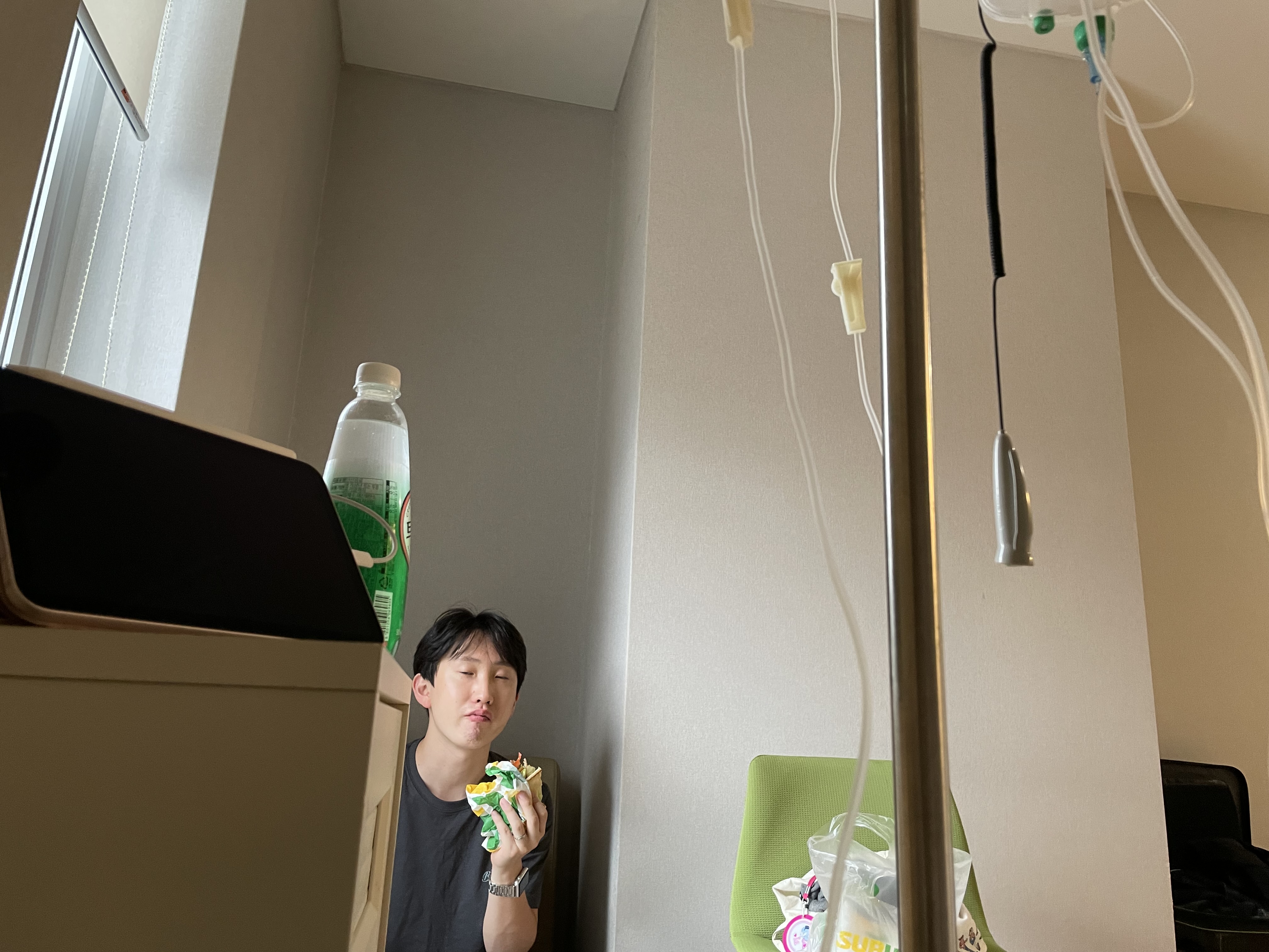 말할 때도 배에 힘이 안 들어가고 기운이 없어서 오후 1시쯤에 좀 눕자 해서 누웠는데 눕자마자 간호사님이 오셔서 아직 가스 안 나왔냐고 열심히 운동하시라고 했다.. 저 방금 누웠어요 슨생님 ㅋㅋ