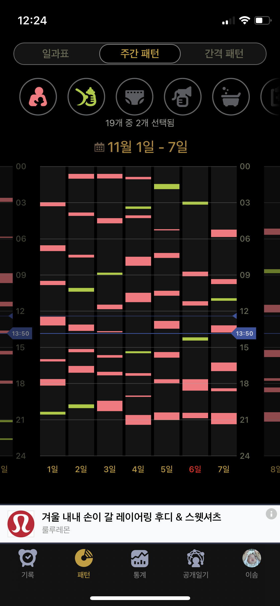 새벽수유는 하지 않았기 때문에 직수 횟수는 하루에 약 6번 정도였다.