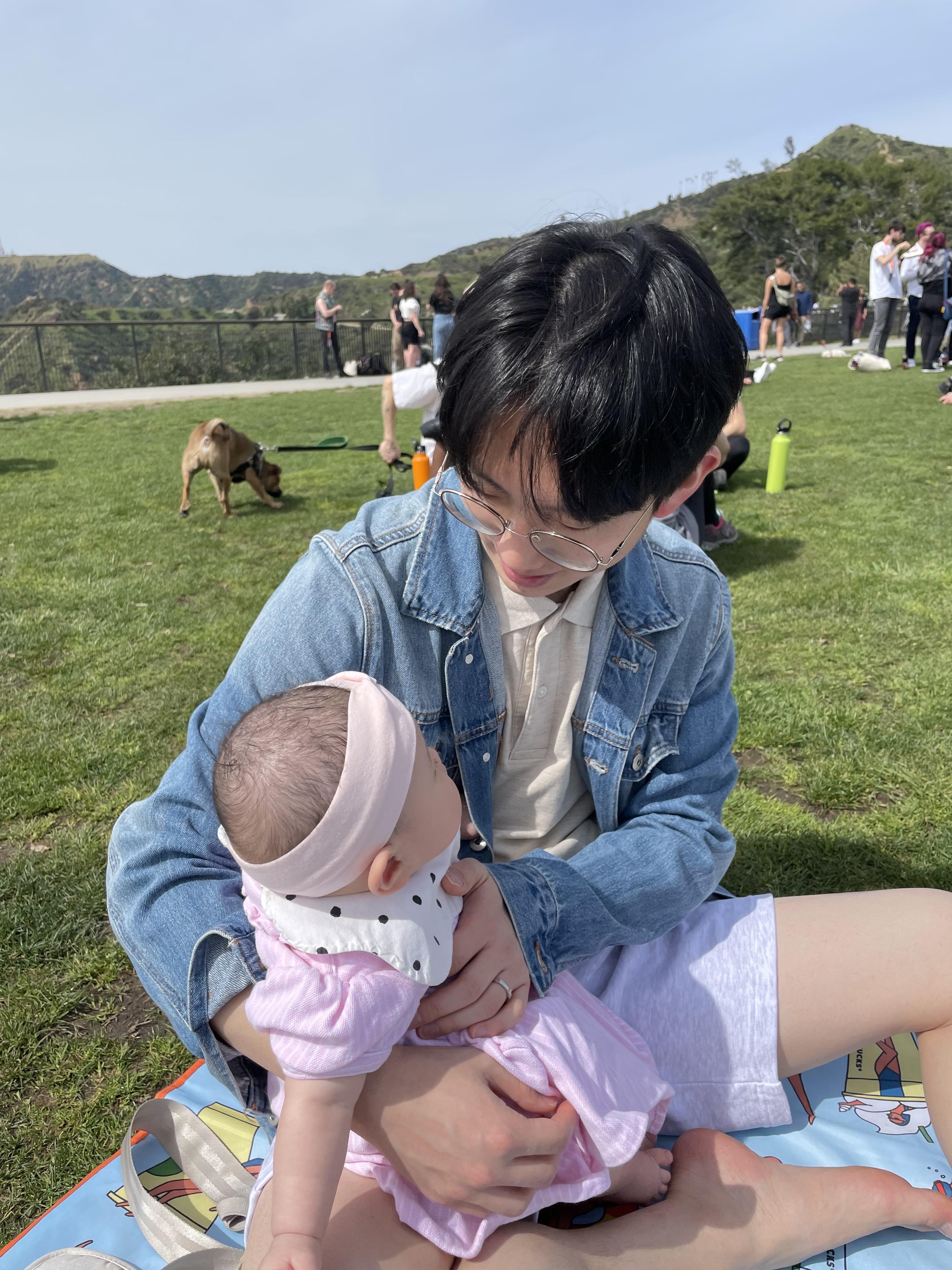 그래서 건물 앞 잔디에 돗자리를 깔고 앉아서 옷으로 가리고 모유 수유를 하기로 했다. 남편은 대체 왜 이렇게 거침이 없냐며 놀랐지만 어쩔 수 없는 걸 어쩐담.. 아기를 굶길 수는 없잖소. 어차피 아무도 우리한테 관심 없으니까요.