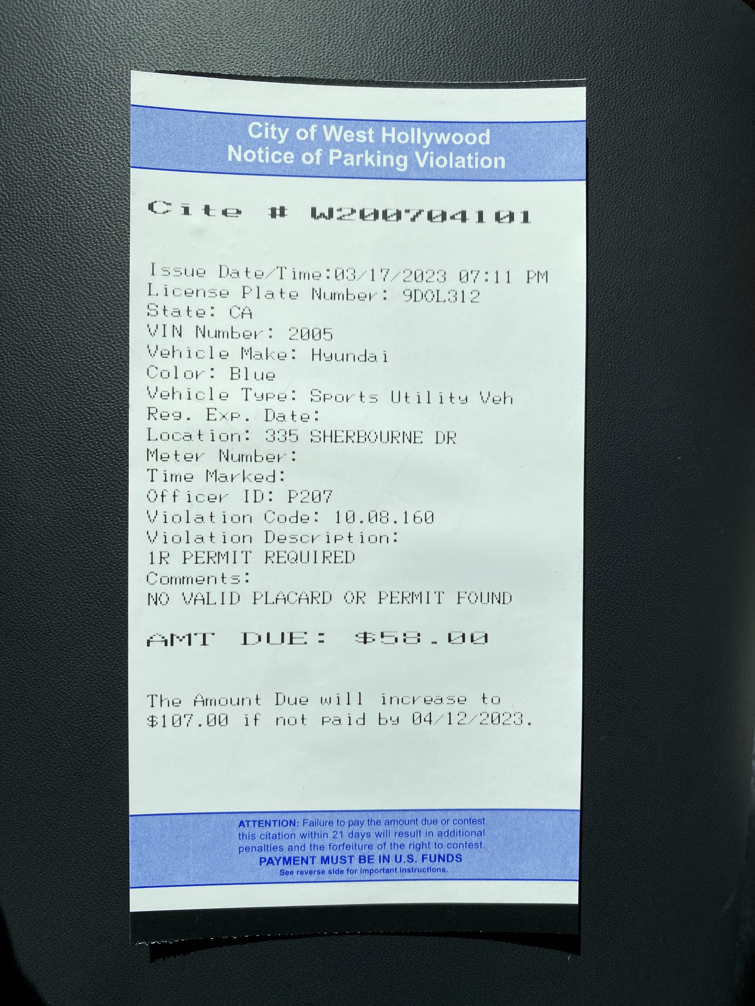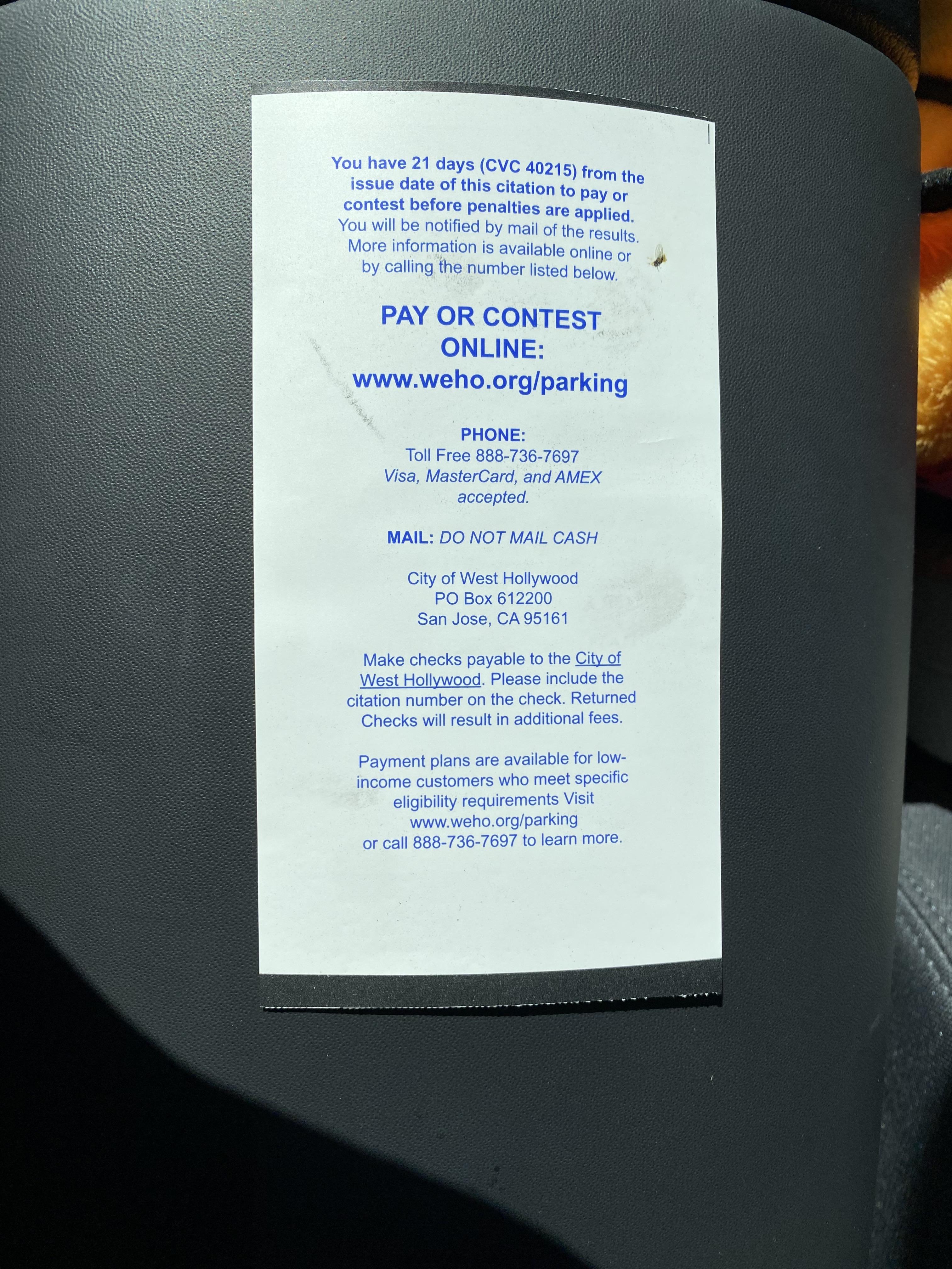 그리고 다시 돌아가려고 주차장으로 갔는데, 웬 영수증 하나가 우리 차에 꽂혀있어서 보았더니 전날 저녁에 도로에 그냥 세워뒀던 것에 대한 과태료가 청구되었다... 청천벽력.....!! 저녁 7시 이후에는 주차를 하지 말라고 적혀있었는데 보통 우리나라에서는 주말 저녁에 음식점 근처는 검사 안 하듯이 여기도 그럴 거라 생각하고 그냥 안일하게 대 놓았더니 바로 찍혔나 보다. 다음날 이렇게 과태료가 나올 줄이야.. 마치 주토피아 토끼가 샅샅이 뒤져서 영수증 껴두고 간 것 같은 느낌이었다.