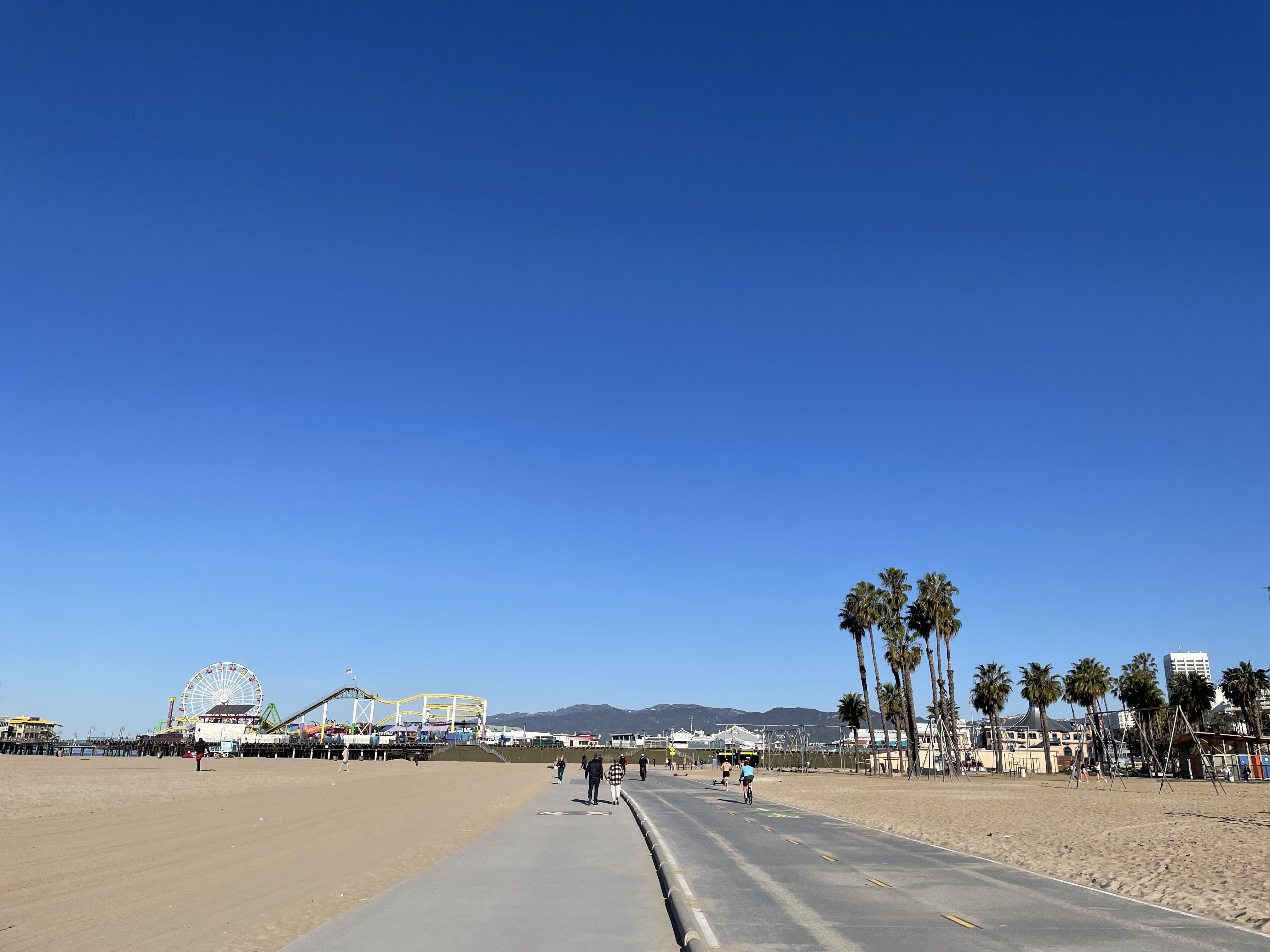 LA에 여행 오면 다들 들르는 코스 중 하나로 산타모니카 비치가 있었는데, 나는 왜인지 그곳이 우리나라의 월미도 같을 거라 생각이 들어서 굳이 가지 않으리라 생각했다. 그런데 이렇게 일찍 오게 되었으니 사람도 없고 한적하니 좋았다.