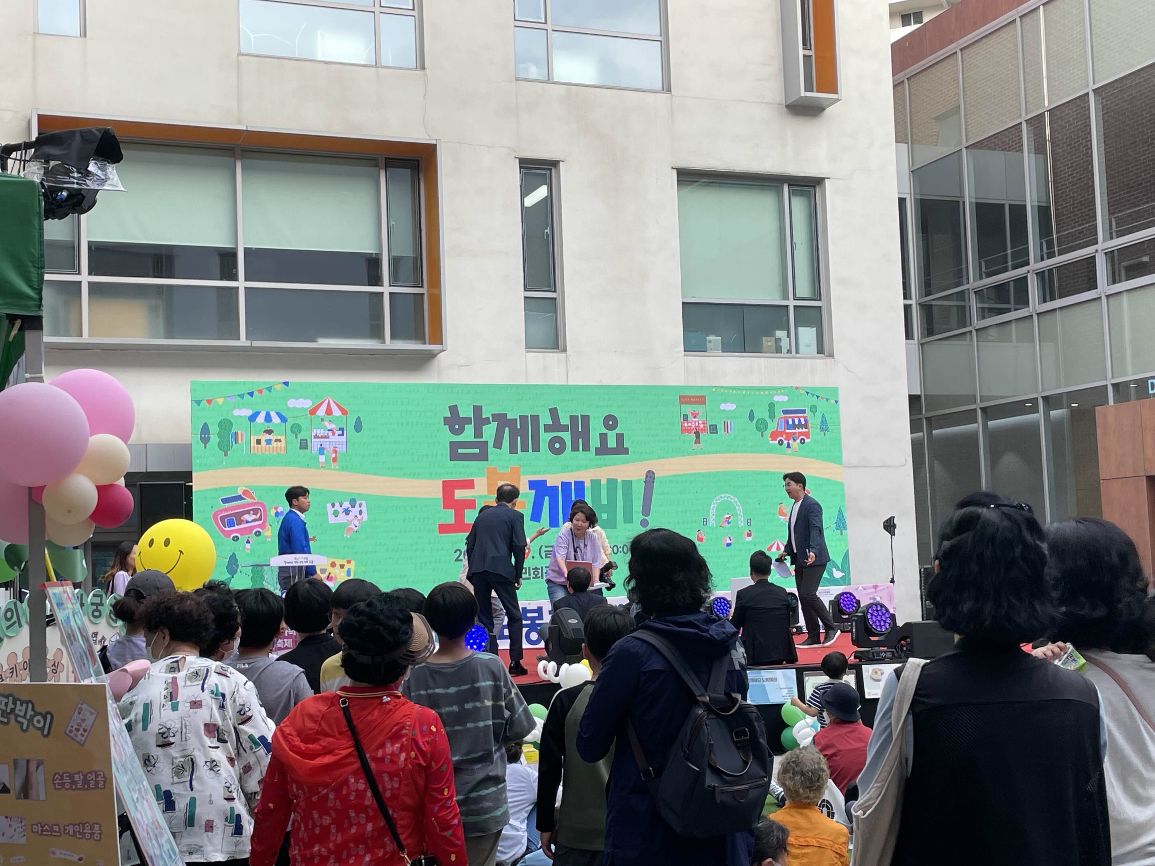 부랴부랴 도착했더니 타임테이블 상 내가 기다리고 기대했던 제비뽑기 시간이 끝났다... 매우 아쉬워하고 있었는데 갑자기 도봉구청장이 나와서 뽑기를 진행하고 있었다. 이제 시작인가보다 하며 엄청 기대하고 있었지만 이런데는 영 운이 없는 나는 아무것도 당첨되지 못했다.