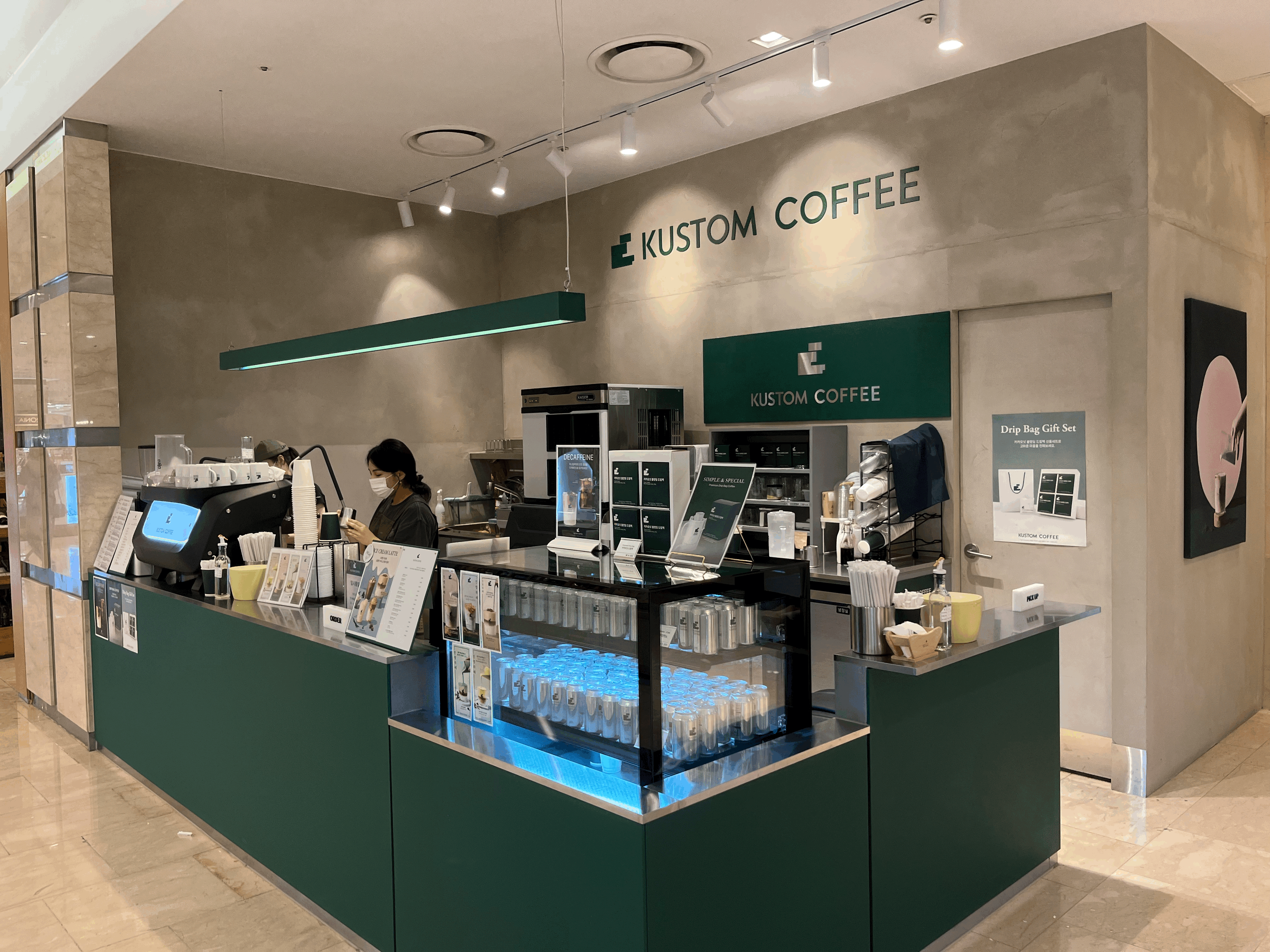 깔끔한 디자인에 라떼가 맛있다고 소문난 커스텀커피. 회사 팀 사람의 (귀에 박히도록 들은) 추천으로 알고는 있었지만, 집 근처에서는 먹으려면 노원역까지 가야하기 때문에, 귀찮음에 가지 않고 있었다. 그러던 중, 부천에 사는 처형네 집에 놀러갔다가 백화점을 갔는데, 거기에 마침 커스텀커피가 있었다.