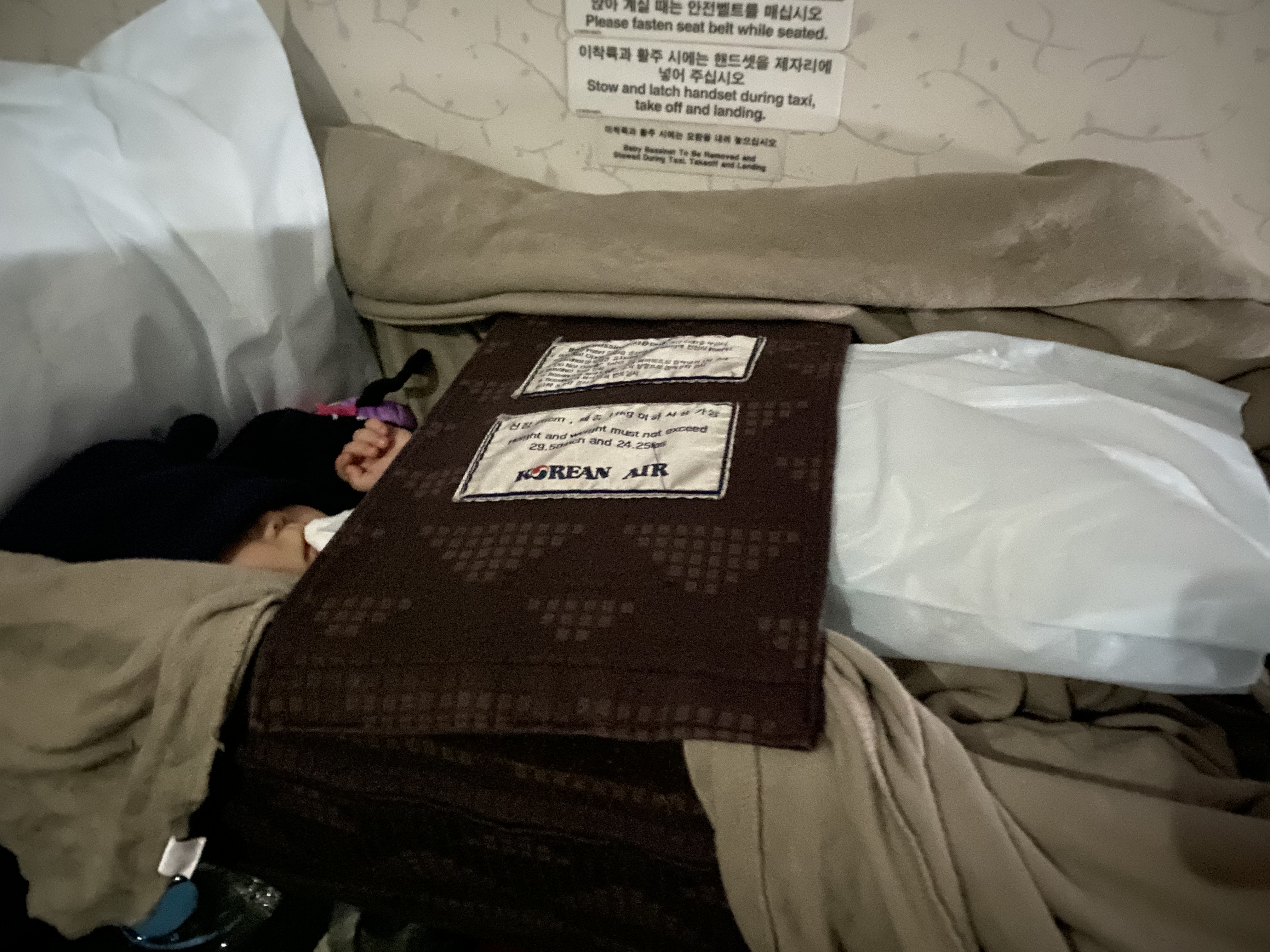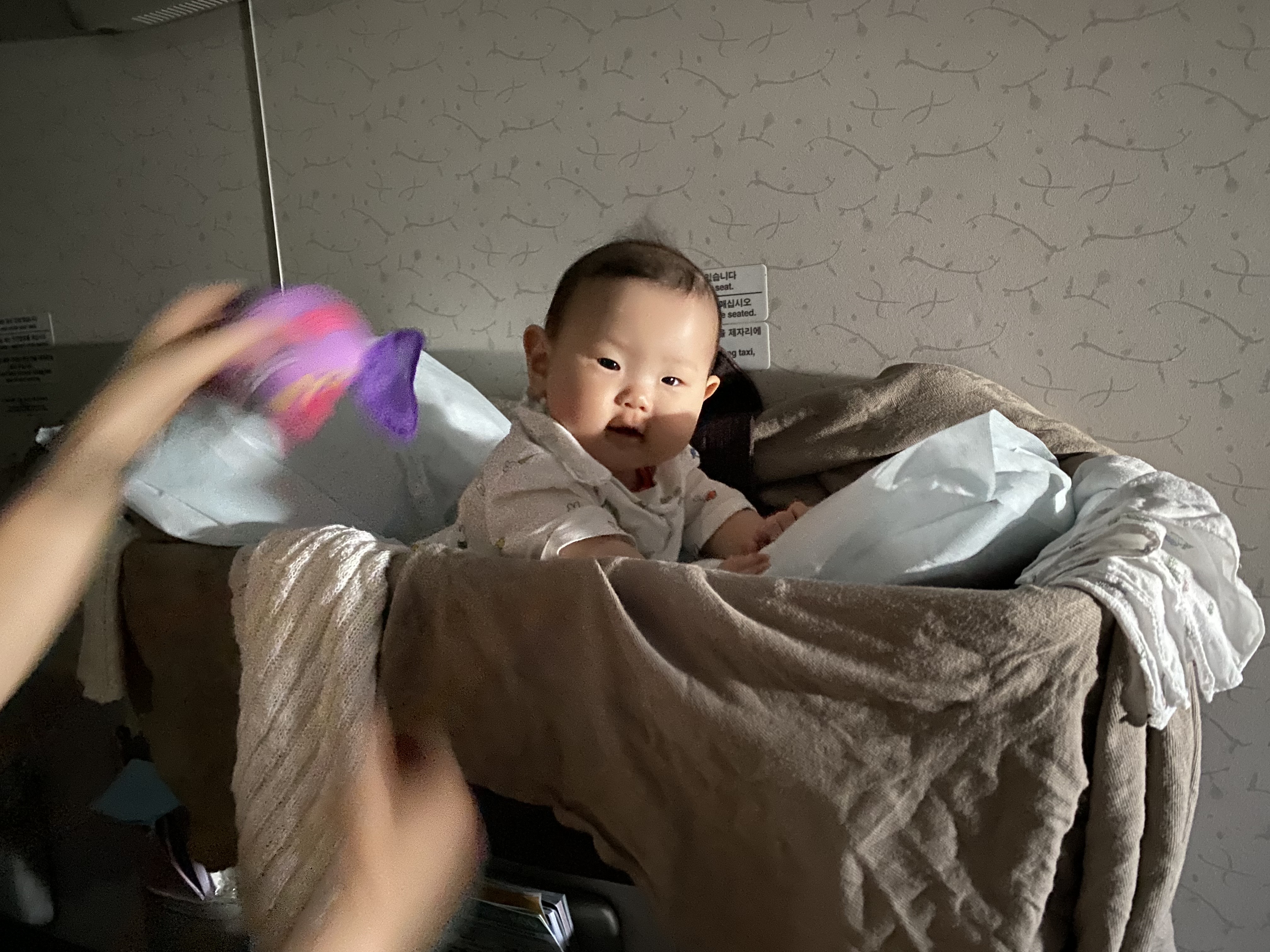 귀국 편에서는 오히려 이착륙할 때 조금 울고는 그 뒤로는 아기가 평안하게 있어서 다행이었다. 앞으론 감기에 걸리든 안 걸리든 비행할 때는 촉촉하게 유지하고, 이착륙할 때는 뭐라도 먹이도록 해봐야겠다.