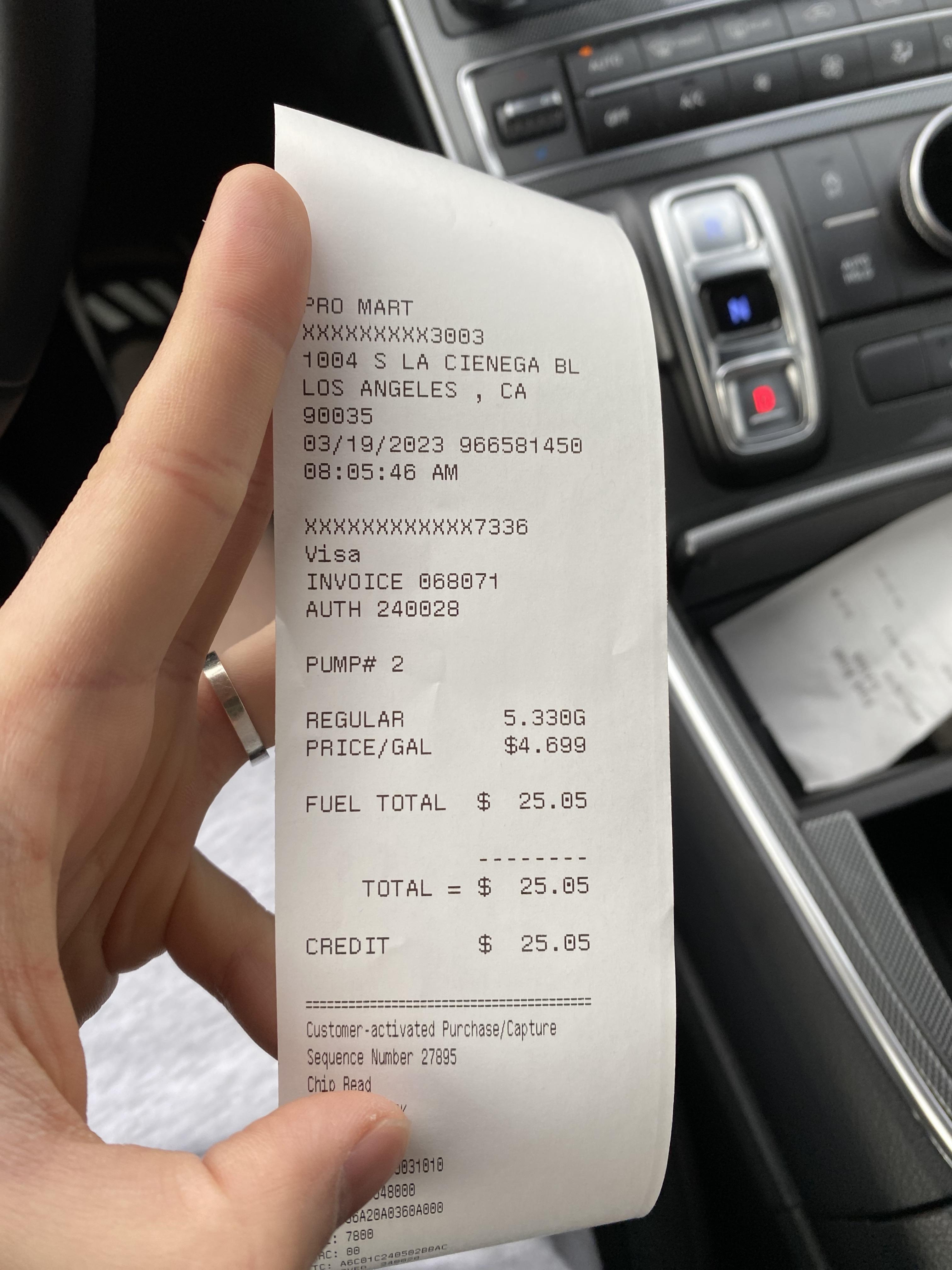 그래서 남편이 hertz에 문의했더니 연료가 모자라게 반환되어서 청구했다는 것이다. 그래서 남편은 영수증을 찍어서 보냈고 주유소에서 반납지까지 13마일 정도라 그렇게 많이 빠지지 않았을 거라고 덧붙였다. hertz 측에서 첨부한 영수증을 토대로 확인해 보더니 잘못 청구되었다며 다시 환불처리를 해주었다. 그래서 영수증을 찍어놓거나 보관하지 않았더라면 그냥 호구 잡힐 뻔했다며 앞으로도 영수증을 사진 찍어놓는 습관을 만들어야겠다고 생각했다.