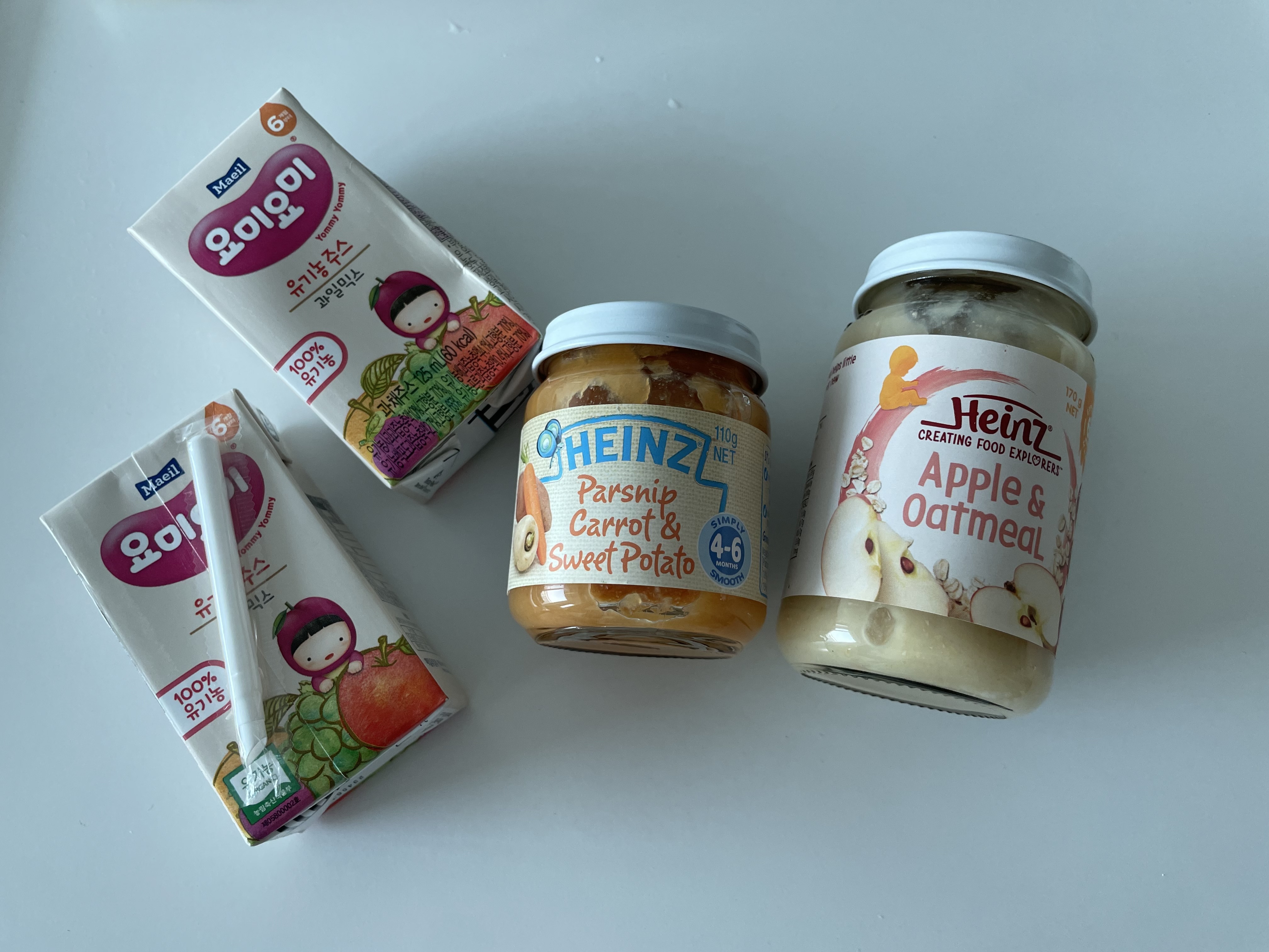 하인즈는 내가 먹어봤을 때 모든 제품이 전부 계피맛이 느껴진달까..? 그랬고 과일음료수는 아직 빨대컵을 사용하지 못할 때였을뿐더러 과일음료는 최대한 늦게 먹일 참이라 한국에 가져와서 남편이 다 먹었다.