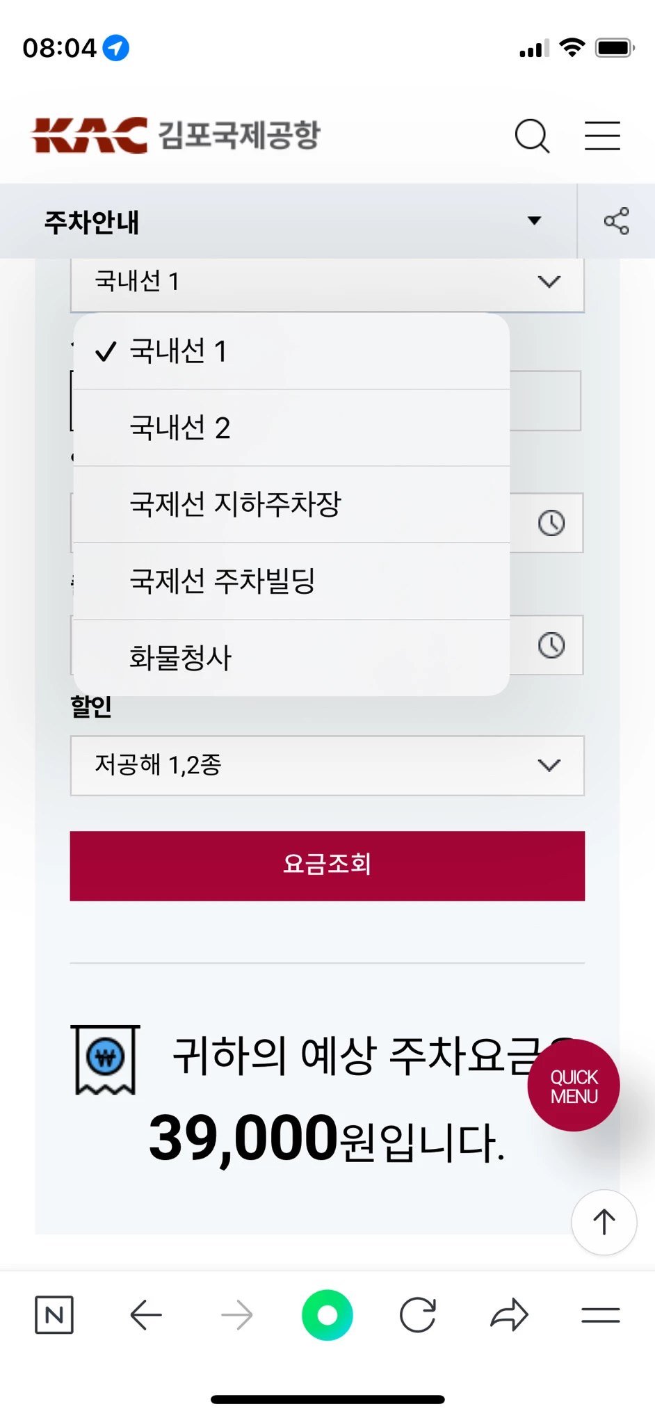 김포공항 예상 주차비 체크 홈페이지