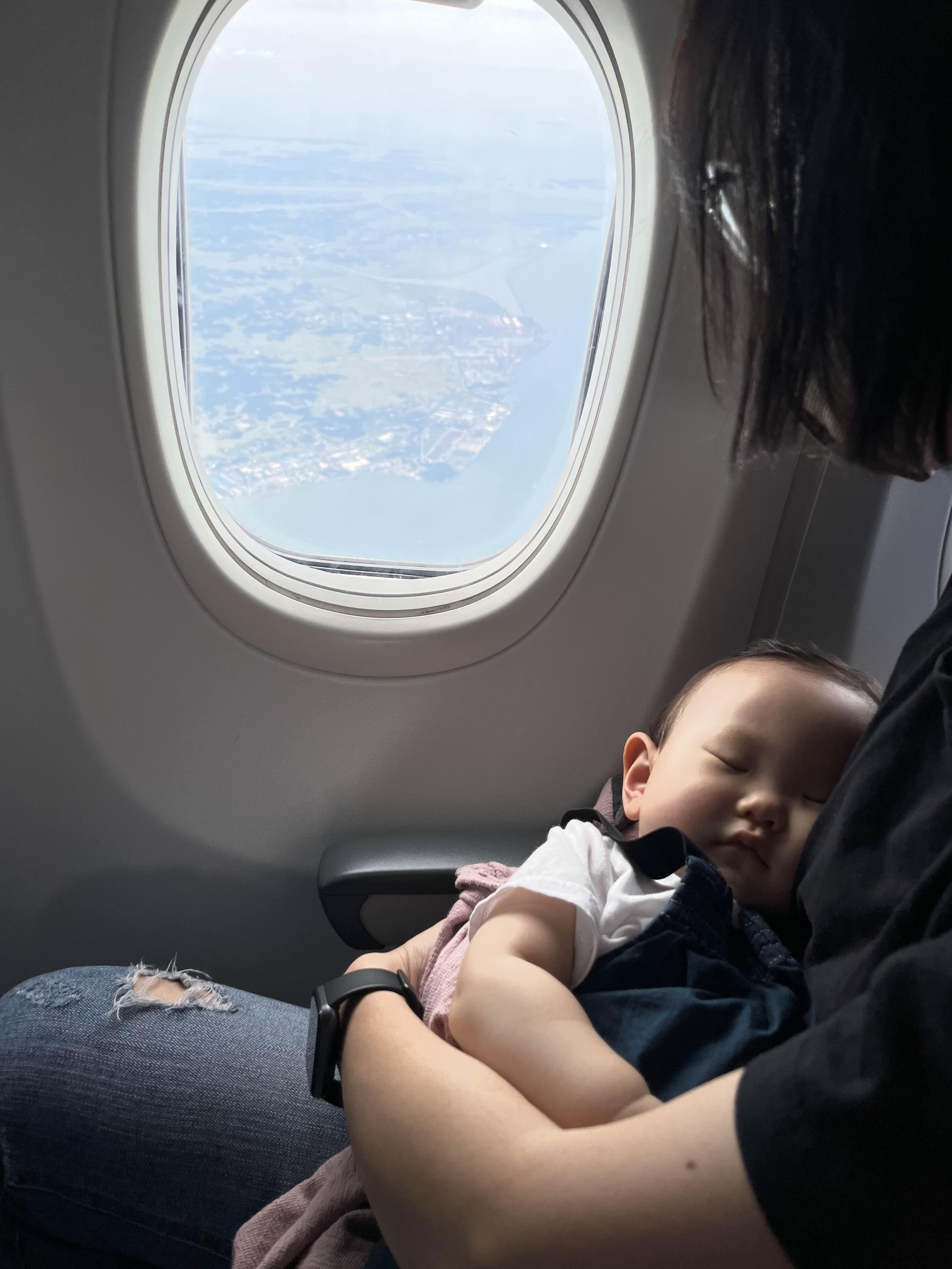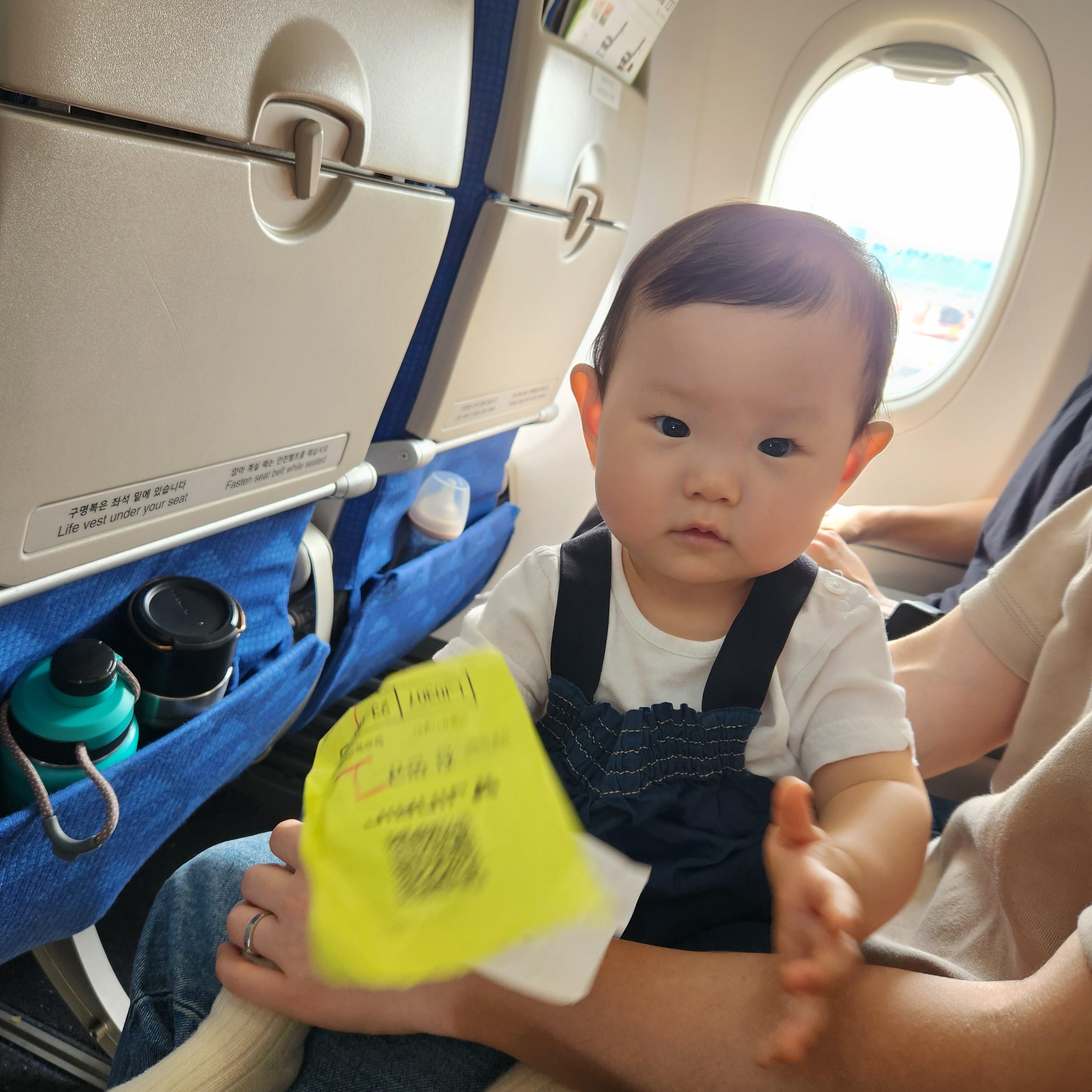 우리는 진에어 탑승구 10번으로 갔는데 앞 비행편이 연착되어서인지 우리 것까지 영향을 미쳤다. 예정시간보다 30분 지연되어 탑승을 했고 아기의 인내심이 바닥날 즈음에 이륙을 했다. 아주 나이스한 타이밍으로 분유를 먹이고 나니 안정권에 다 올라왔고 아기가 낮잠타임까지 가졌다. 처음부터 난이도 높은 미국에 다녀왔다 보니 제주도 정도는 그냥 올라가자마자 내려오는 것 같은 느낌이었다.