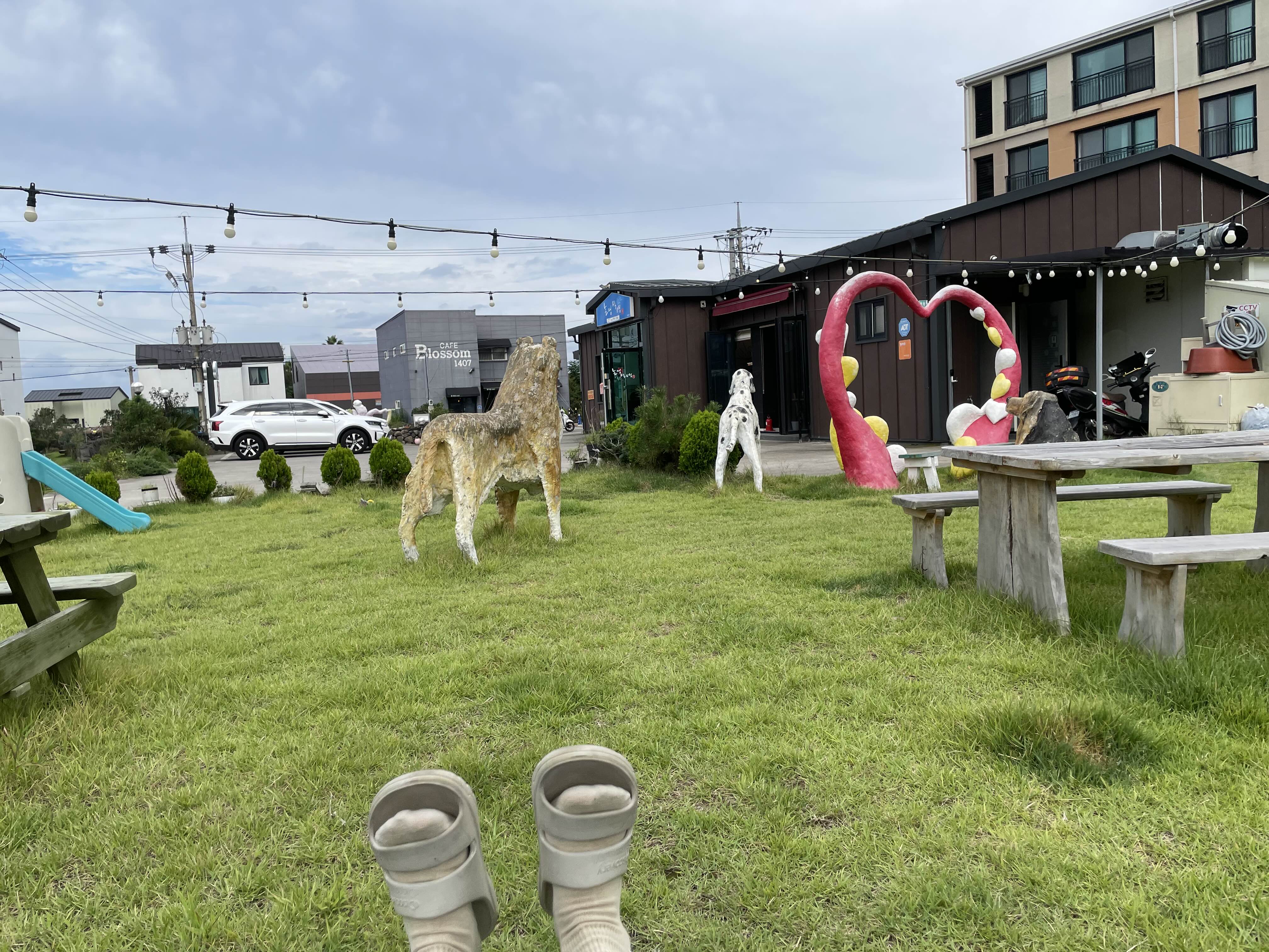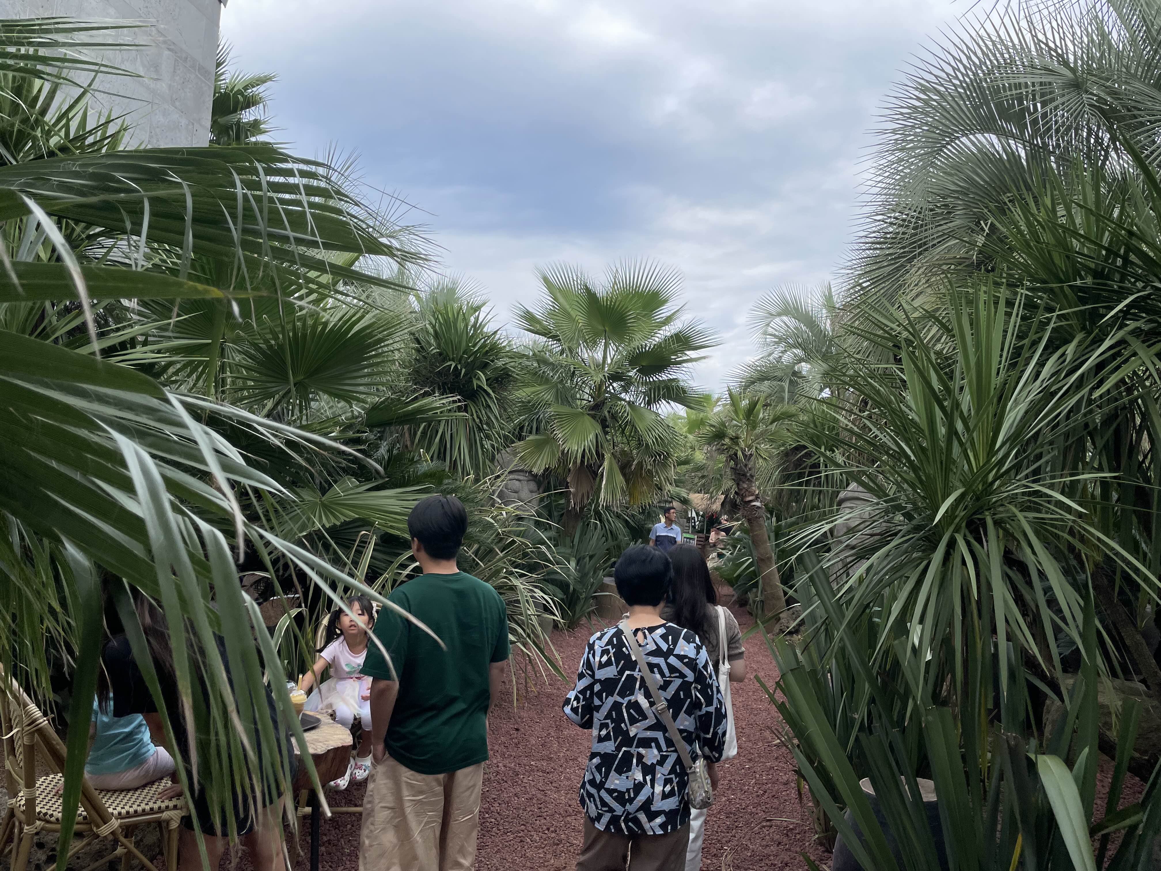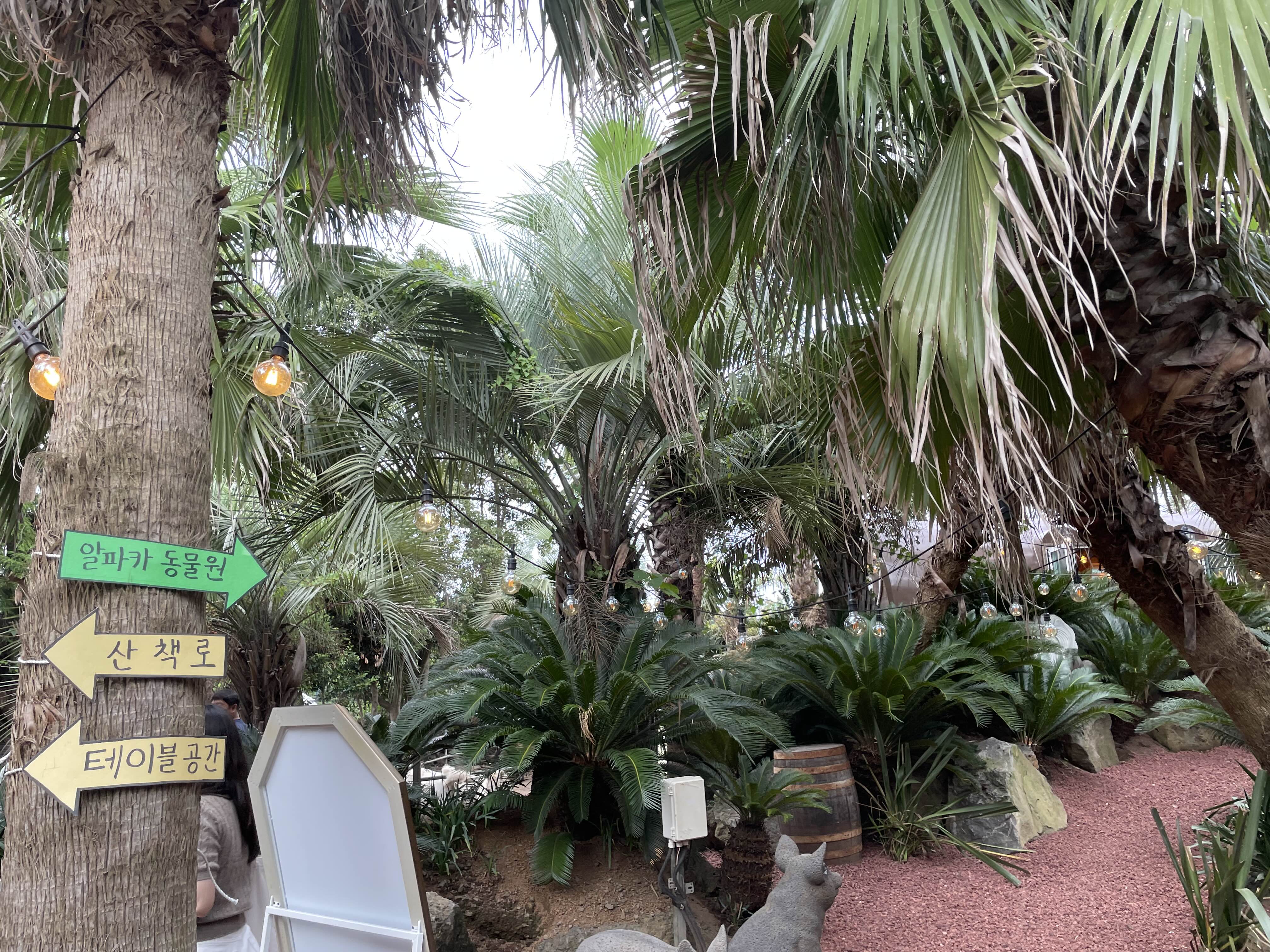 친구가 제주도에 다녀와서 추천한 곳이었는데 음료값으로 다양한 체험도 가능하고 음료도 마실 수 있어서 한번 가보고 싶었다. 실제로 가보니 아주 멋있게 지어놓긴 했는데 날이 덥거나 춥거나 비가 오는 등 날씨가 좋지 않으면 그 넓은 지대는 다 무용지물일 것 같다. 우리는 바깥 자리에 앉았는데 야자수 열매인지 뭔가 살구? 자두? 같은 향을 풍기는 열매가 바닥에 잔뜩 떨어져 있는데 치우질 않아서 온갖 벌레들이 꼬여있었다. 시커먼 모기도 자꾸 왔다 갔다 하길래 우리는 오래 앉아있지 못하고 서둘러 이동했다. 어머님과 시누이가 동물 먹이를 주고 우리는 그걸 구경했다.