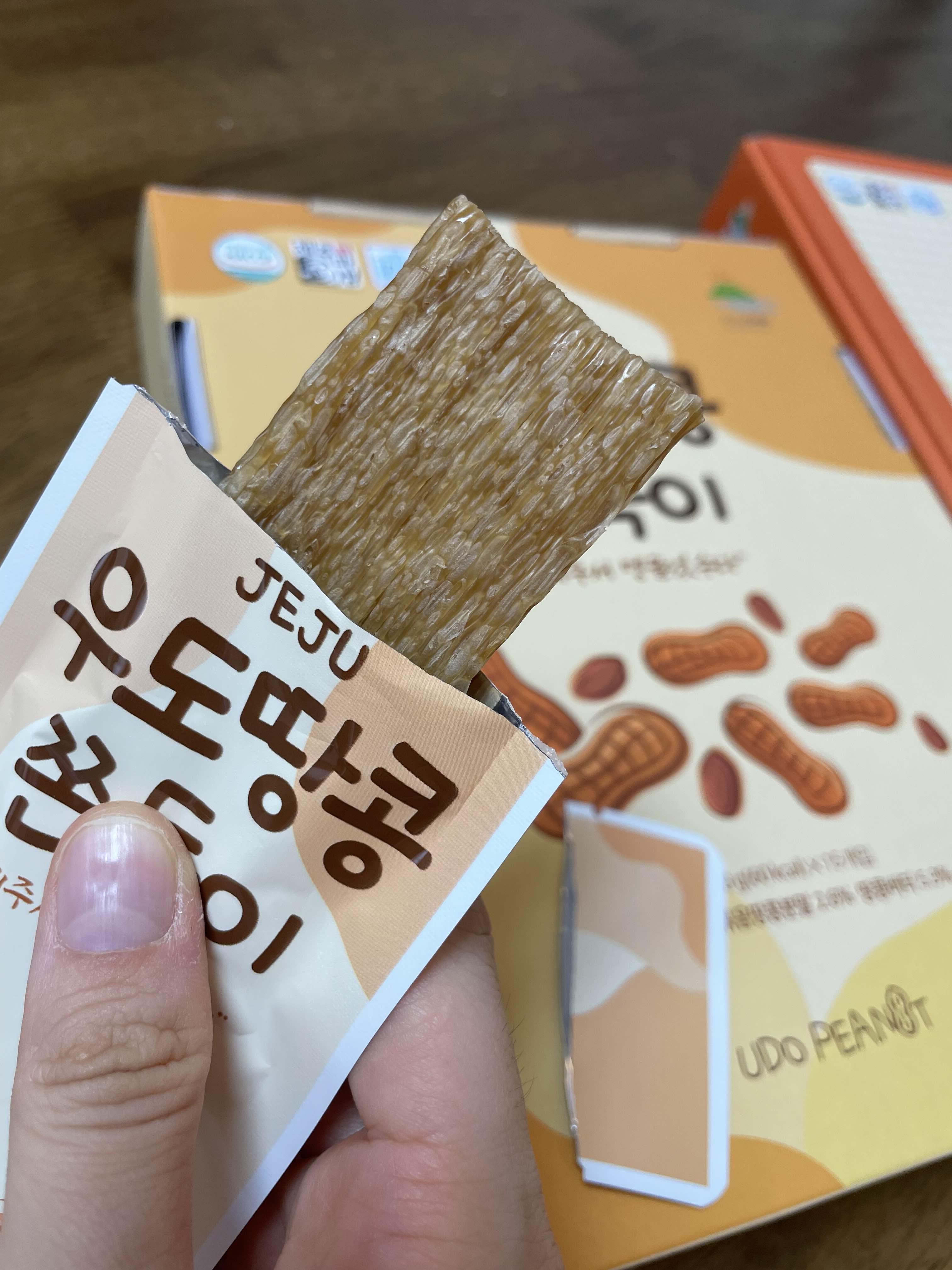 어머님이 간식 겸 선물용으로 사신 쫀드기를 한번 맛보았다. 우도땅콩 쫀드기를 먼저 먹어봤는데 땅콩카라멜 맛이었다. 그리고 감귤쫀드기를 먹어봤는데 그건 착향료 맛이 좀 강해서인지 나는 우도땅콩 쫀드기가 더 맛있었다.