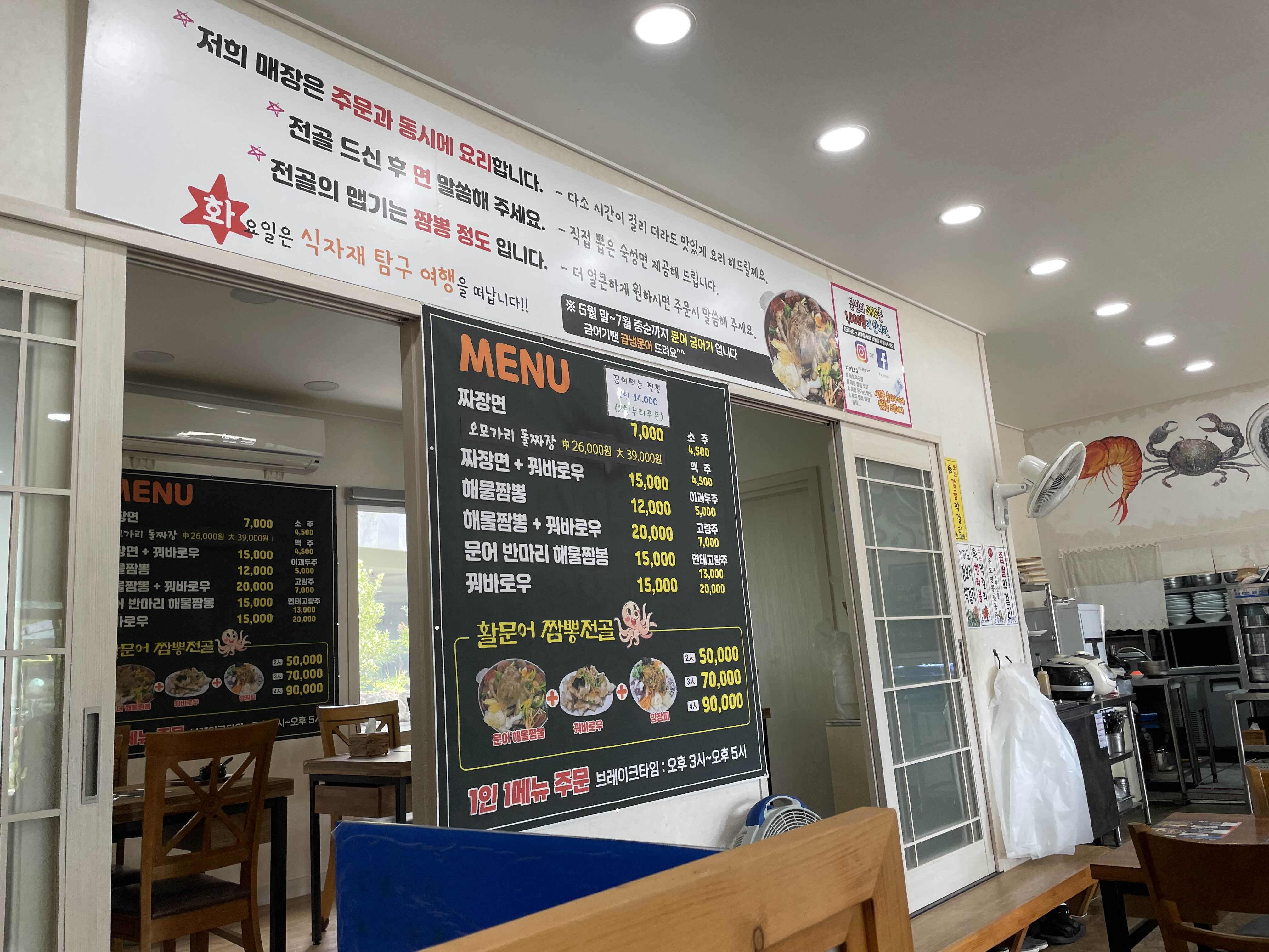 간단하게 짐을 풀고 곧바로 점심을 먹으러 나갔다. 모두들 배고픈 상태라 최대한 근처에 있는 맛집을 찾아보았고 마침 문어짬뽕집이 있어서 갔다.