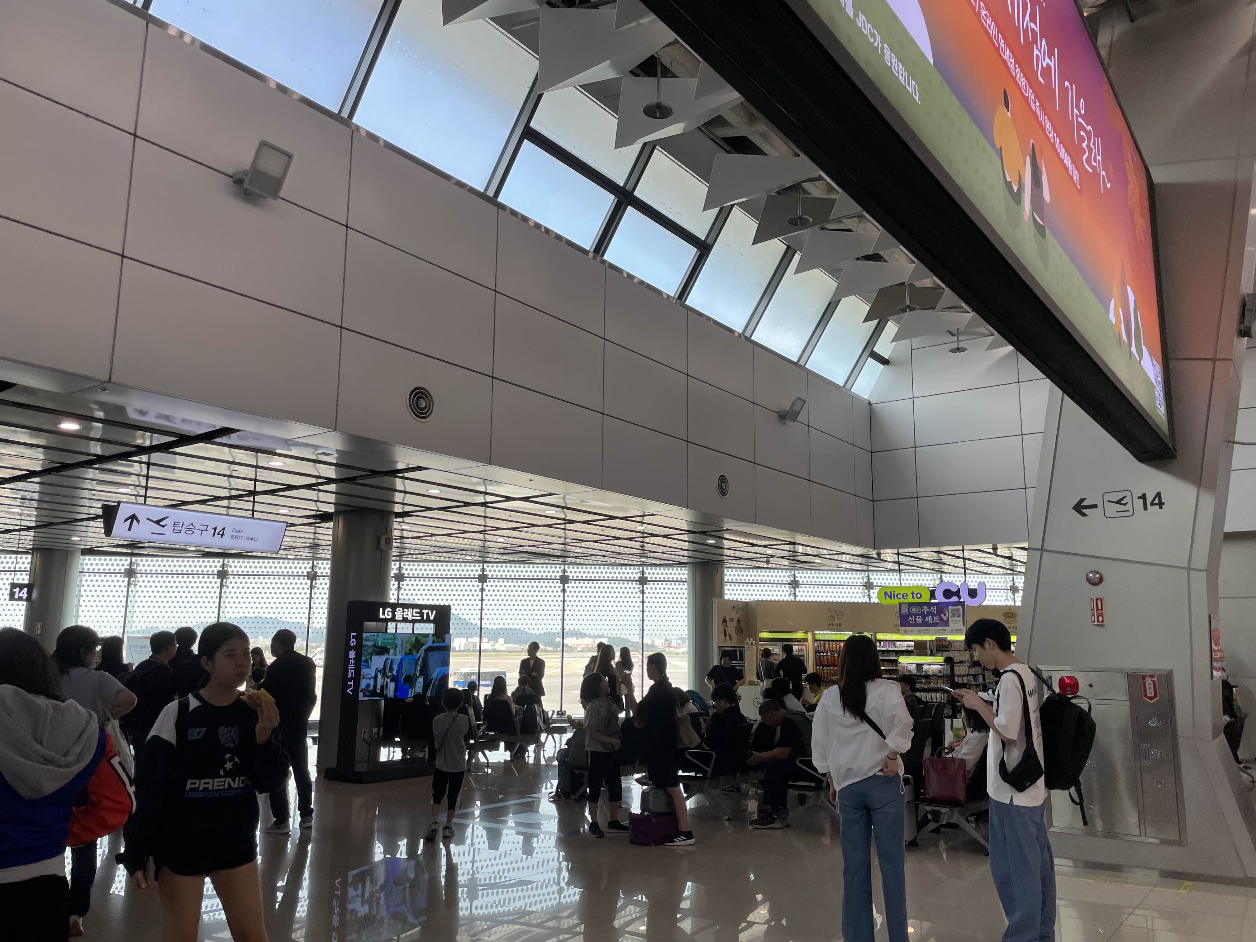 인천공항과 달리 탑승수속과 보안수속 층이 달랐고 김포공항에서는 명확하게 안내된 표지판도 잘 없어서 우리는 출발장으로 가기 전 조금 헤맸다. 김포공항에서도 교통약자우대석으로 들어갈 수 있었는데 들어가는 입구자체가 다르진 않고 들어간 후에 우대통로가 나뉘었다. 그리고 교통약자우대통로로 통과할 수 있는 인원은 3명뿐이어서 우리 세 식구만 들어갔다.