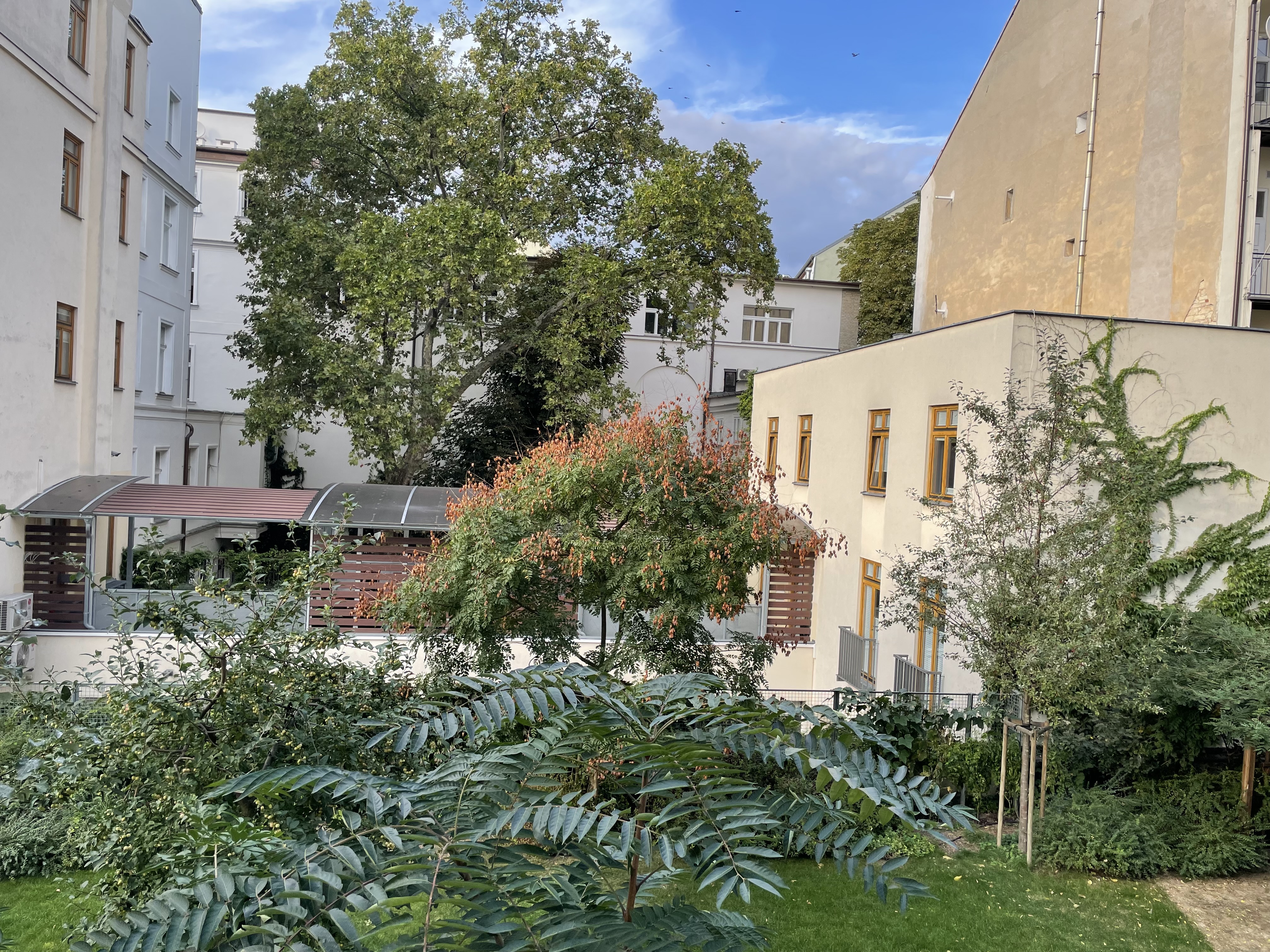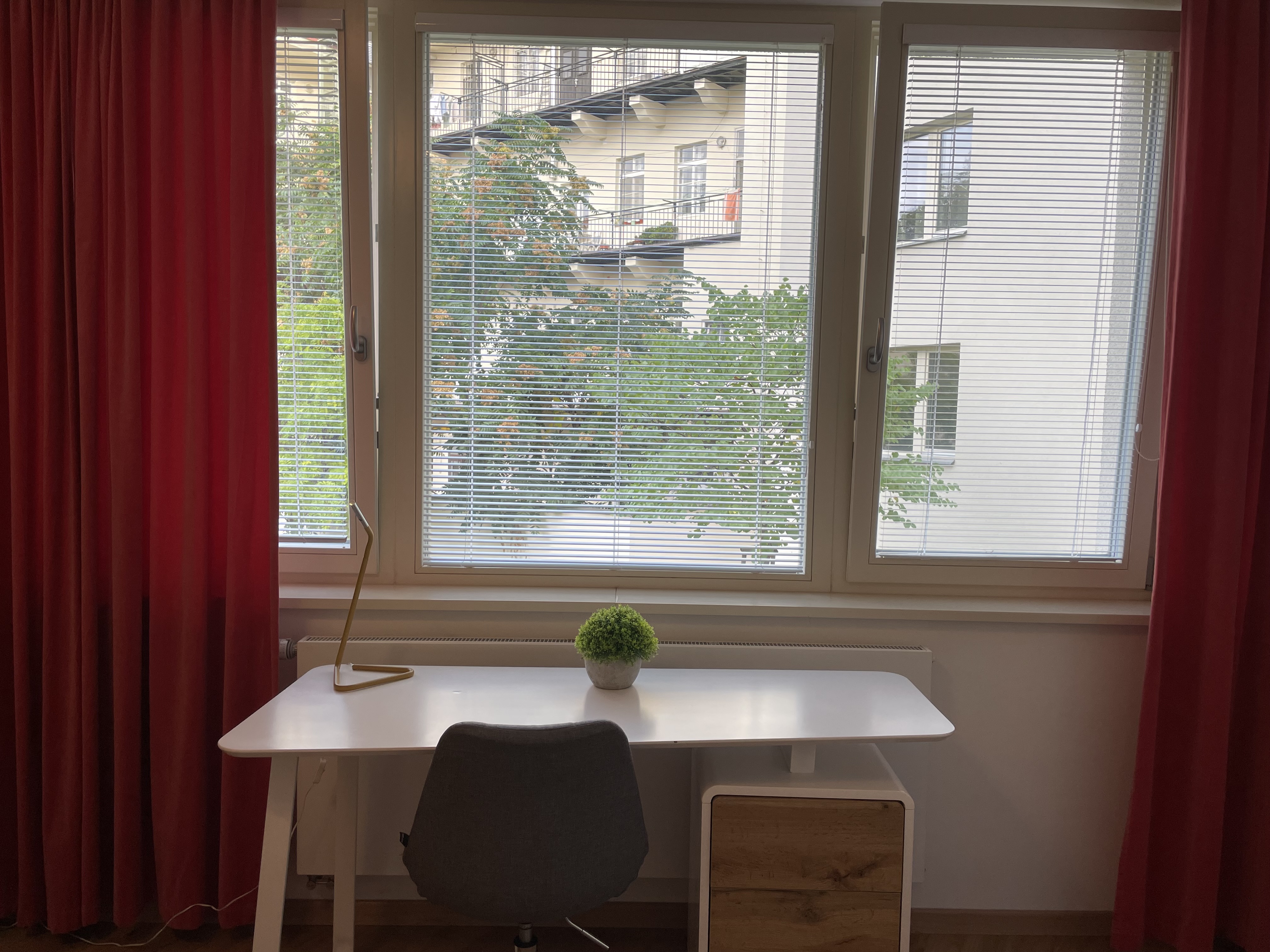 바깥뷰는 작은 공원을 조성해 둔 것처럼 자연친화적이었다. 다만 커튼을 치지 않으면 맞은편 이용객들이 우리 집 내부를 다 들여다볼 수 있는 구조였다.