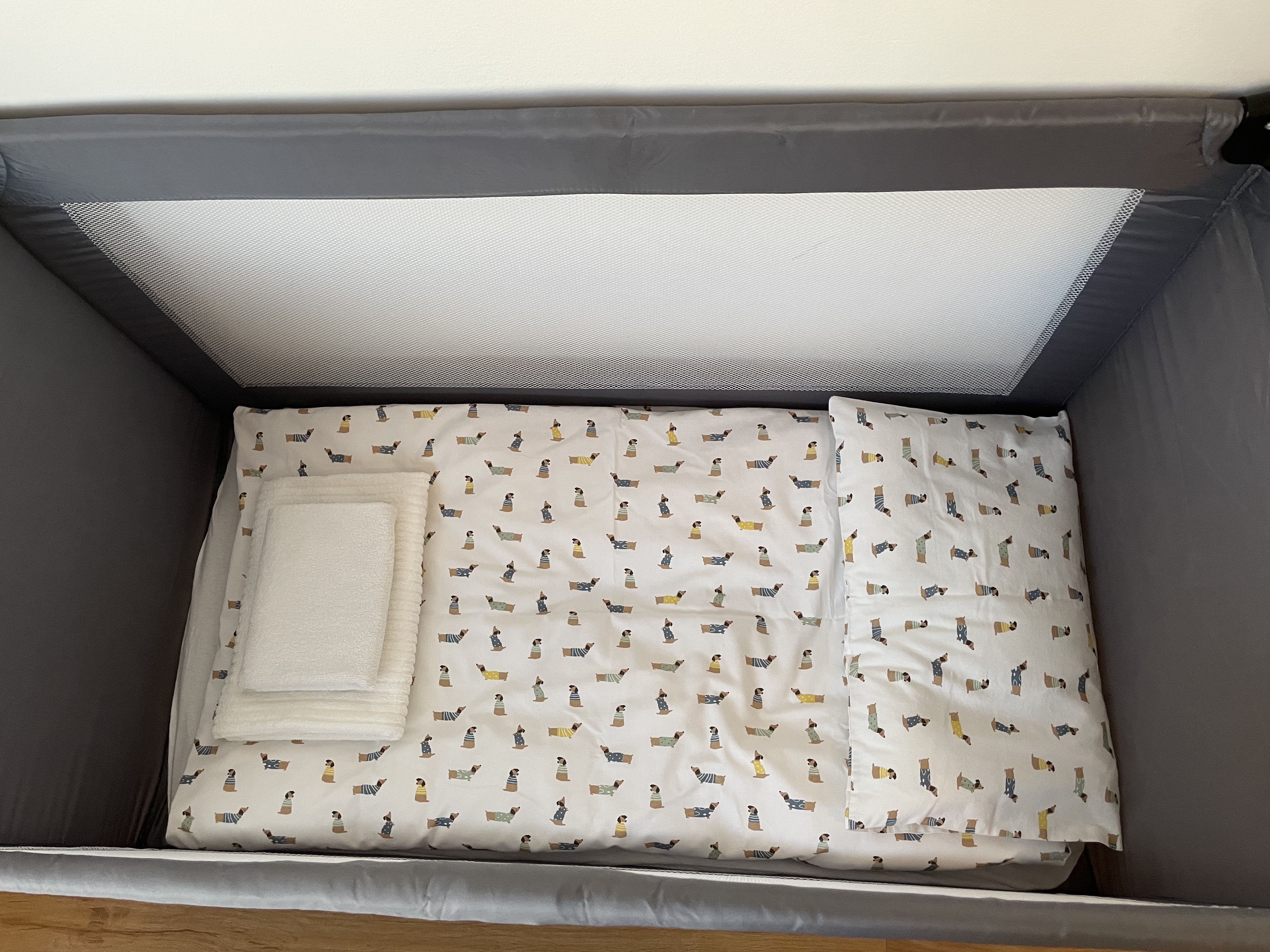 그런데 아기침대가 우리가 흔히 아는 그런 높이의 아기침대가 아닌, 플레이야드로 아기침대가 있어서 도저히 아기를 그곳에 재울 수는 없었다. 땅과 거의 붙어있는 데다가 너무 출렁거려서 아기가 절대로 잠이 들 수 없을 것 같았다.