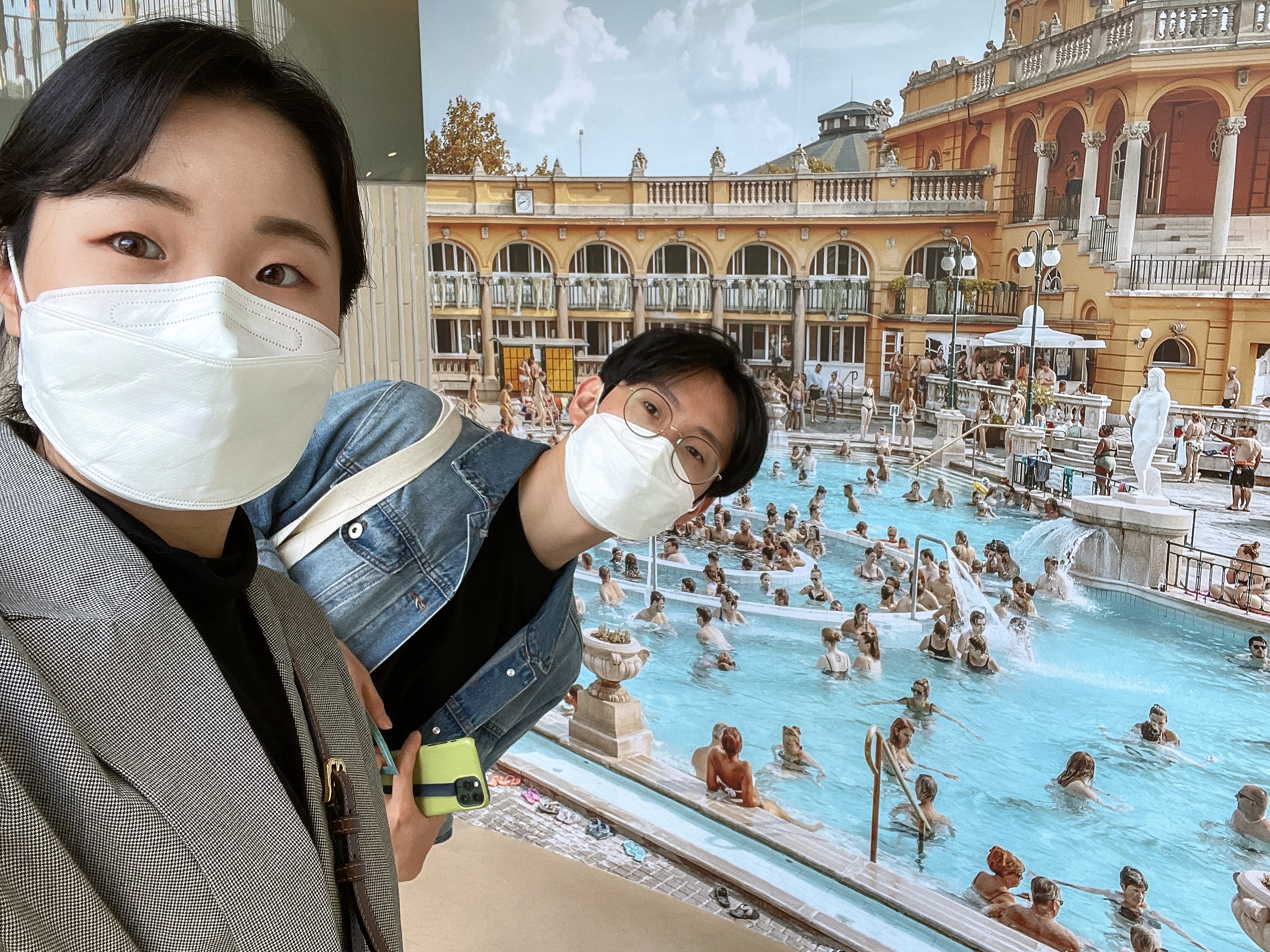 나중에 여행 끝나고 집에 와서 사진을 보다 보니 우리가 예전에 요시고 사진전에서 봤던 게 바로 이 세체니 온천이었던 것이다. 그때 색감도 너무 이쁘고 뭔가 패턴화 하고 싶다는 생각이 들어서 이 앞에서 사진도 엄청 많이 찍었었는데... 전혀 1도 기억하지 못했다. 정말 아쉽다. 실물로 볼 수 있는 절호의 기회였는데 말이다.