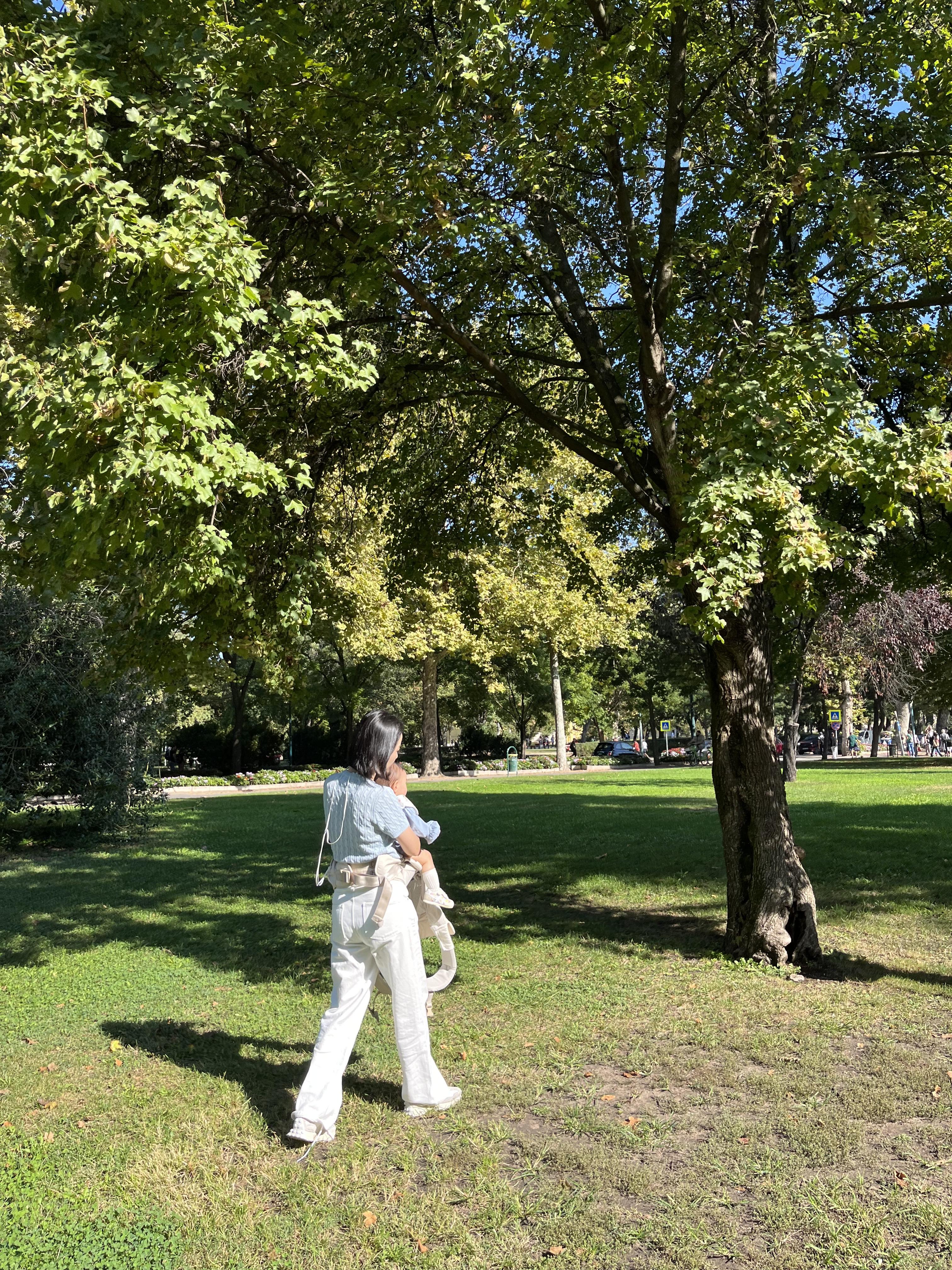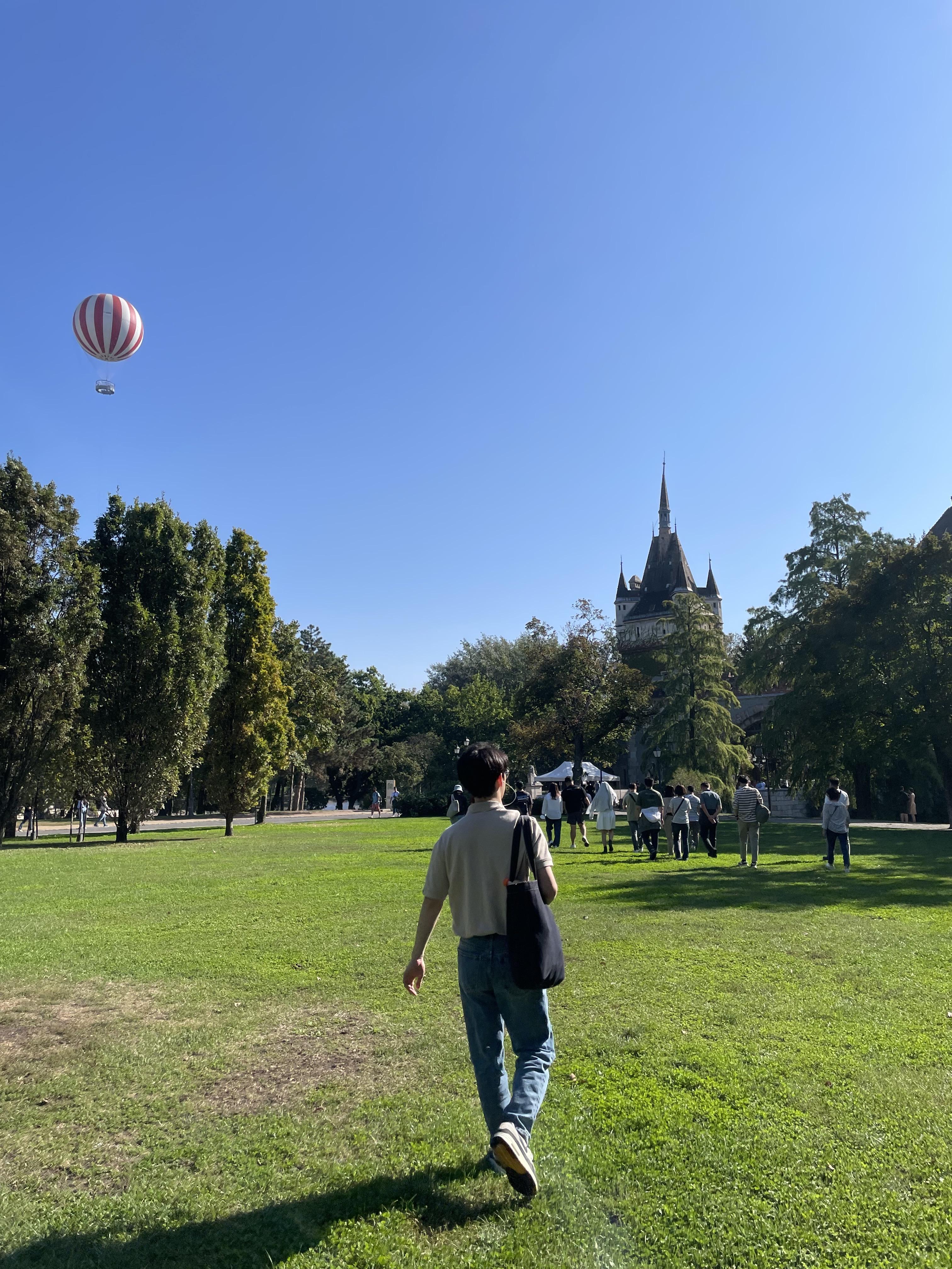 더 집중해서 듣고 싶었으나 아기가 시작부터 나에게 안기려고 앙탈을 부리는 바람에 앞의 역사는 정신없이 휭 지나가버렸다. 그래도 걸어가는 동안의 뷰가 너무 평온해서 기분이 저절로 좋아졌다. 시민공원의 맑은 하늘 가운데로 열기구가 떠있었는데, 전망대라고 한다. 가이드는 다른 곳에서도 전망을 볼 수 있는 곳이 많으니 굳이 여기서 볼 필요는 없다고 제안해 주었다.