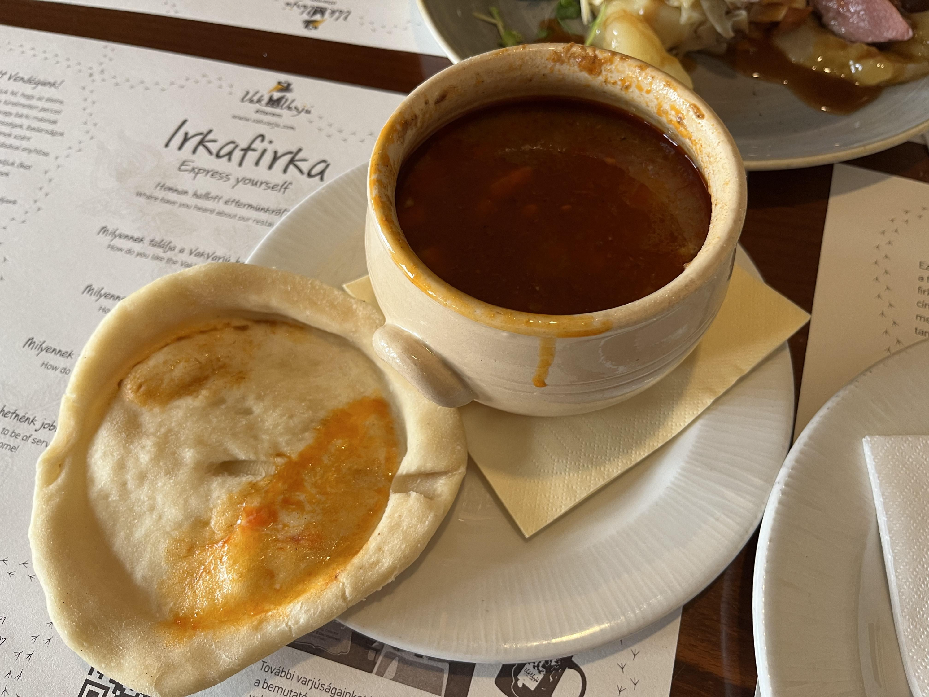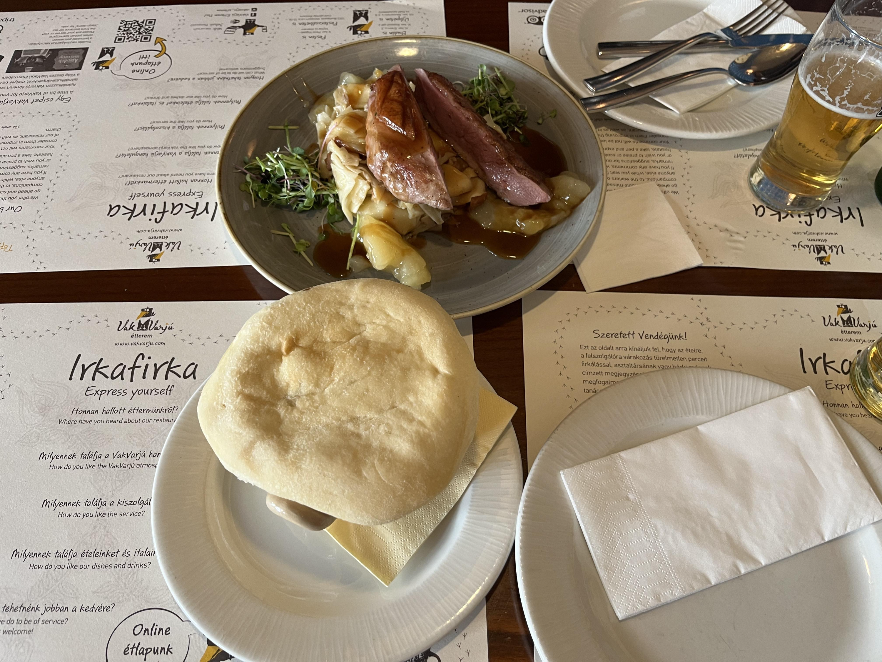 분위기도 깨끗하고 아기와 놀 수 있는 공간도 있으니 정말 좋았다. 나는 오기 전부터 헝가리 대표 메뉴인 굴라쉬를 먹어보고 싶어서 굴라쉬와 맥주를 빠르게 시켜놓고 아기 기저귀를 갈러간 사이 남편이 고기 메뉴를 추가해서 시켰다.