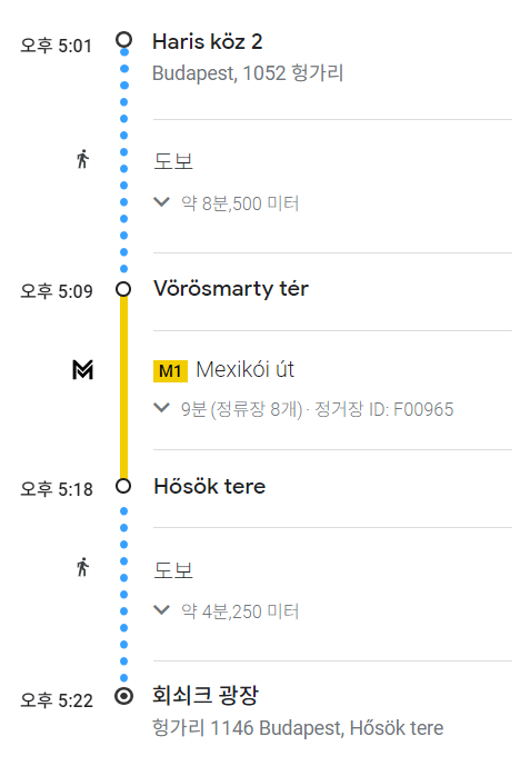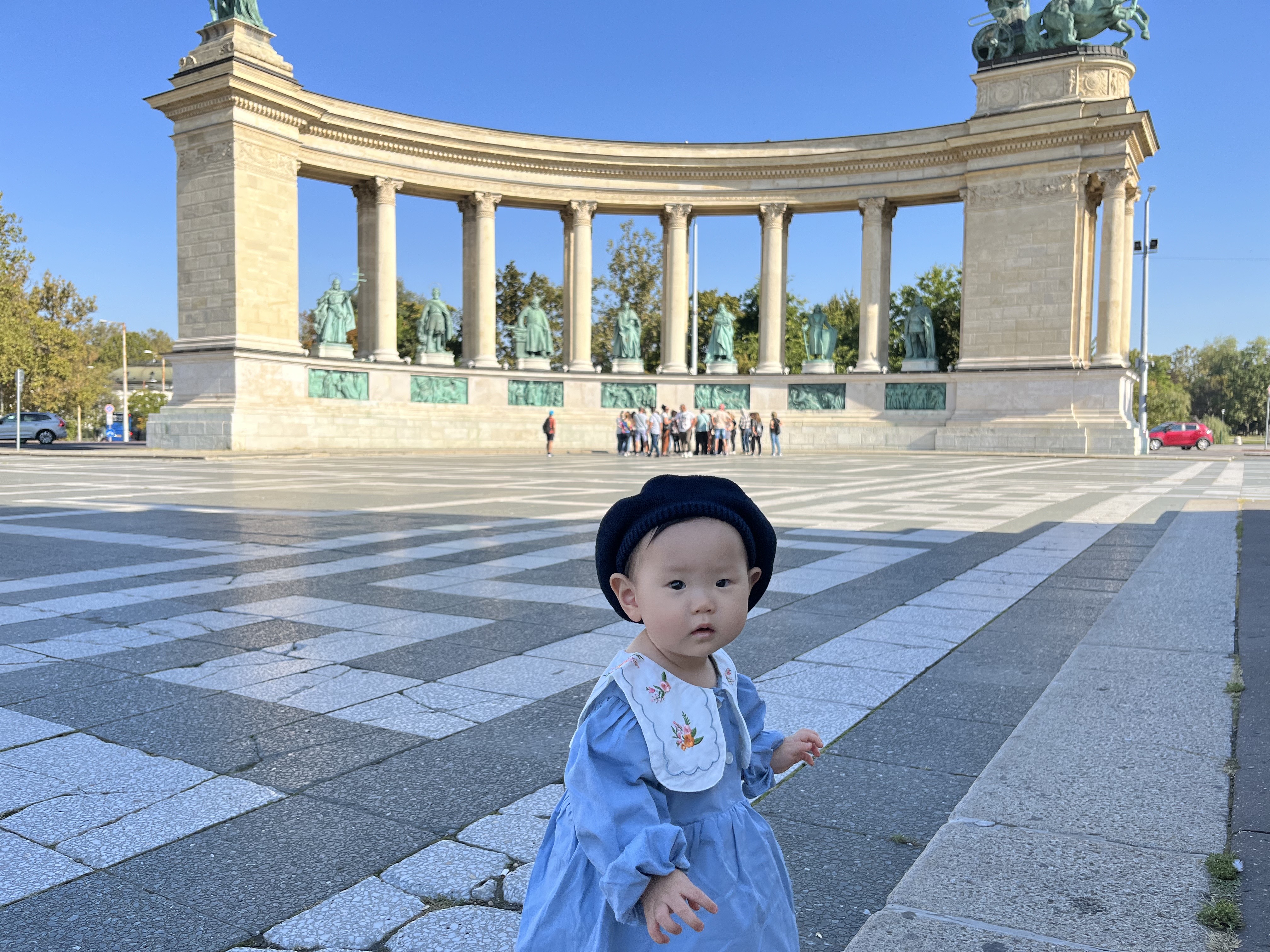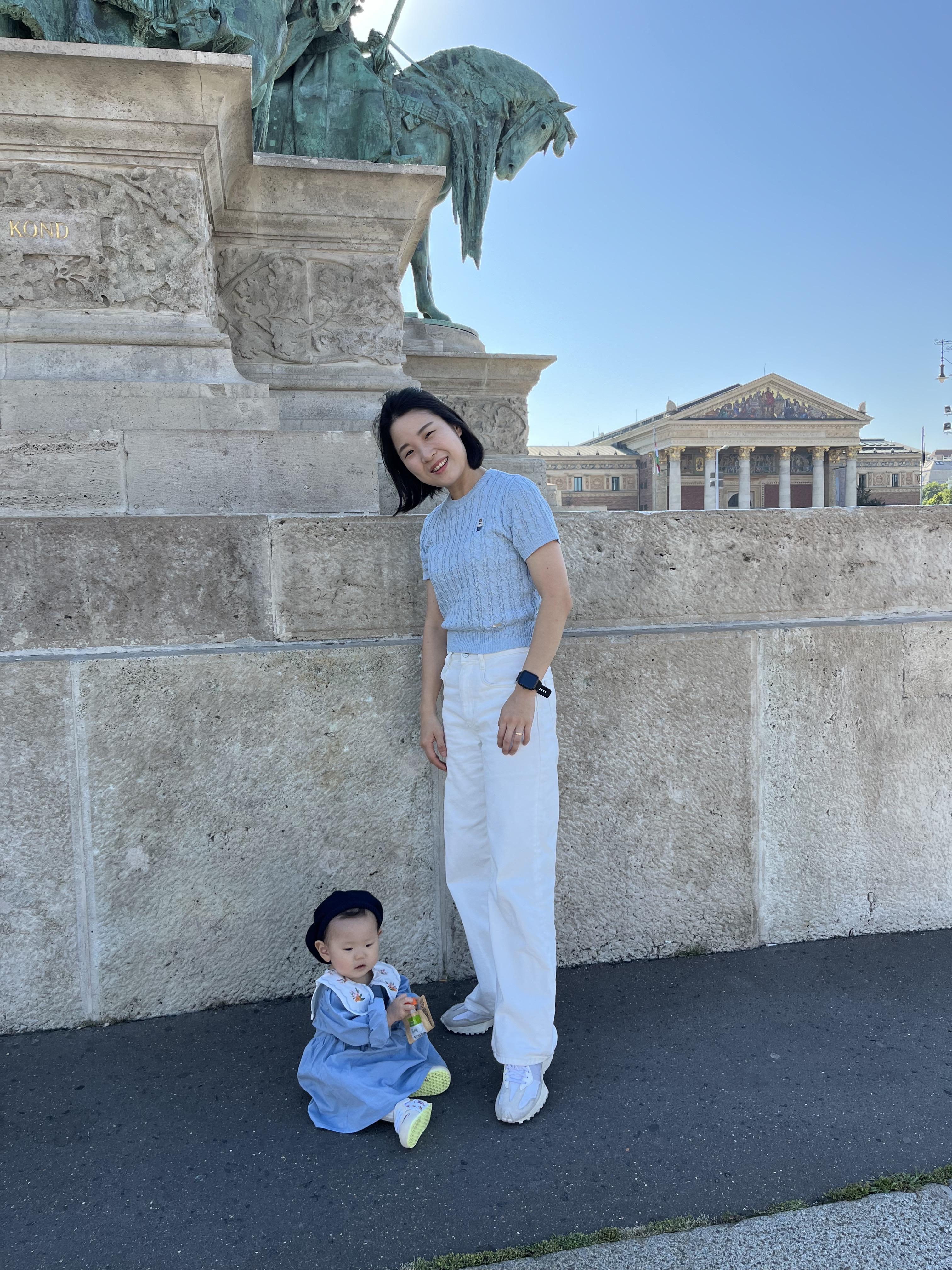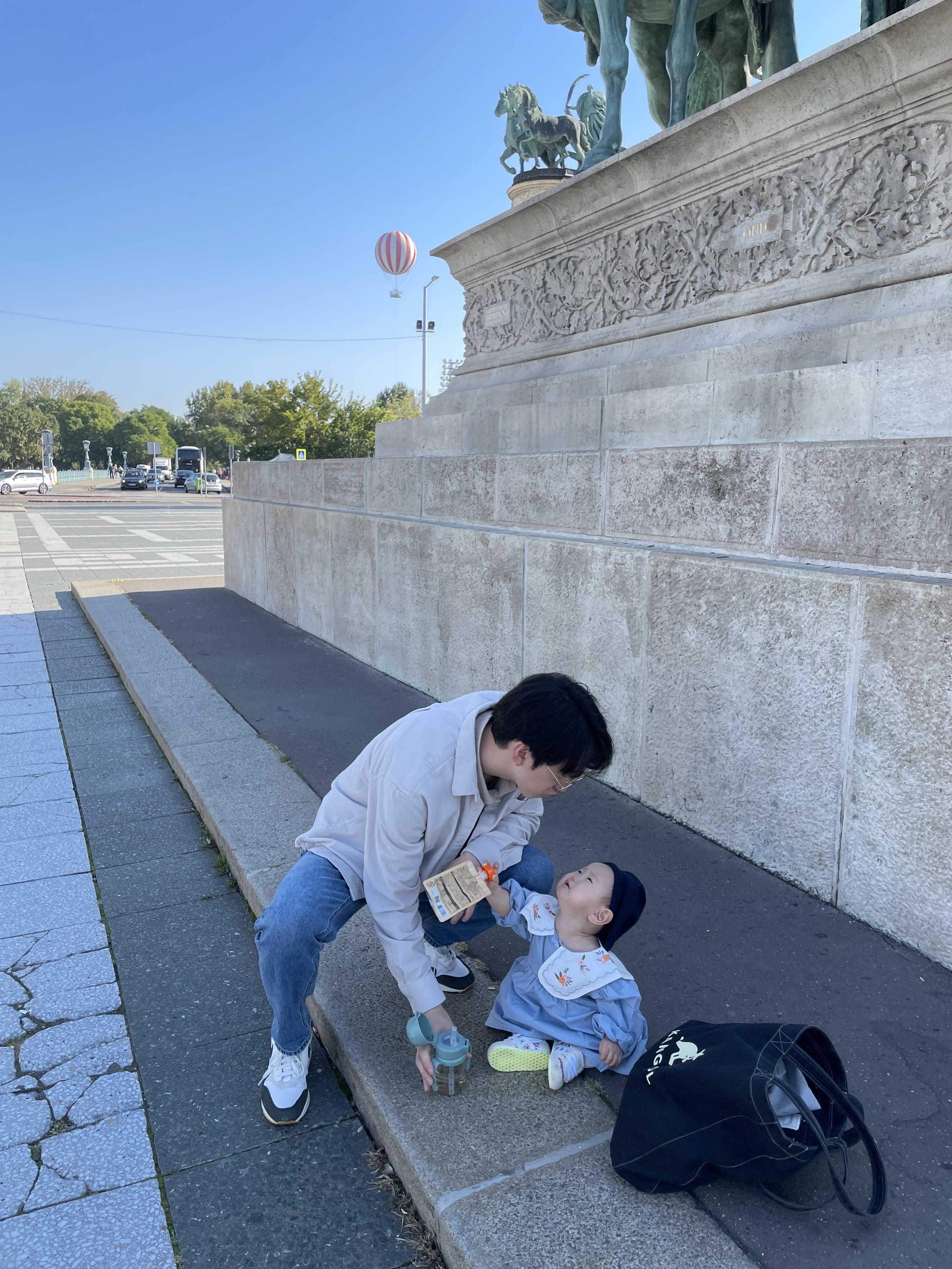 우리 숙소에서 지하철로 9 정거장 떨어진 영웅광장 (회쇠크광장)에 내렸다. 너무 일찍부터 나선 나머지 거의 30분 전에 도착을 했다. 그래서 아기간식을 먹이고 사진 찍으며 사람들을 기다렸다.
