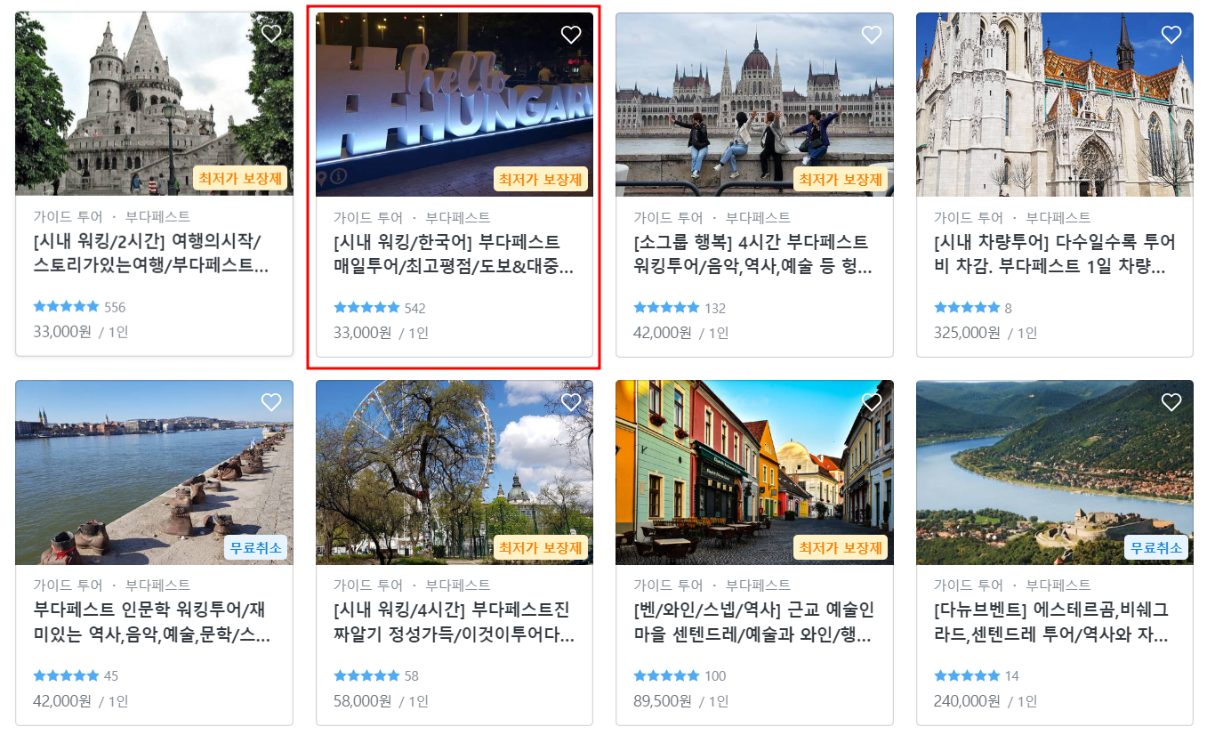 그래서 결정된 우리의 투어는 바로 아래에 빨간 박스 친 상품!