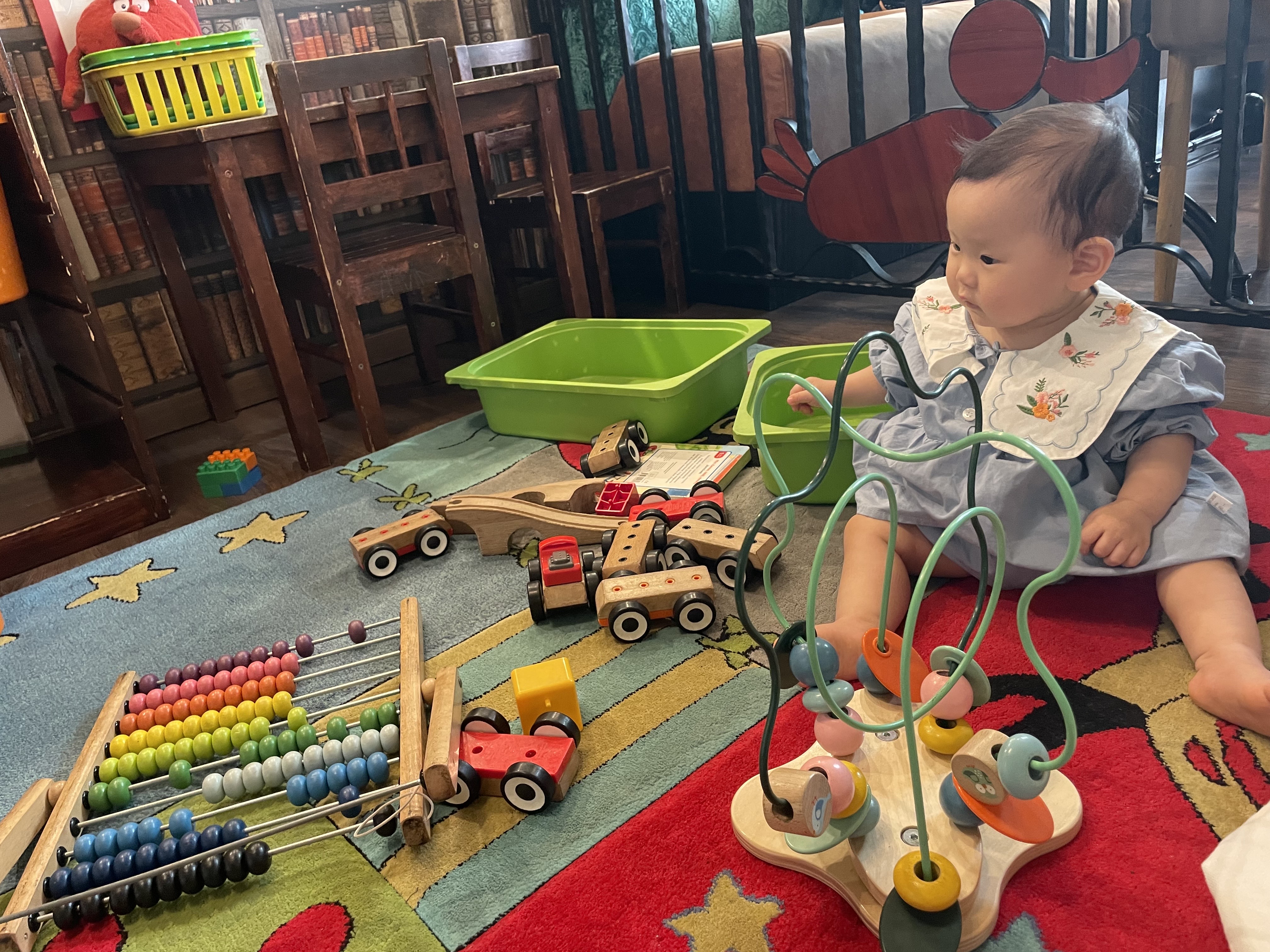 오전 내내 엄마에게 매달려 지루하게 다녔을 아기를 위해 놀이공간에서 같이 놀았다. 음식 기다리는 시간 + 먹는 시간까지 장시간 아기가 얌전히 있어주지 않기 때문에 이런 아기 놀이 공간이 있는 게 정말 좋다.