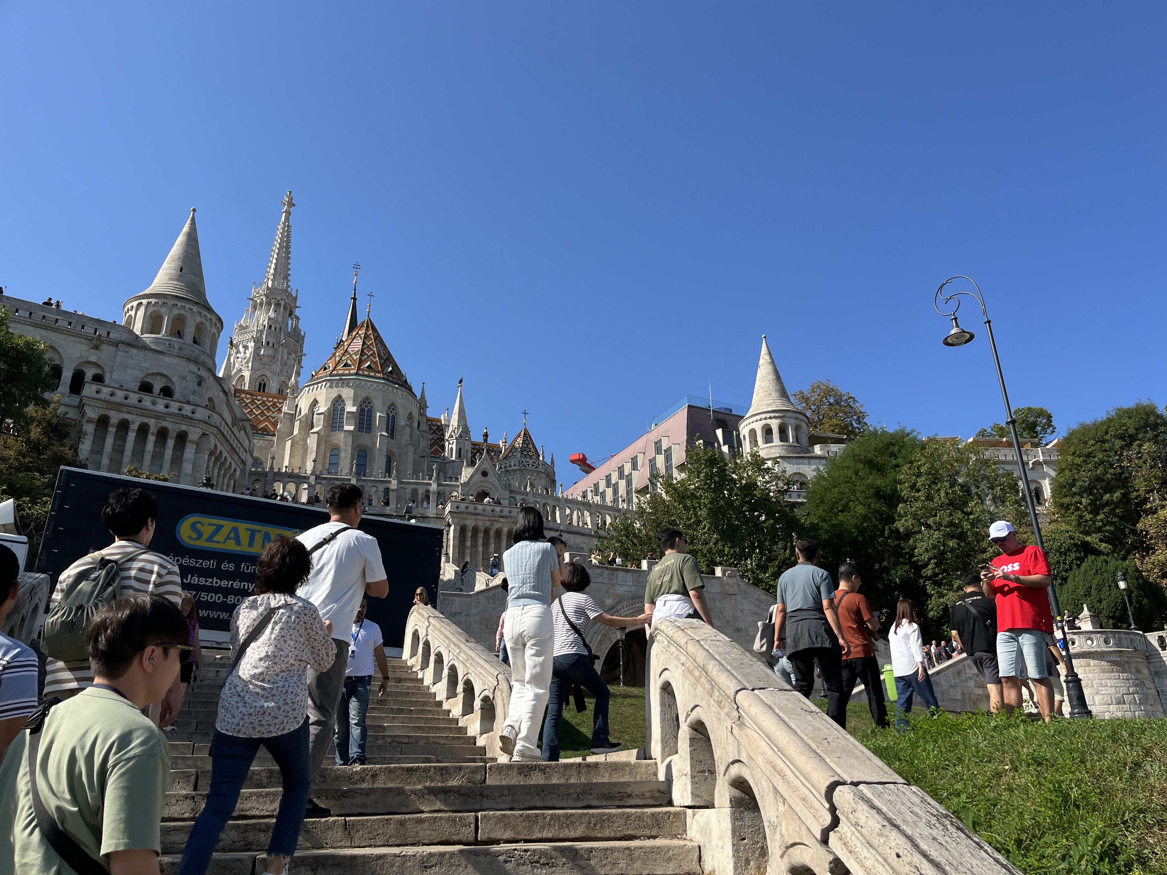 실제로 어부들이 만들어 두었다는 뾰족뾰족 원뿔지붕의 요새와 지붕이 햇빛을 받으면 에메랄드 빛을 낸다는 마차시 성당에서 간단하게 설명을 들었다. 여기서부터는 아가가 졸리고 배고파지니 계속 나에게만 붙어 있으려 해서 나의 체력이 한계를 다해갔다.